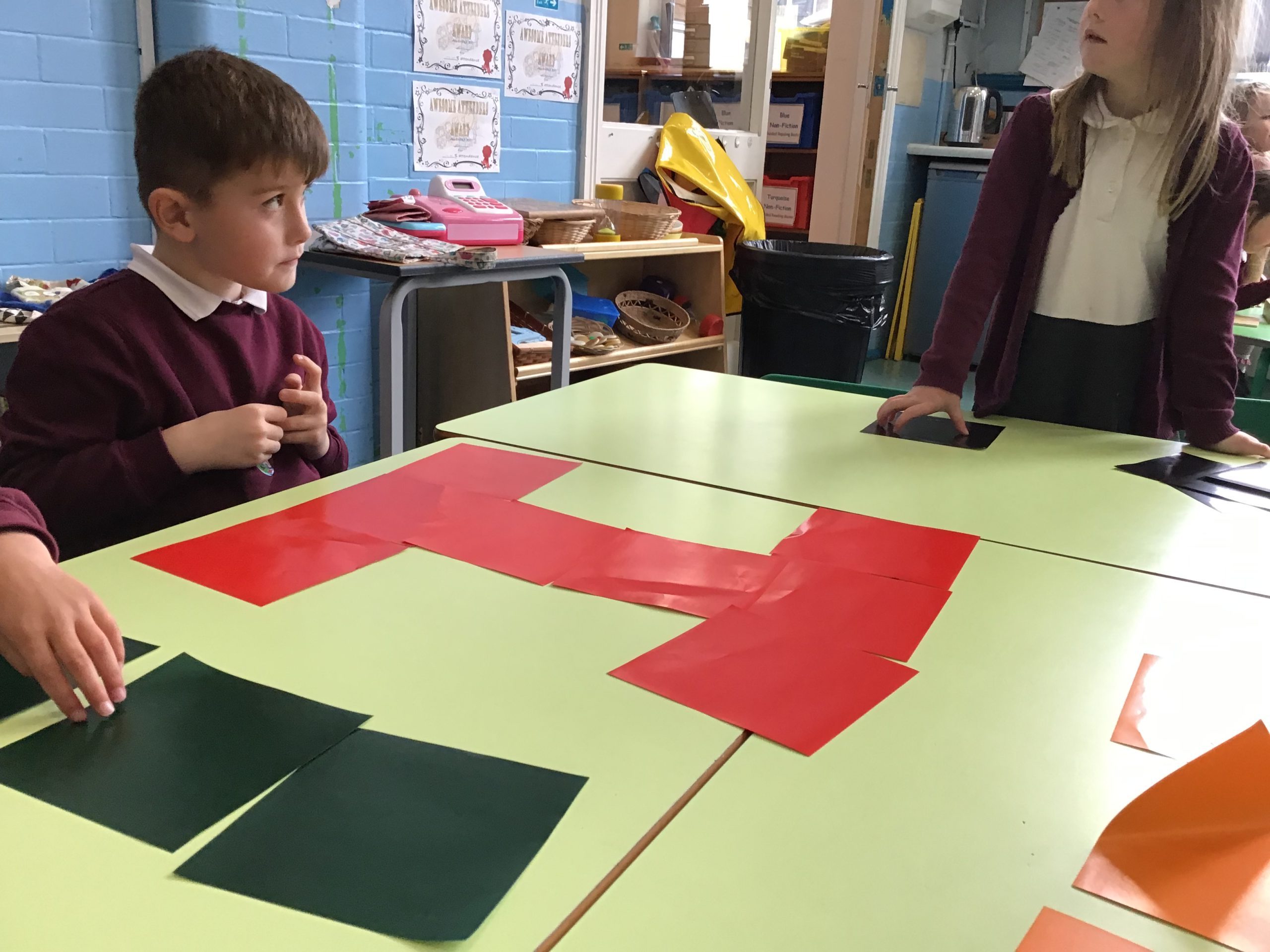 They also did a shape investigation, exploring what shapes they could make with 6 or 8 squares.