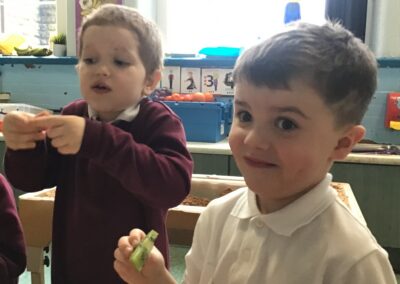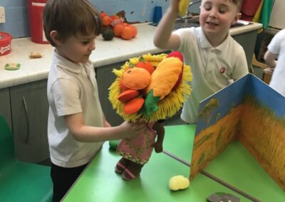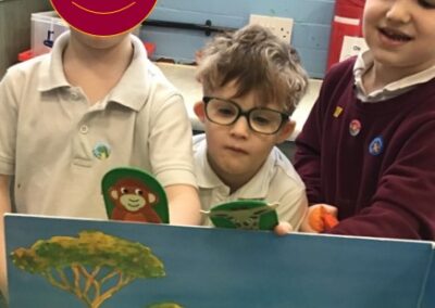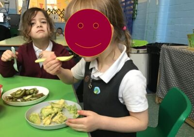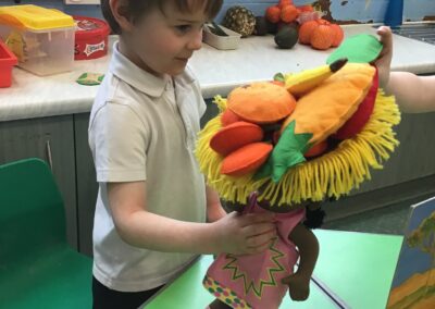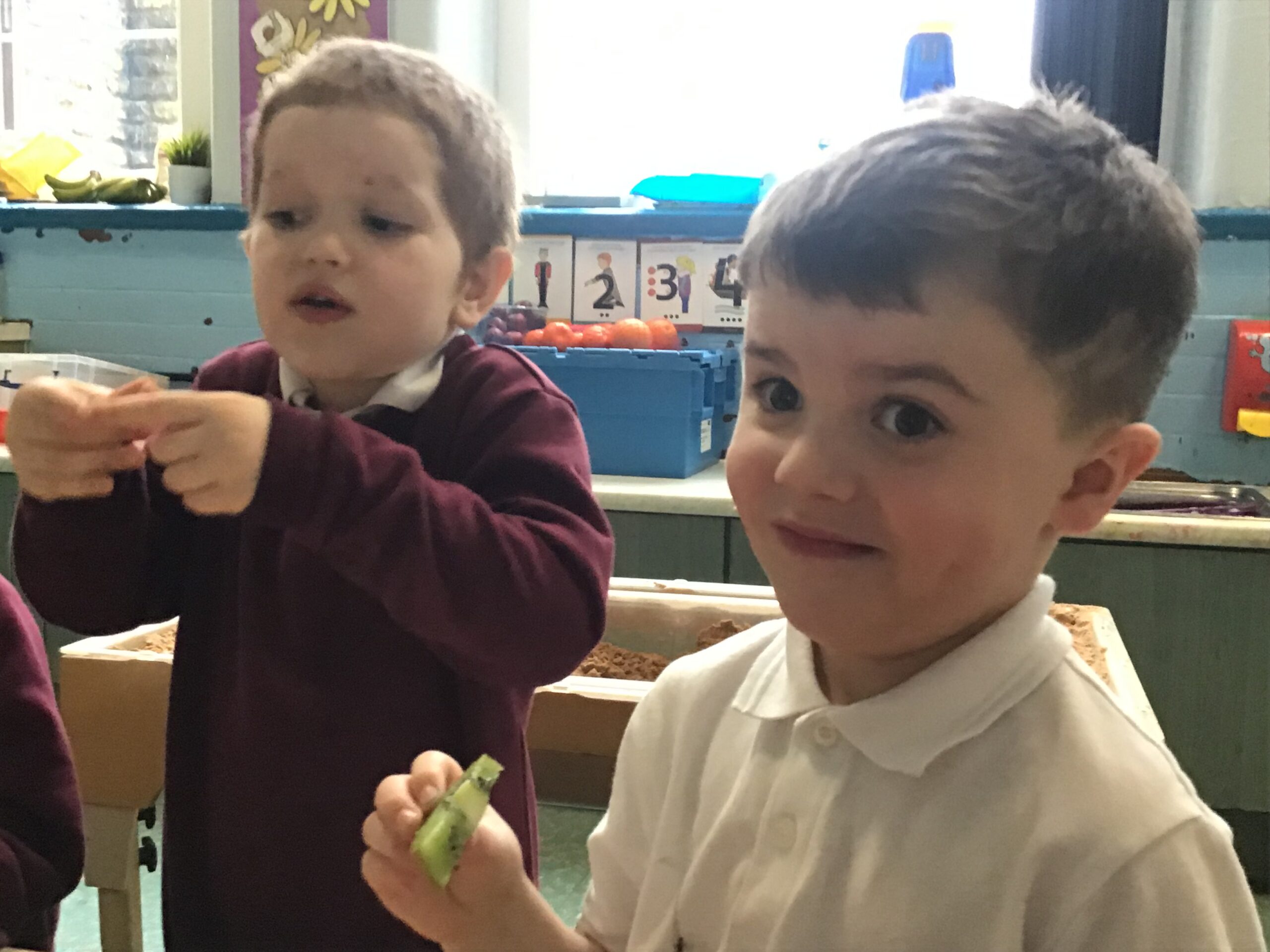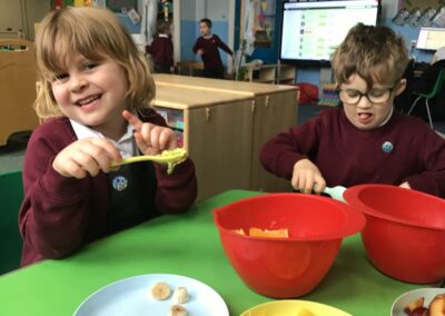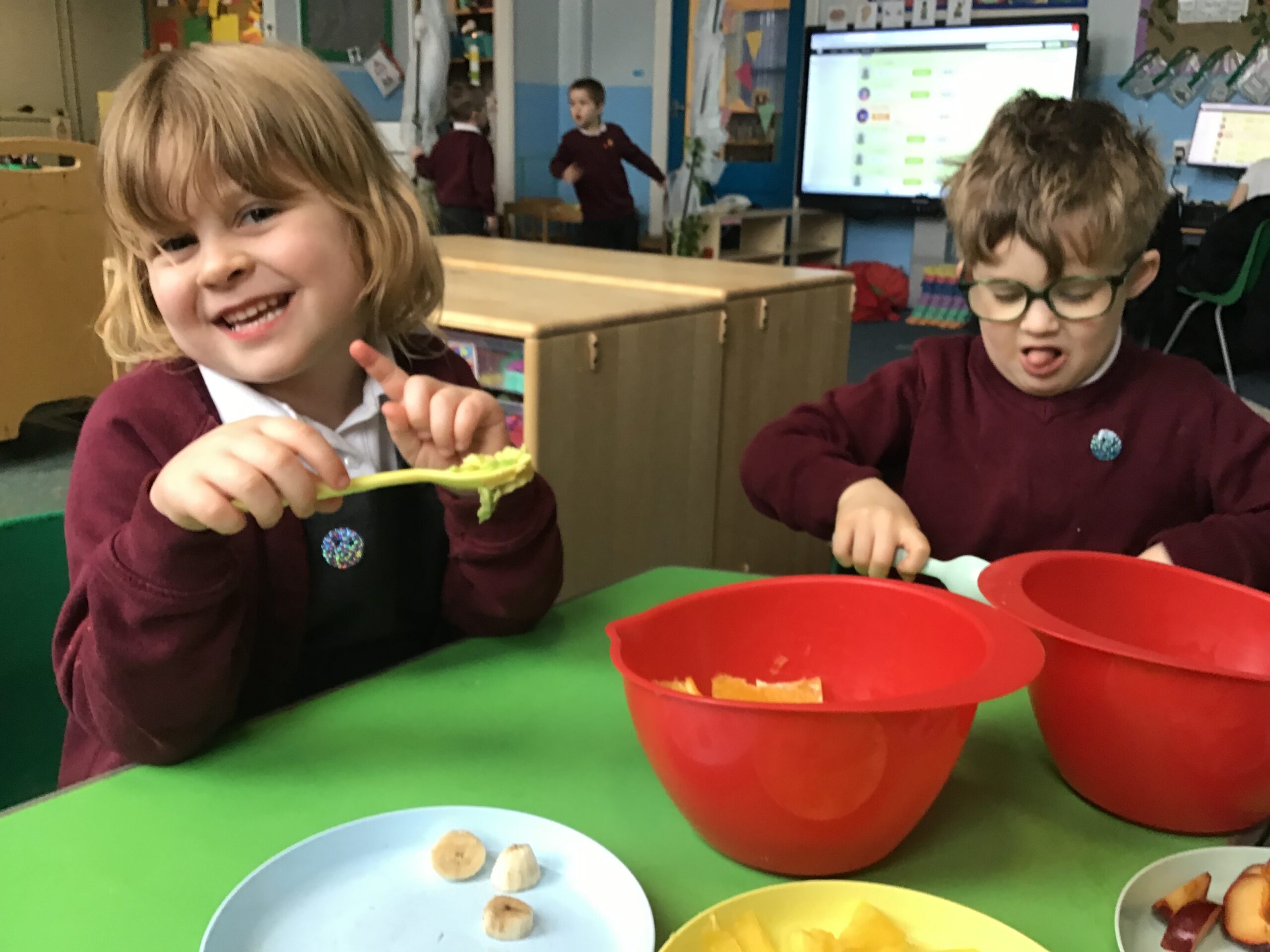 Reception children loved reading ‘Handa’s Surprise’ as they thought it was funny when the animals stole the fruits from Handa’s basket. They enjoyed retelling the story with their friends using puppets and props. They practised their cutting skills and made fruit baskets. We also did some fruit tasting, trying some of the tropical fruits from the story. Lots of children liked the pineapple and oranges; the avocado was not a popular choice!
