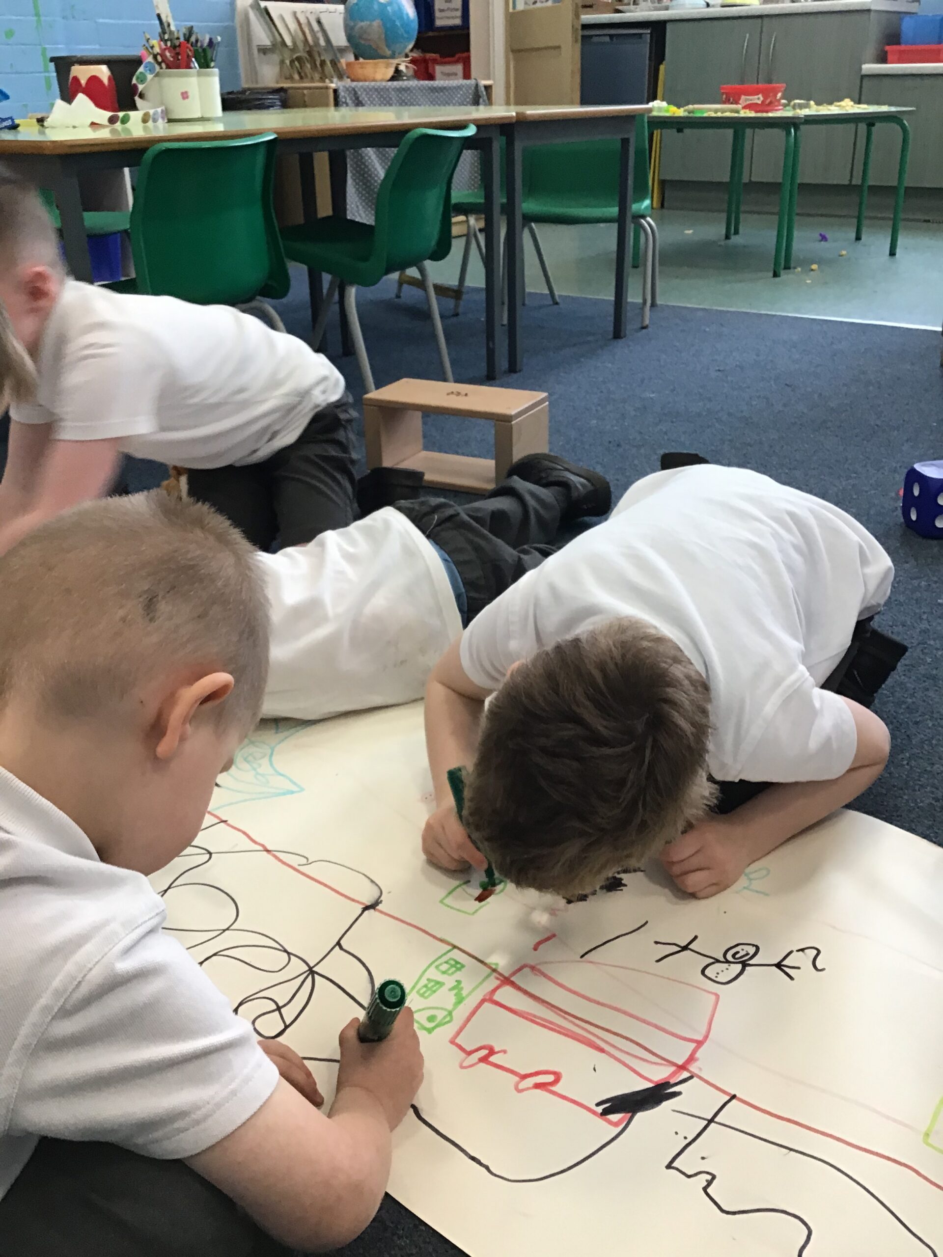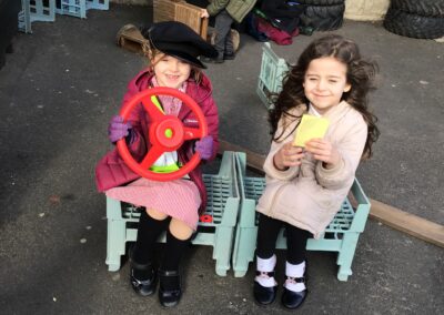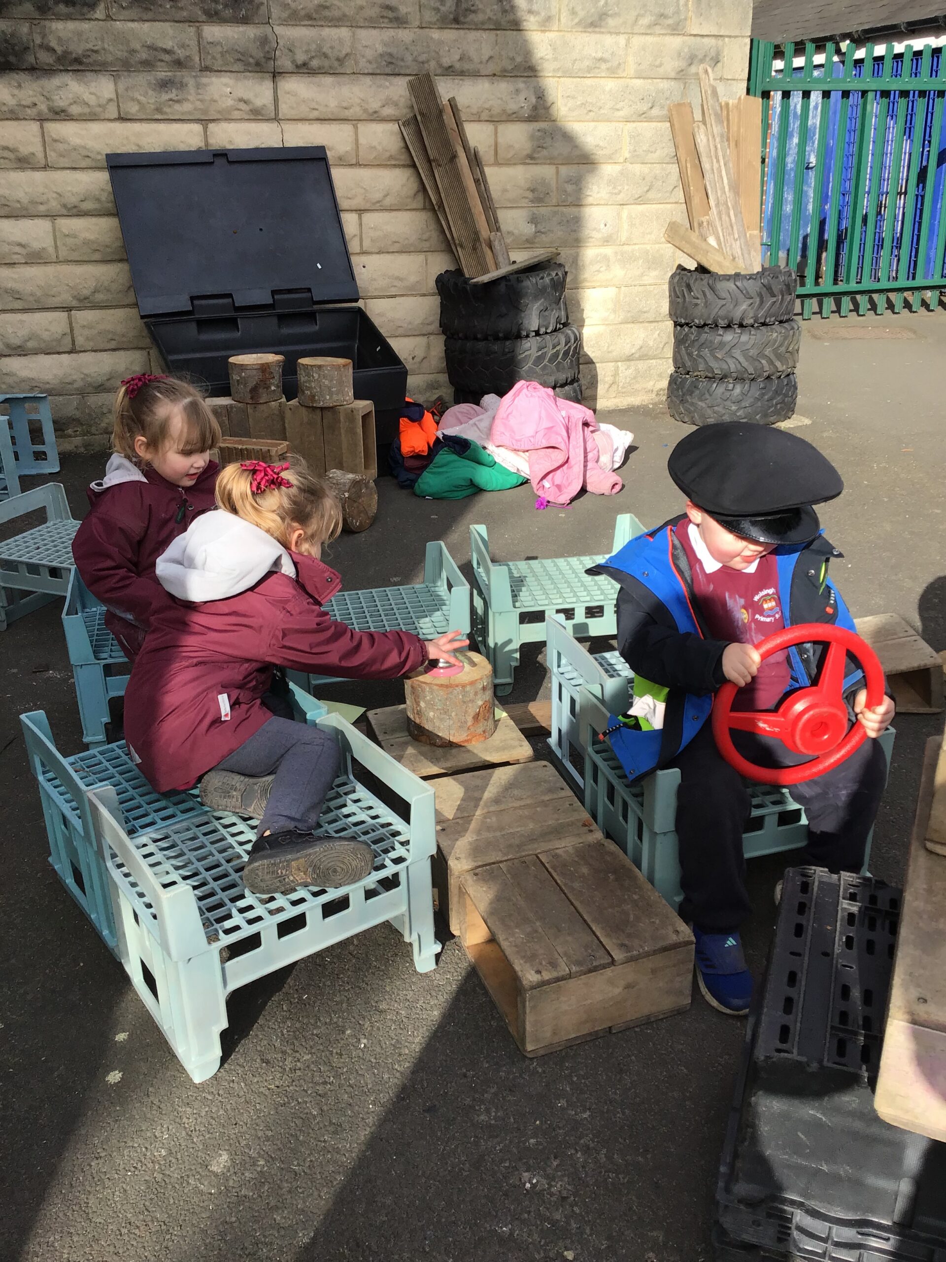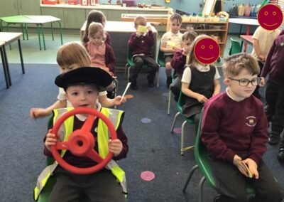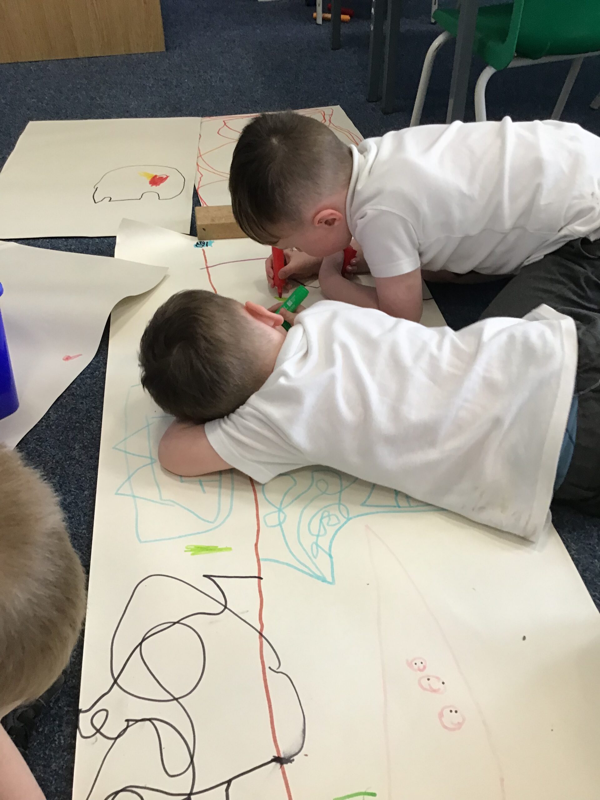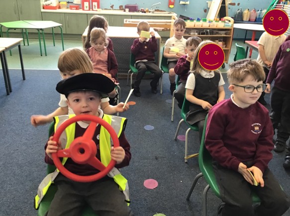 We read the story ‘The Hundred Decker Bus’ and then had a fun-filled week learning all about buses. We drew new decks on a bus, showing good imagination and drawing skills. The children enjoyed lots of imaginative role play pretending they were on a bus, both indoors and outdoors. They took turns being the bus driver and passengers. They put their hands out to stop the bus to get on it, then rang the bell to get the bus to stop. They ended the week using junk modelling materials to make their own buses.