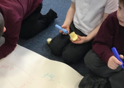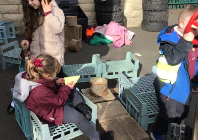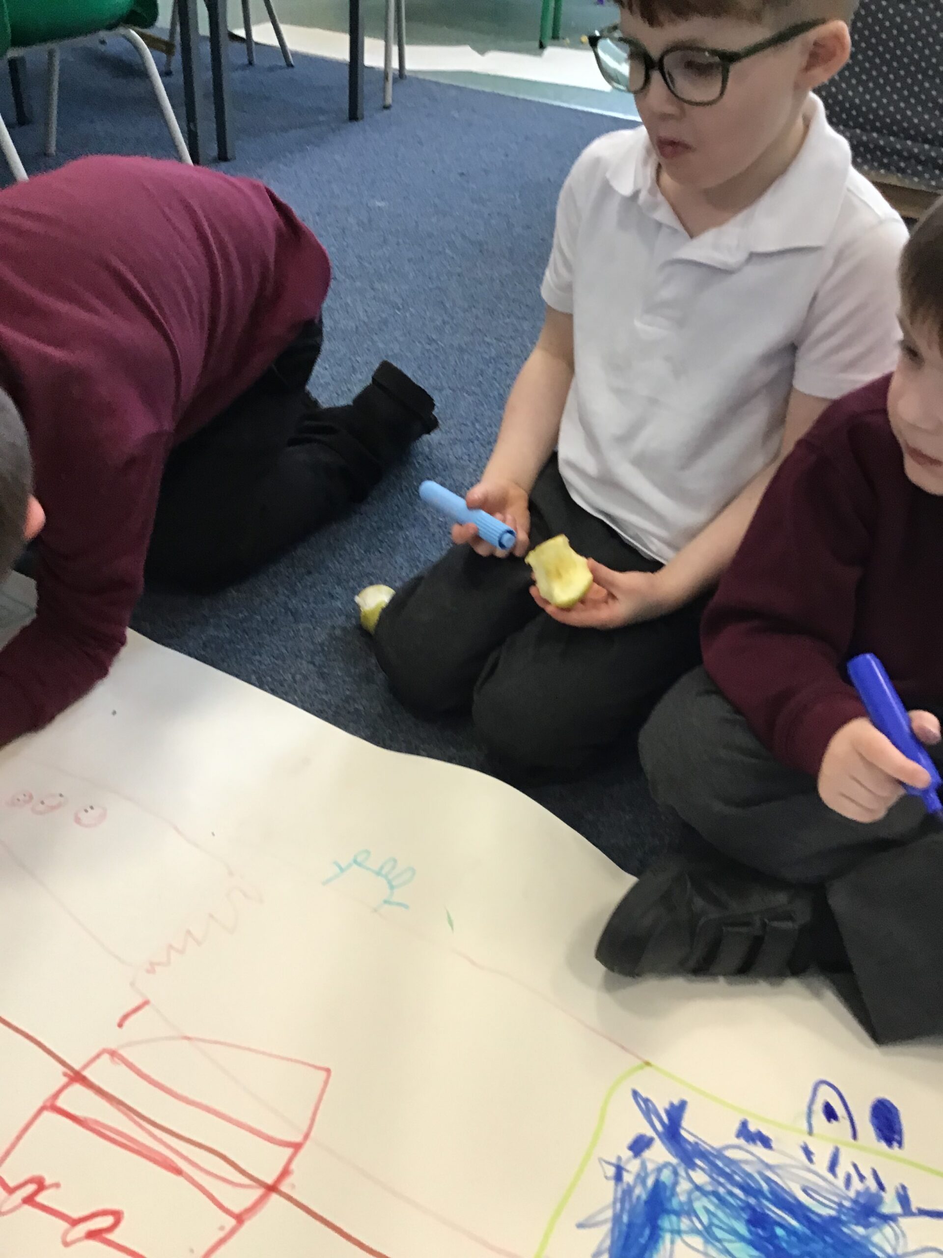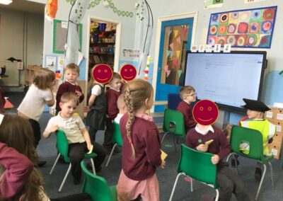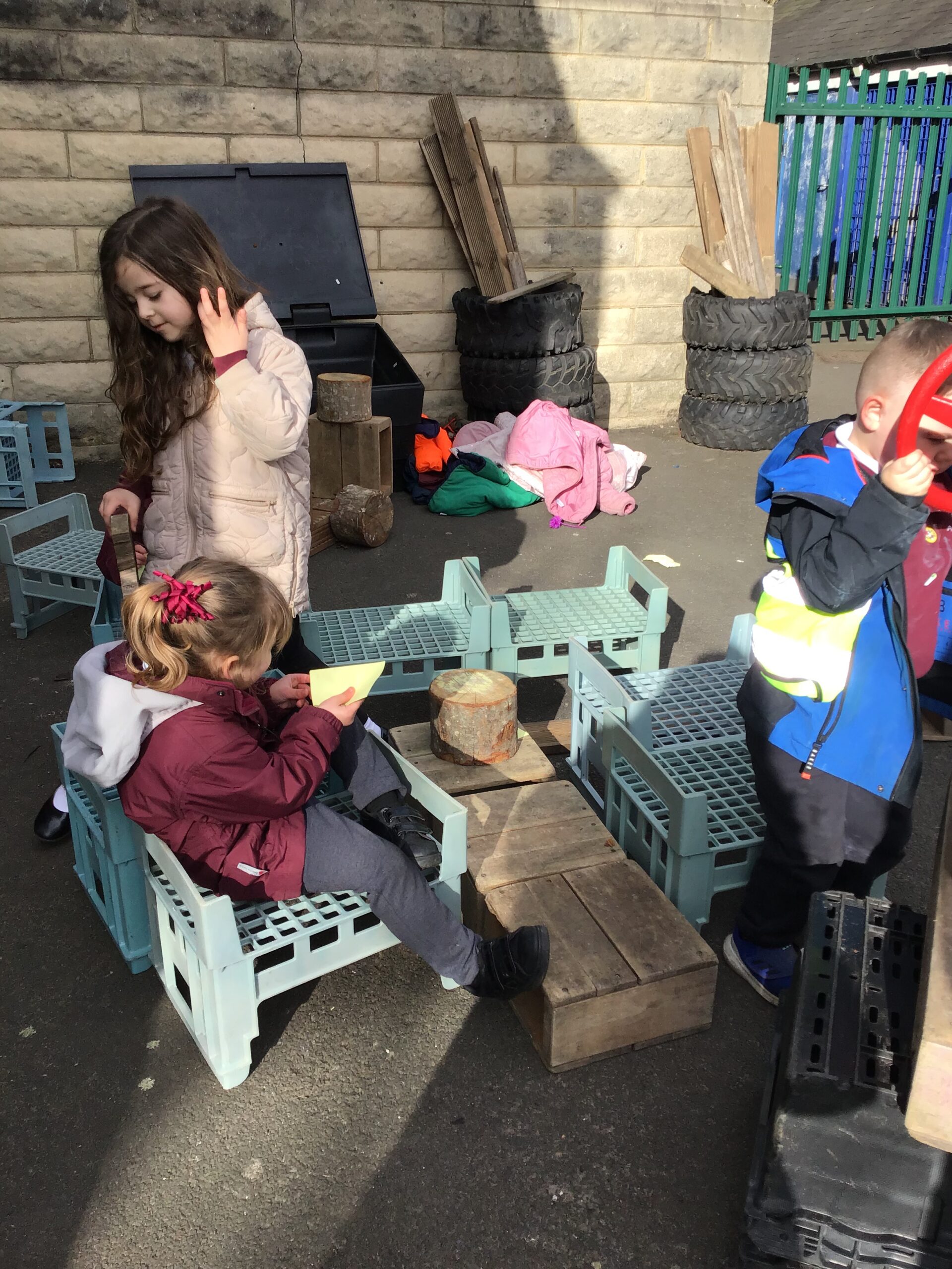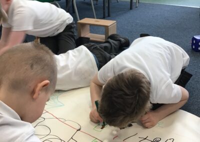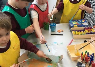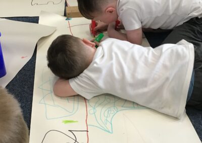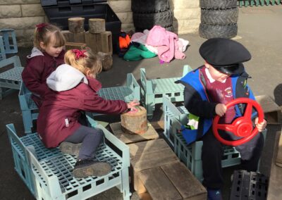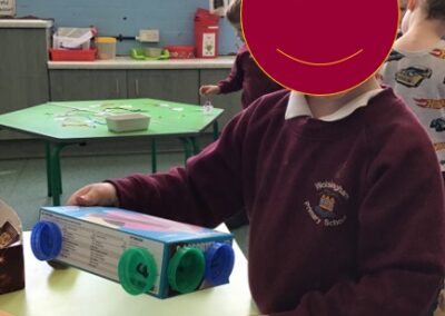 We read the story ‘The Hundred Decker Bus’ and then had a fun-filled week learning all about buses. We drew new decks on a bus, showing good imagination and drawing skills. The children enjoyed lots of imaginative role play pretending they were on a bus, both indoors and outdoors. They took turns being the bus driver and passengers. They put their hands out to stop the bus to get on it, then rang the bell to get the bus to stop. They ended the week using junk modelling materials to make their own buses.