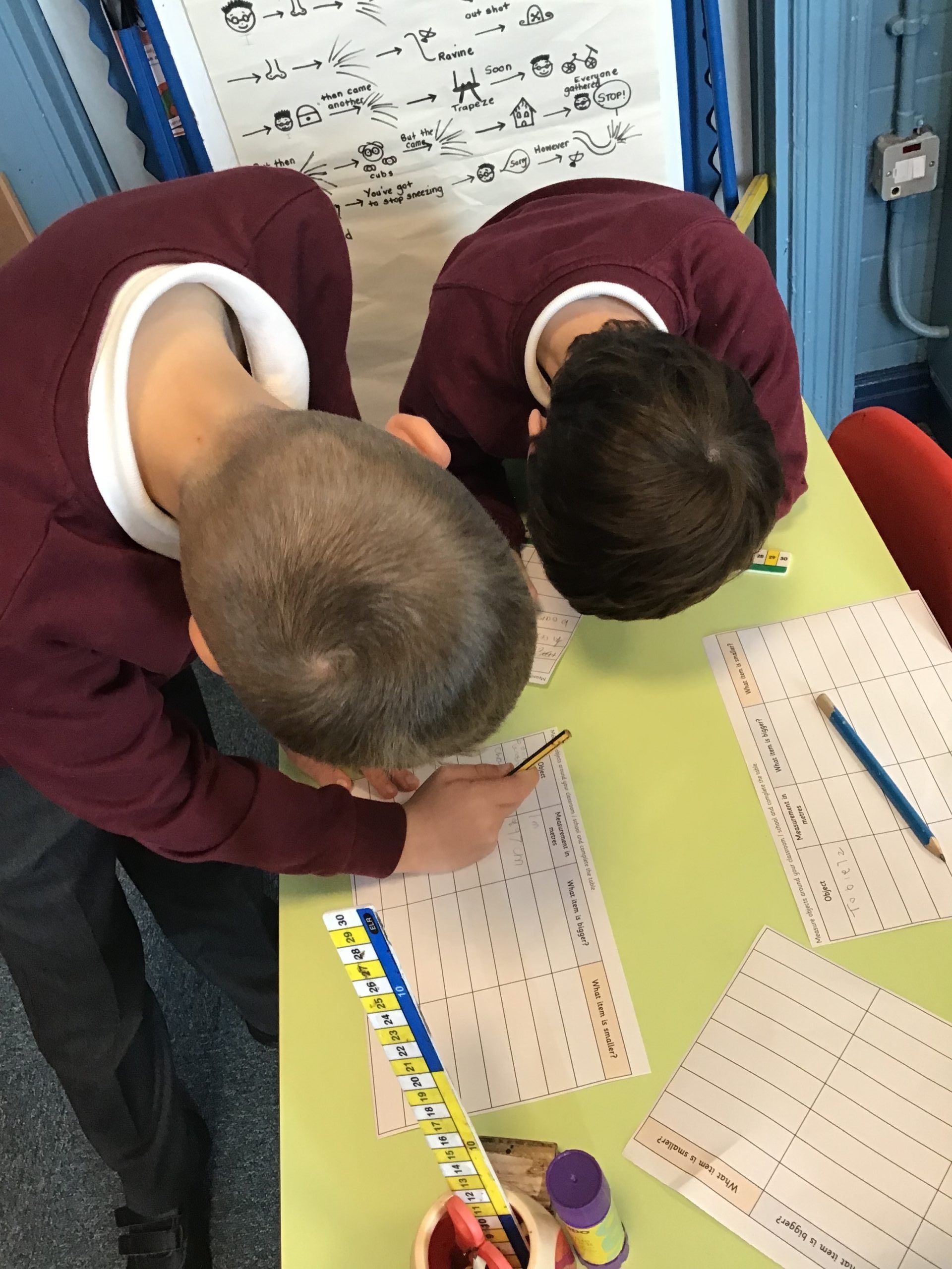 We then regrouped and compared the size of different objects using mathematical terms such as taller, smaller, shorter and wider.