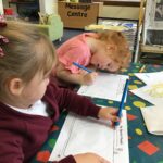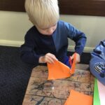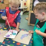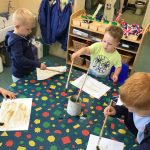 In Nursery the children have started to learn about planet Earth. They have talked about where they have been in the world, sharing pictures from home of their travels. They went for a walk around Wolsingham looking at significant buildings, built towns in the building site and used marbles and marbling ink to create planet earth.