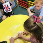 Every week in Nursery we do the ‘Dough Disco’. Children learn different moves to manipulate the dough such as squeezing, rolling, finger diving and making a ball. These fine motor manipulative skills are perfect for finger muscle development and finger discrimination, whilst developing early writing skills.