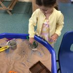 In nursery the children have been learning all about the 5 senses and exploring these. They made listening ears to go on a listening walk around school, guessed what was inside the bag by using their sense of touch, made sensory potions, smelling the herbs, talked about oral hygiene and practiced cleaning the large teeth, tasted some foods wearing a blindfold trying to guess what it was and made marks in the sand.