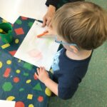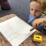 Every week in nursery we get our flipper flappers at the ready, and join in with squiggle while you wiggle, making horizontal lines, vertical lines, circles and much more using our gross motor skills. We then transfer these early mark making skills onto paper developing our fine motor skills.