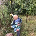 On our listening walk we spotted lots of red and green apples on the trees in the wildlife garden. We carefully picked the apples and took them back to nursery to wash and slice for snack time. Yum, yum!