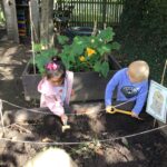 In Nursery we read a story called ‘The Extraordinary Gardener’. We then talked about turning our garden from ordinary to extraordinary by planting flowers and vegetables. We worked as a team to plant potatoes, wildflowers, lettuce, pumpkins, courgettes, strawberries and sunflowers. We can’t wait to watch them all grow!