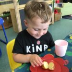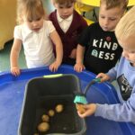 Nursery children planted some potatoes in the Summer term. This week they have been harvesting their potatoes. They dug them up outside, washed them clean and then prepared and enjoyed eating the potatoes at snacktime.