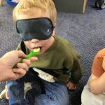 This week in Nursery we have been learning about our senses, specifically our sense of sight and our sense of hearing. We explored how we use our senses through lots of practical activities such as; a listening walk, a blindfolded obstacle course, clapping and listening to syllables in words, making our own musical instruments, making coloured telescopes to change what we see and lots more.