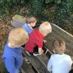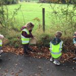 Nursery children went on a conker hunt. They were very lucky and found lots of shiny brown conkers, and green spiky conkers still in their shells. On their walk, they also looked at signs of Autumn, talking about how the trees and weather was changing.