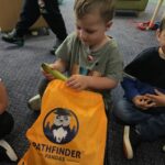 Every Friday morning we visit the library in Wolsingham. On our walk we always find something interesting to watch or discuss e.g. the show rides, builders fixing a roof, blackberries to pick. At the library we enjoy spending time together reading books, before bringing one home to share with our families.