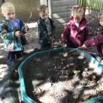 After doing lots of gardening, planting and growing in nursery this week, we went for a walk to visit Mrs Routledge at her allotment. We enjoyed looking in her pond for frogs and newts. We even recognised some of the things she was growing such as potatoes, strawberries and onions. We also got some good tips for looking after our vegetables as they grow!