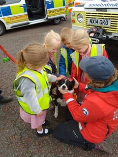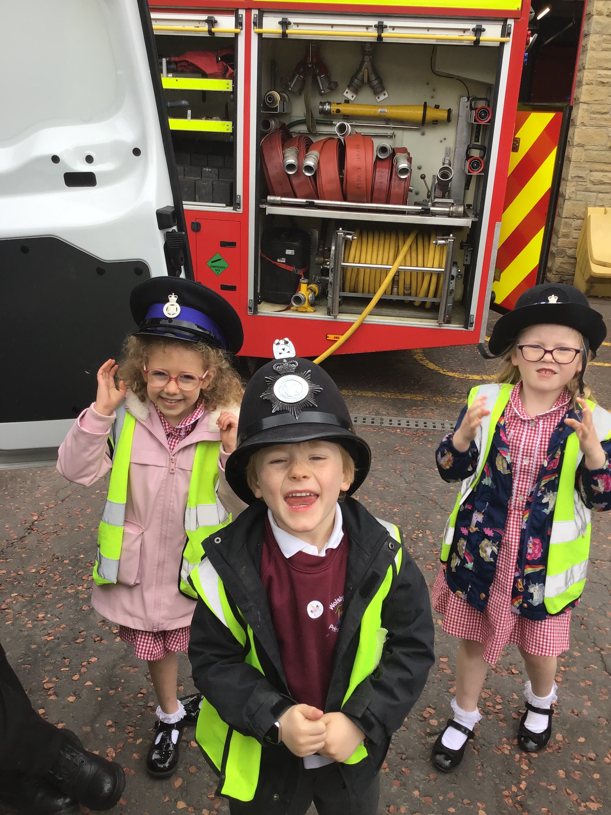 Reception Class thoroughly enjoyed a visit to Stanhope Fire Station. They got the service bus from Wolsingham to Stanhope then had their packed lunches in the park. They had lots of fun playing in the park before heading to the fire station. They got the chance to explore lots of emergency vehicles. There was a fire engine, a police van, a mountain rescue jeep and an ambulance. The children enjoyed sitting in the vehicles, trying on different hats and learning about the work of the different emergency services. They met the mountain rescue dog Blythe and learnt how she helps to rescue people. It was a great day out and a really memorable experience for the children.