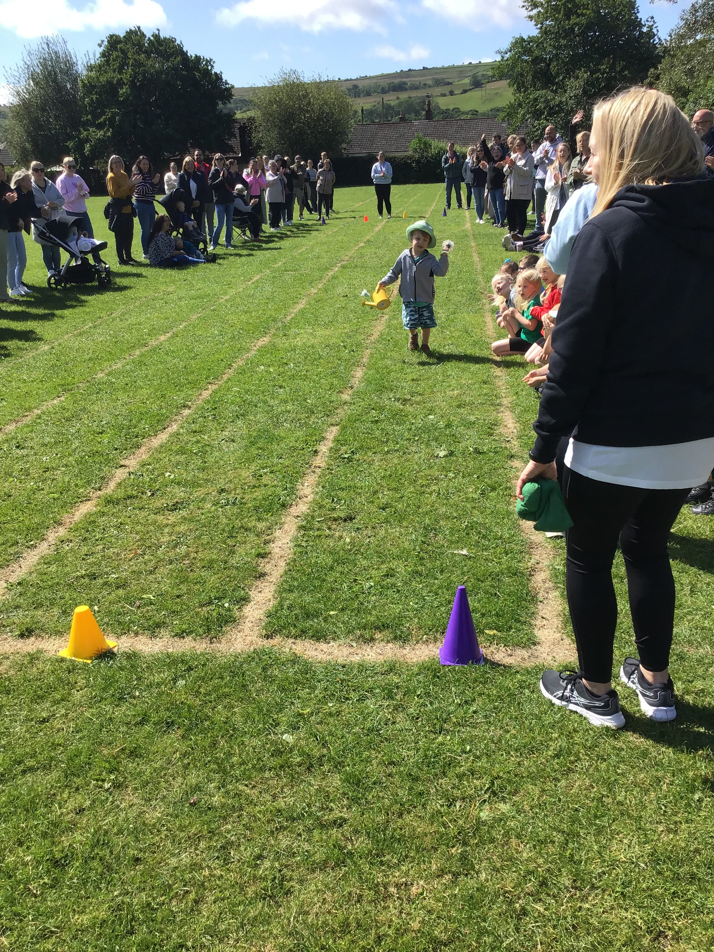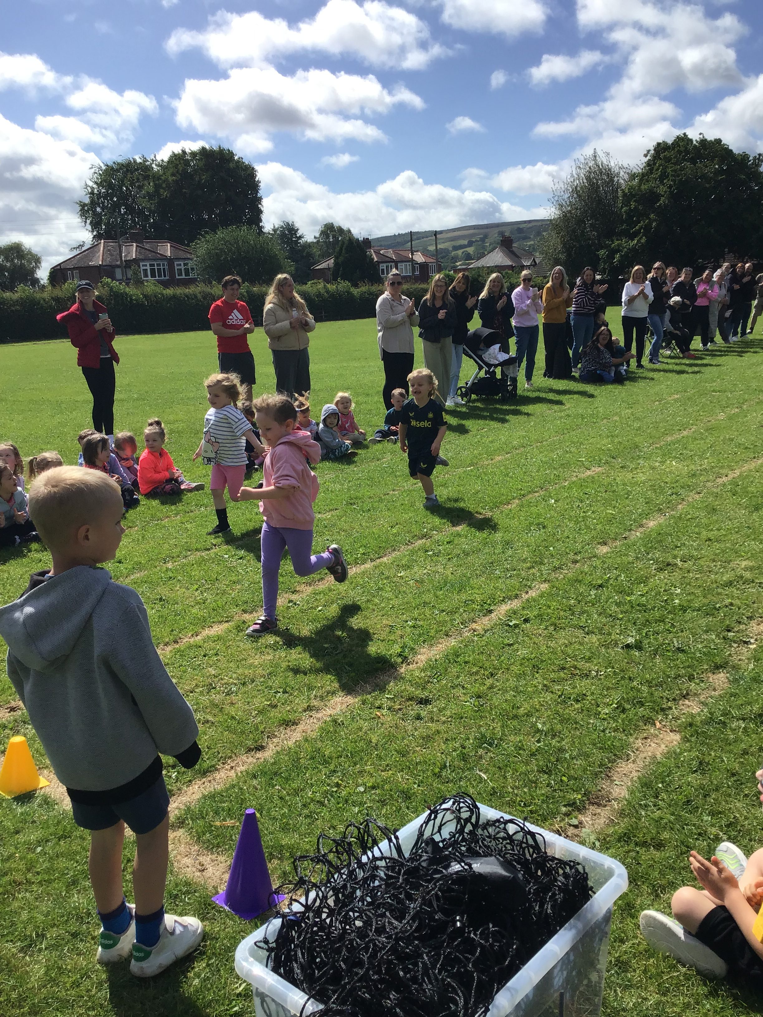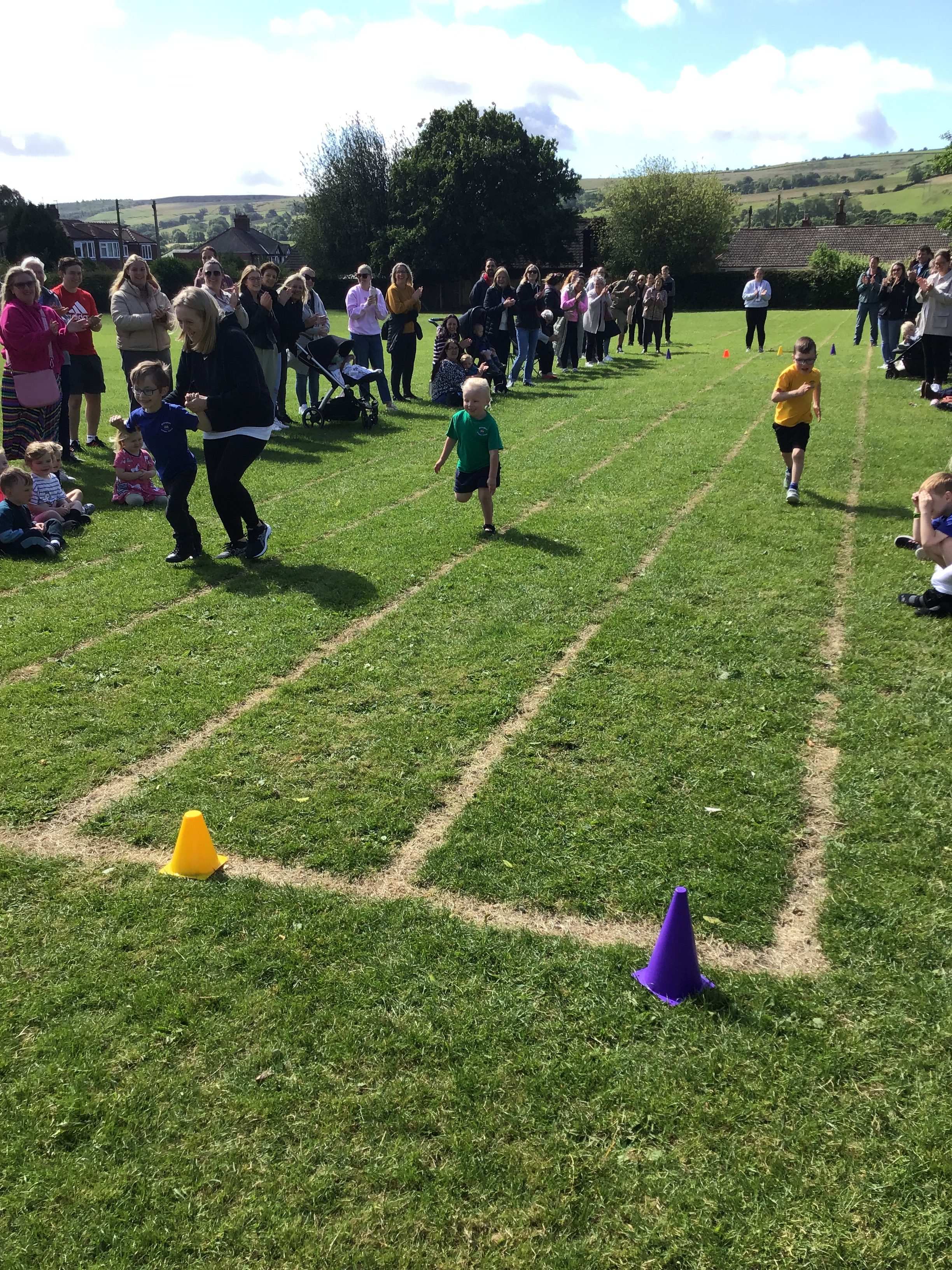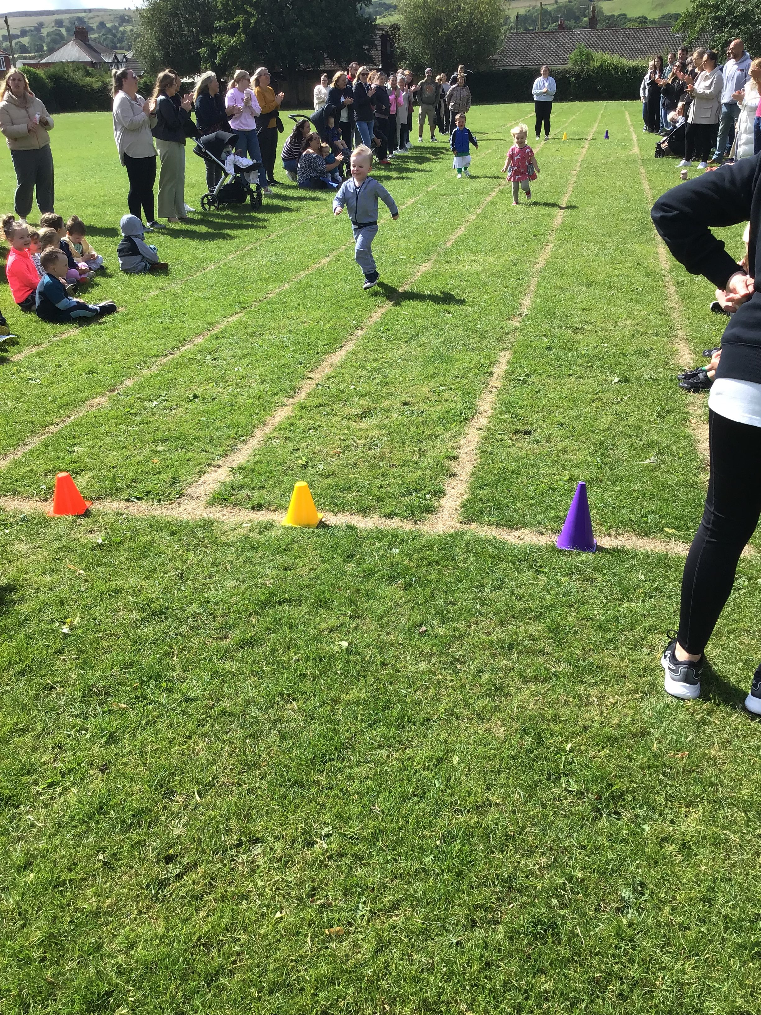 Nursery and Reception children had a wonderful time at EYFS Sports Day. The children were cheered along by parents and grandparents as the completed races. All the children tried their best as they ran, jumped, crawled and collected things. The children were rewarded with a medal and an ice-lolly for all their efforts. Thank you to all those who came along to support the children.