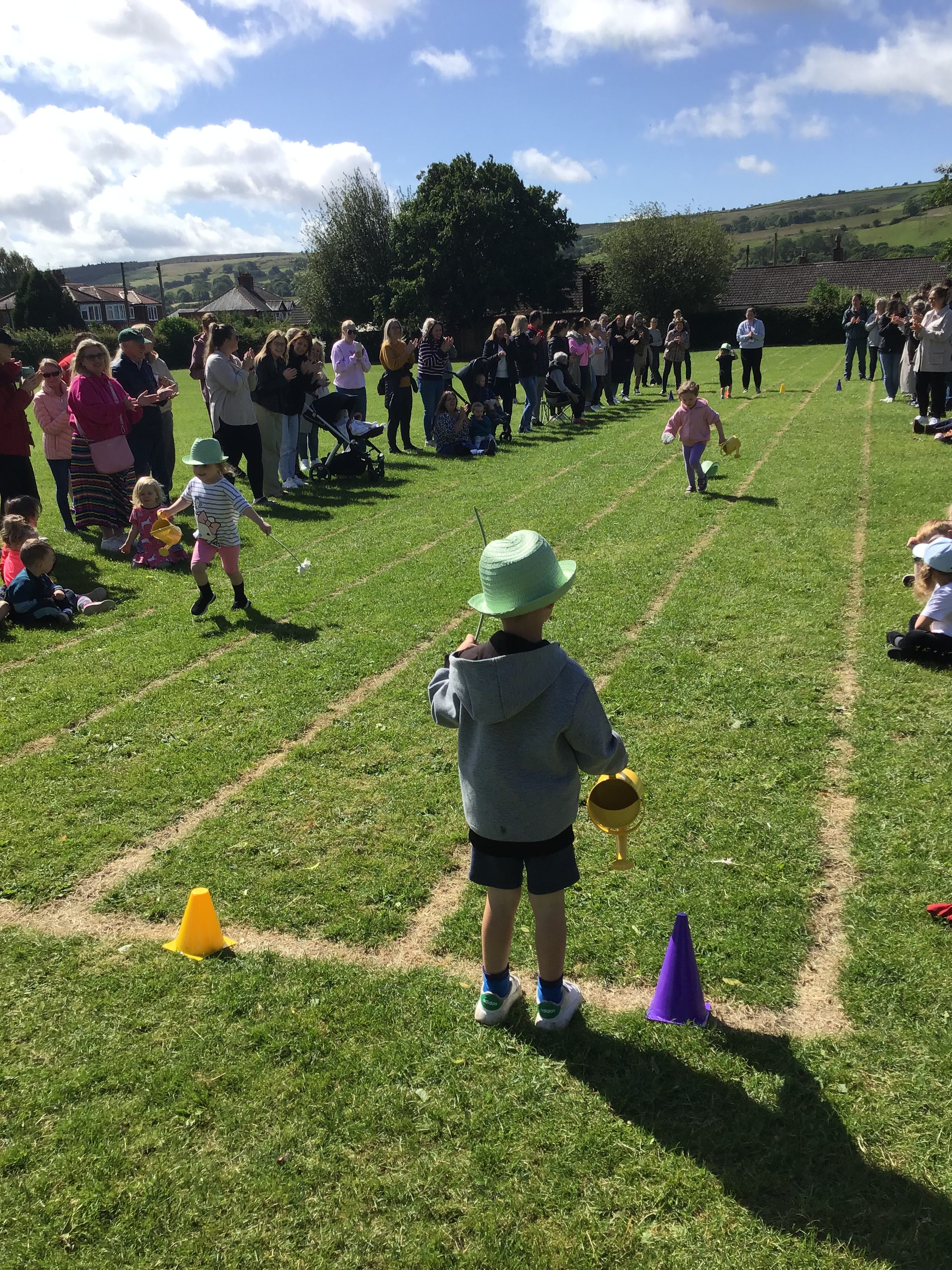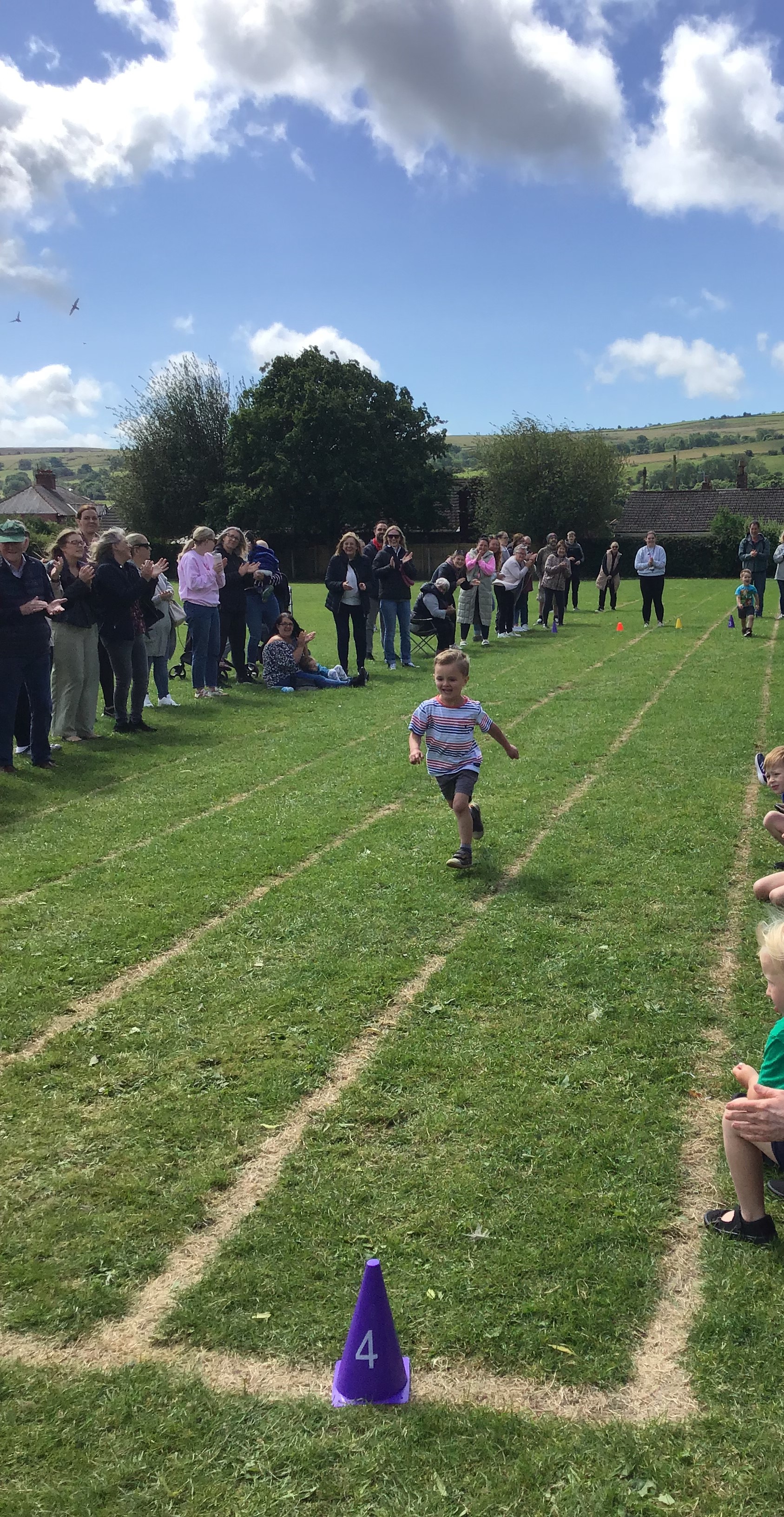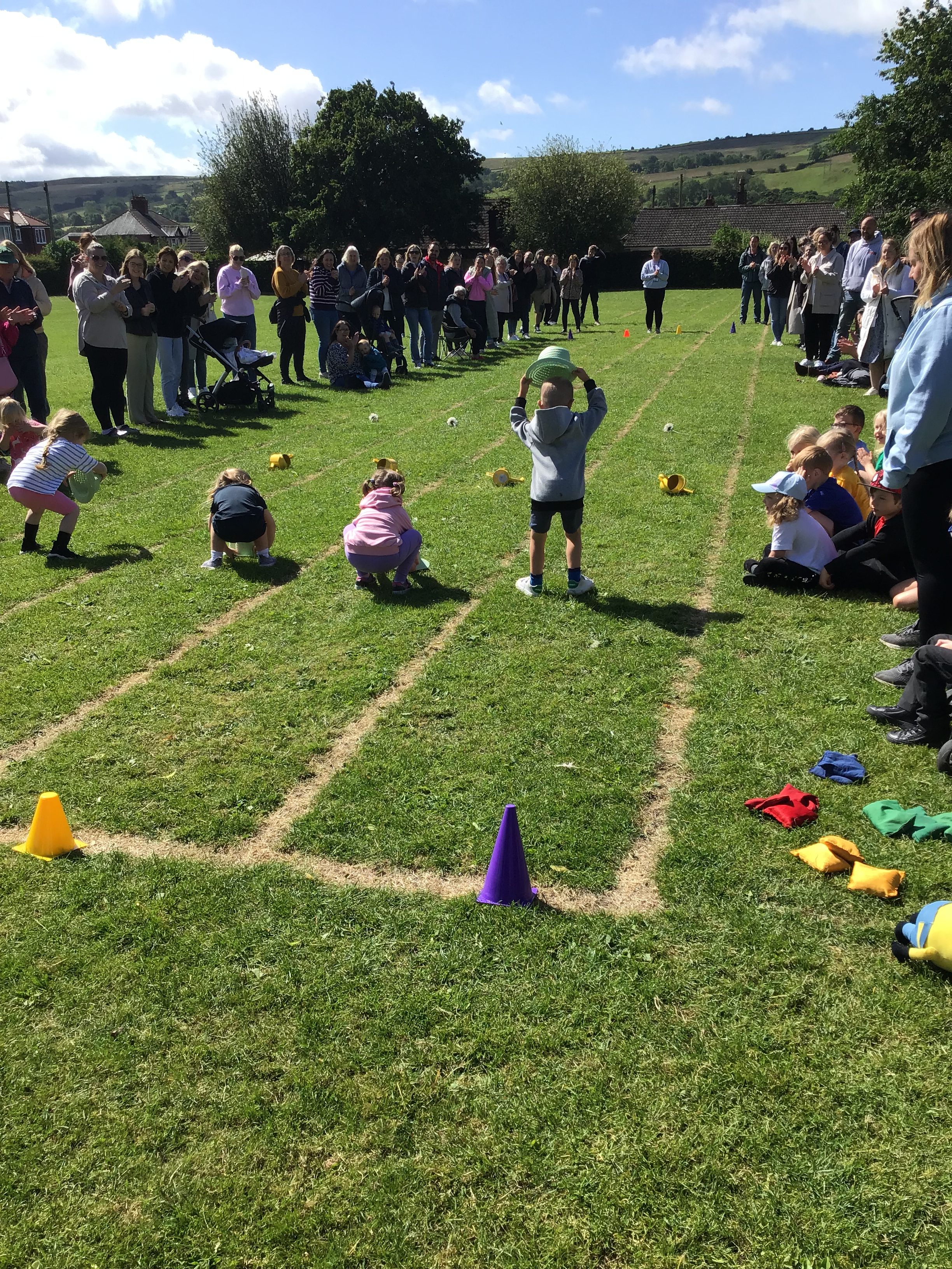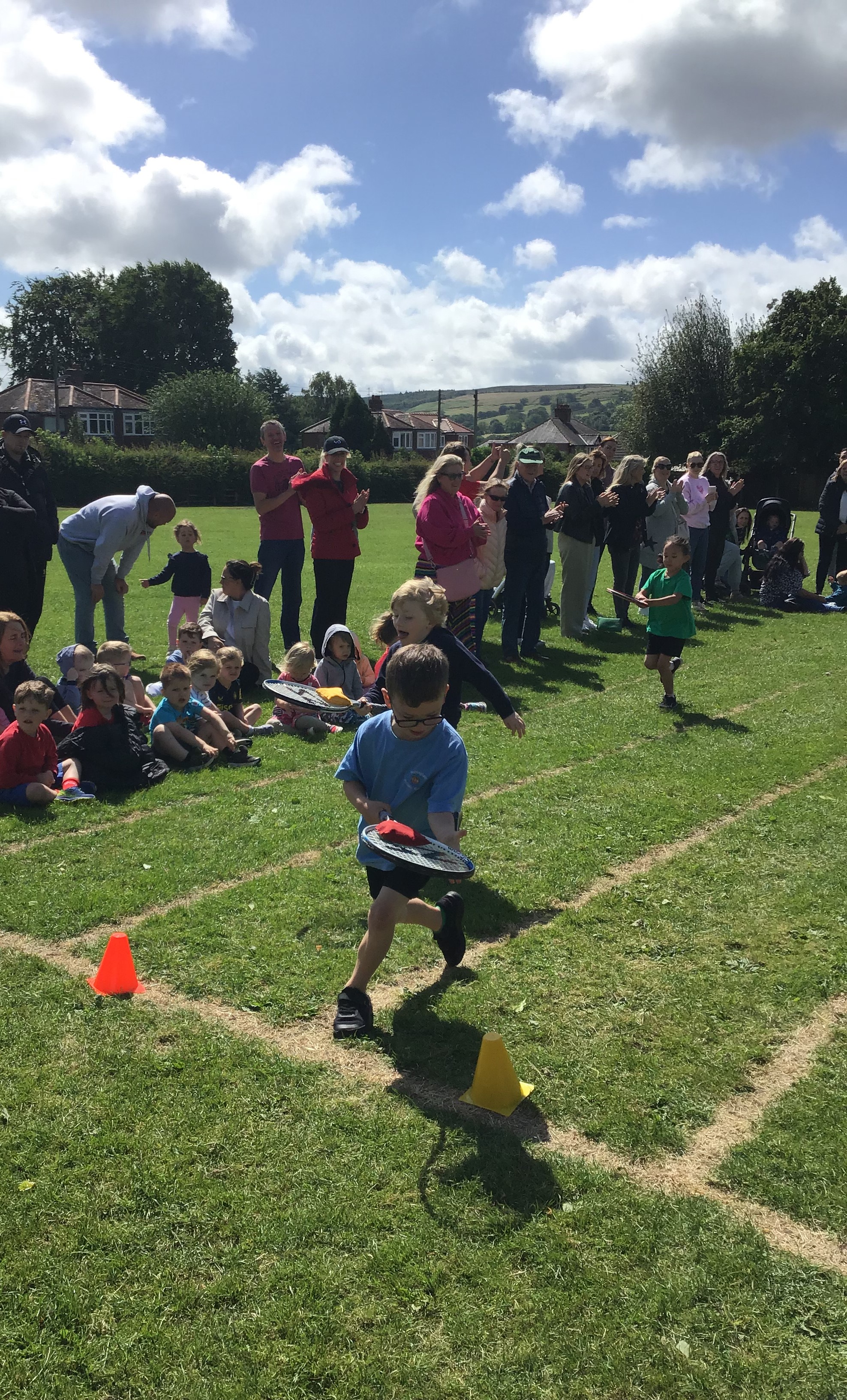 Nursery and Reception children had a wonderful time at EYFS Sports Day. The children were cheered along by parents and grandparents as the completed races. All the children tried their best as they ran, jumped, crawled and collected things. The children were rewarded with a medal and an ice-lolly for all their efforts. Thank you to all those who came along to support the children.