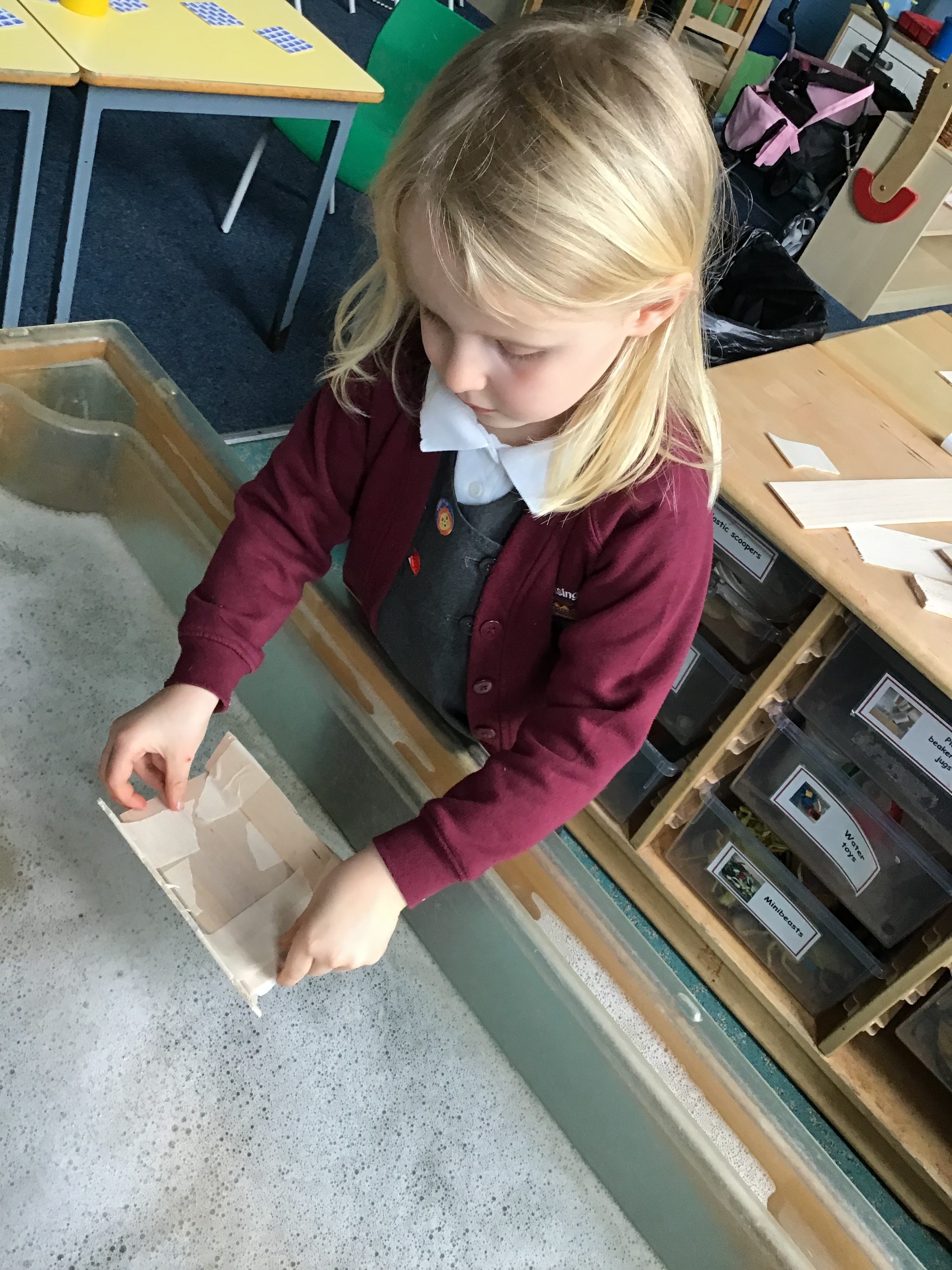 The Reception children listened to the Bible story of ‘Noah’s Ark’. Then they wanted to have a go at making their own boats. They had lots of fun making boats from junk materials. The children then tested their boats to see if they would float or sink. They put toy animals on the boats to see how many they could hold.