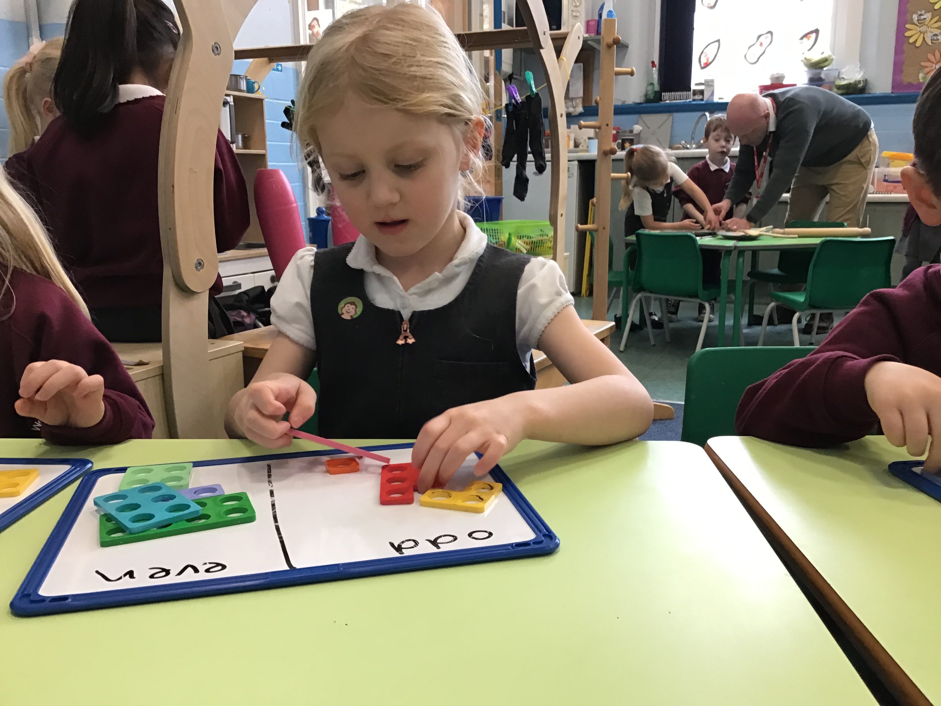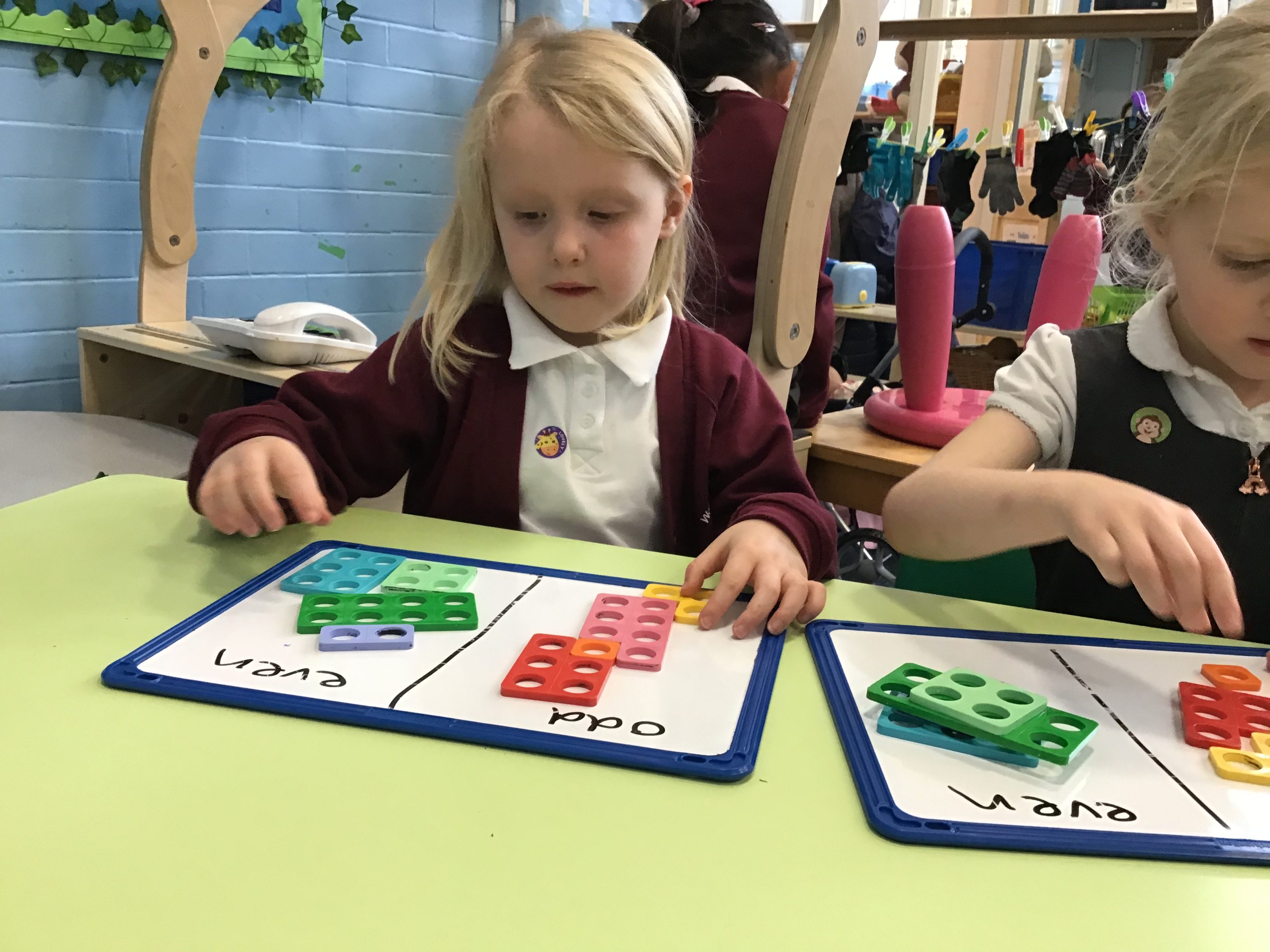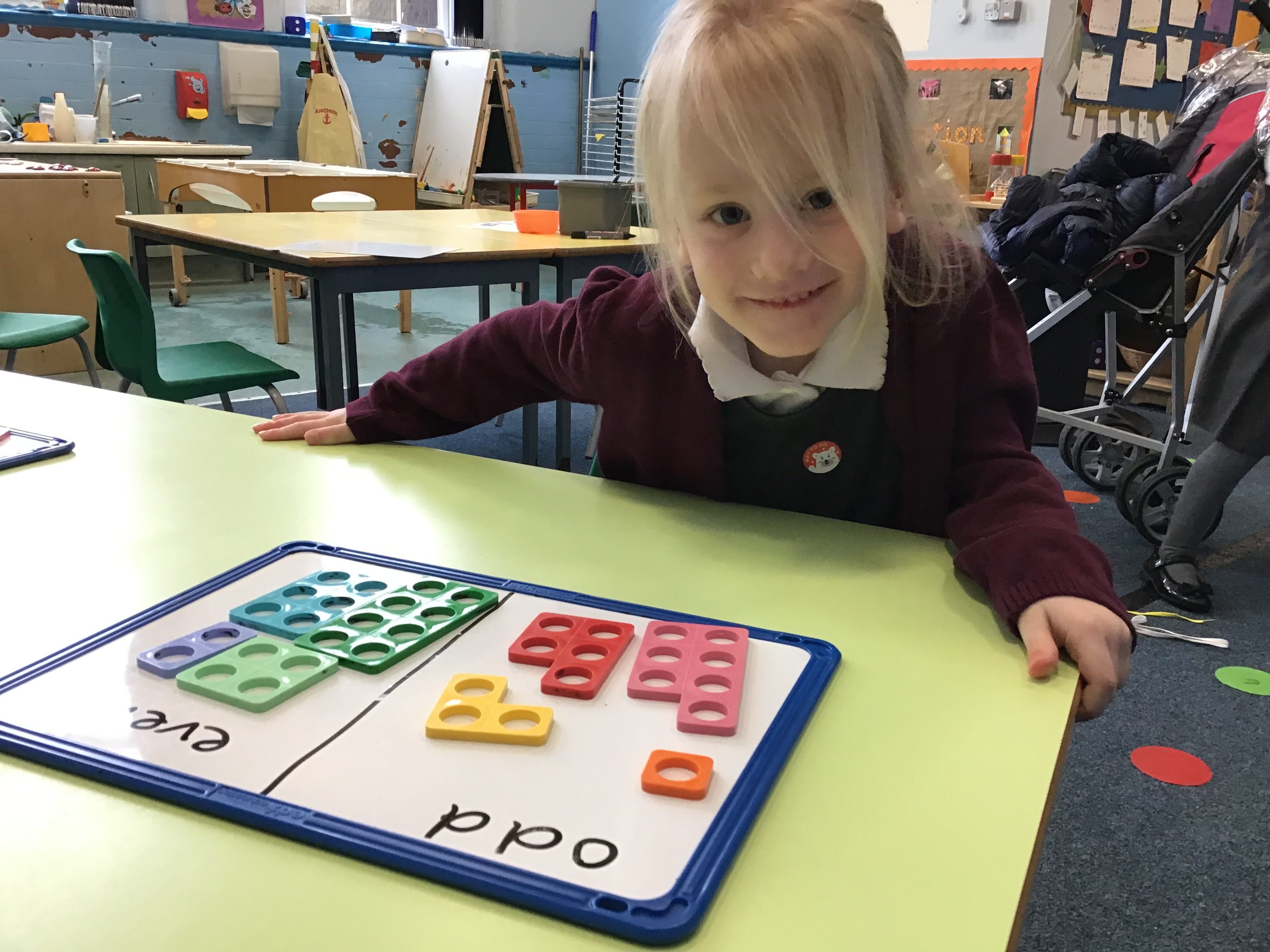 This week in maths we have been talking about putting things in pairs. We looked at different amounts of counters and put them into pairs. We talked about how sometimes there is a spare one left over after we have made the pairs. The children learnt that these are known as odd numbers. We went on to look at numicon shapes and sorted them into odd or even.
