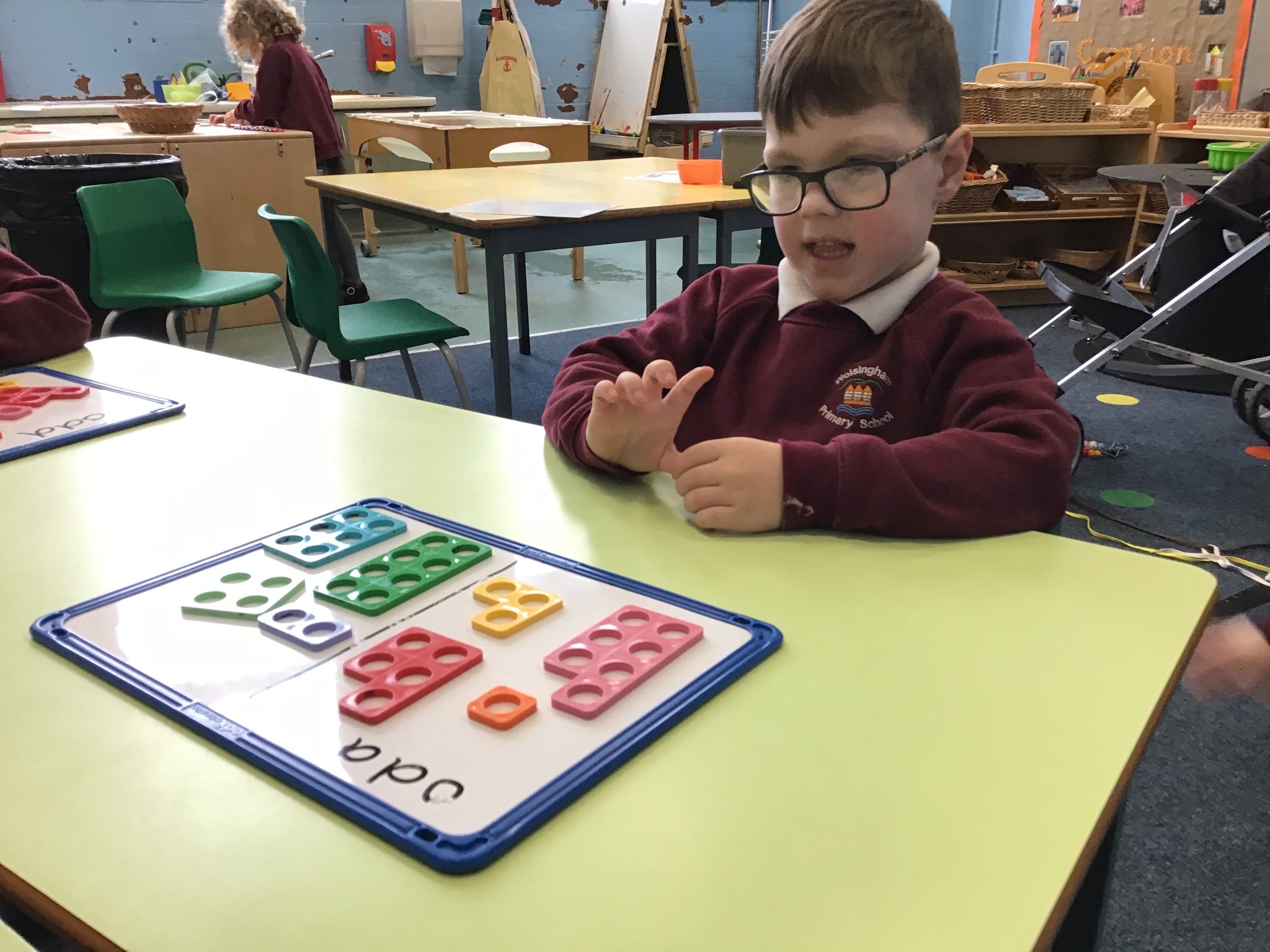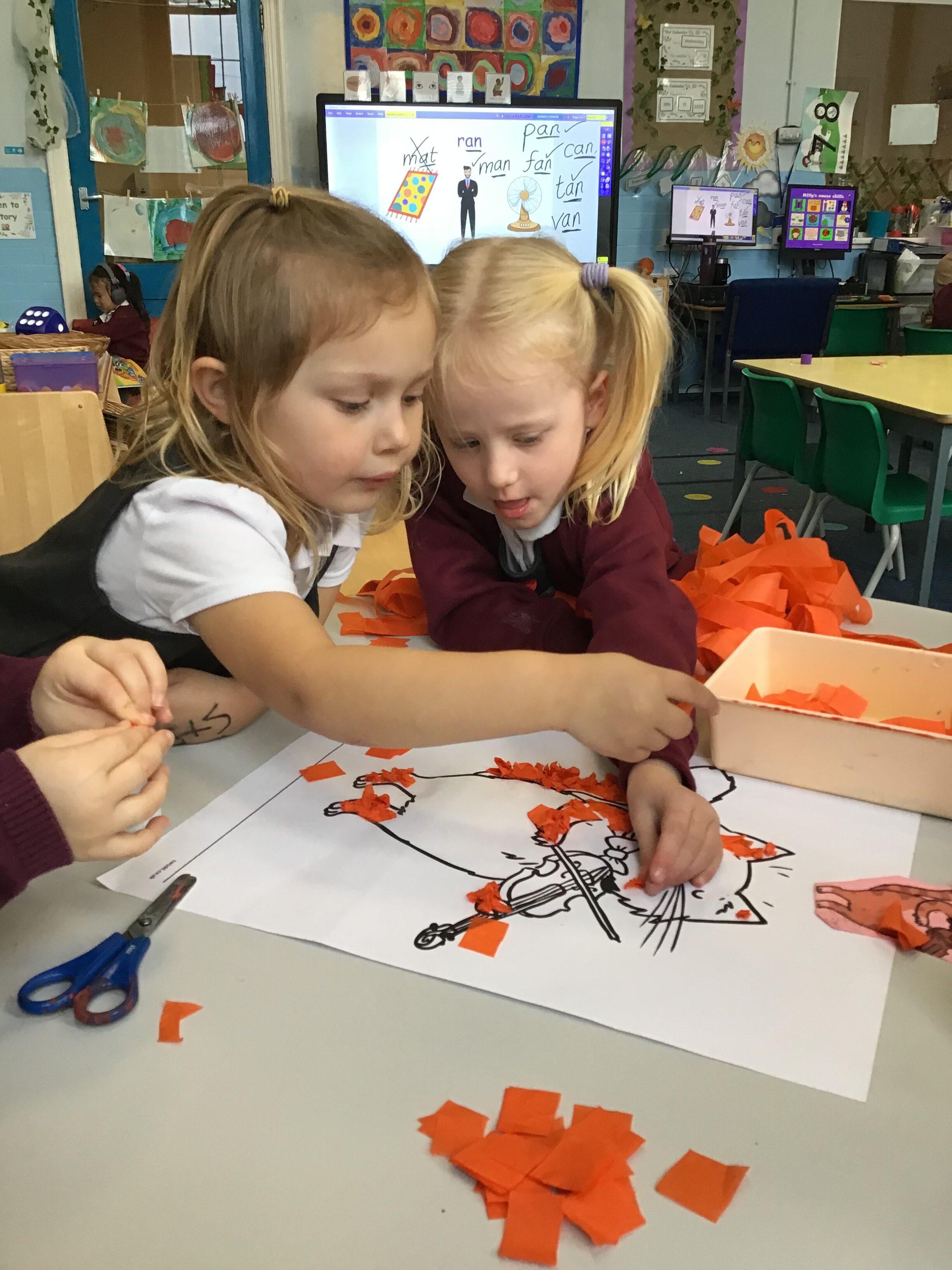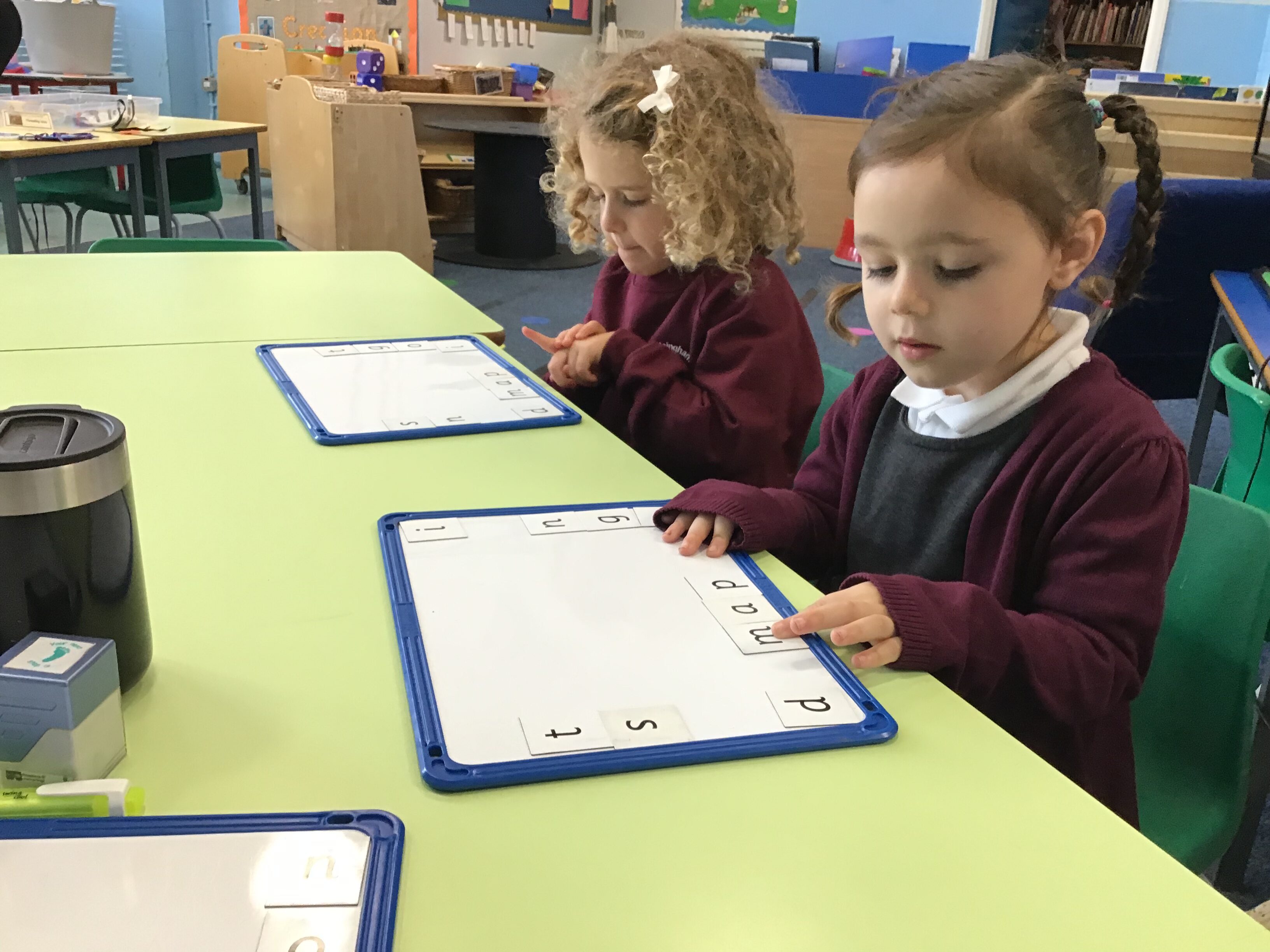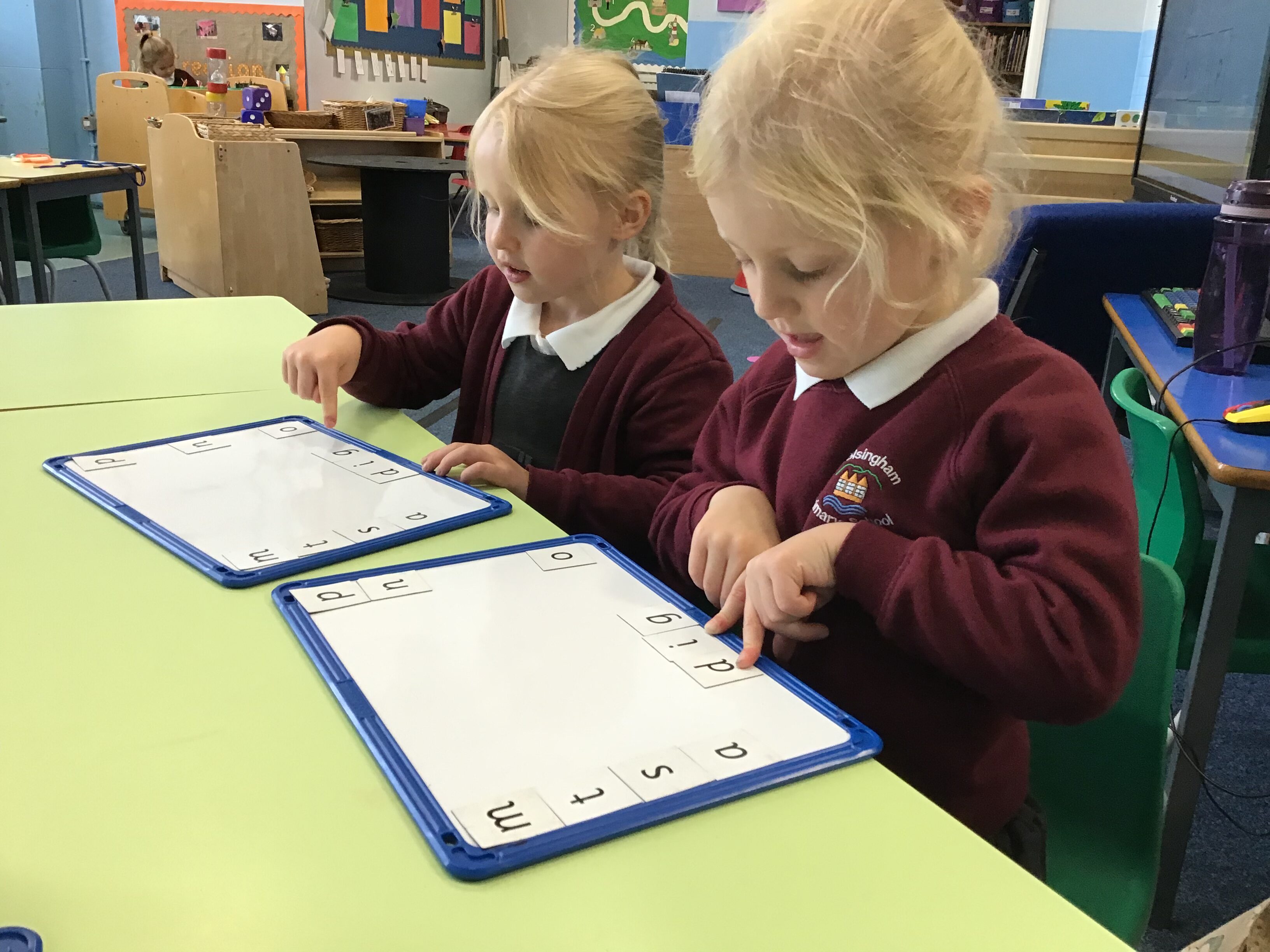 The Reception children have made an excellent start to learning the Read Write Inc set 1 sounds. The children are working on recognising the sounds and are starting to blend the sounds to read simple word, e.g. m-a-t….mat.