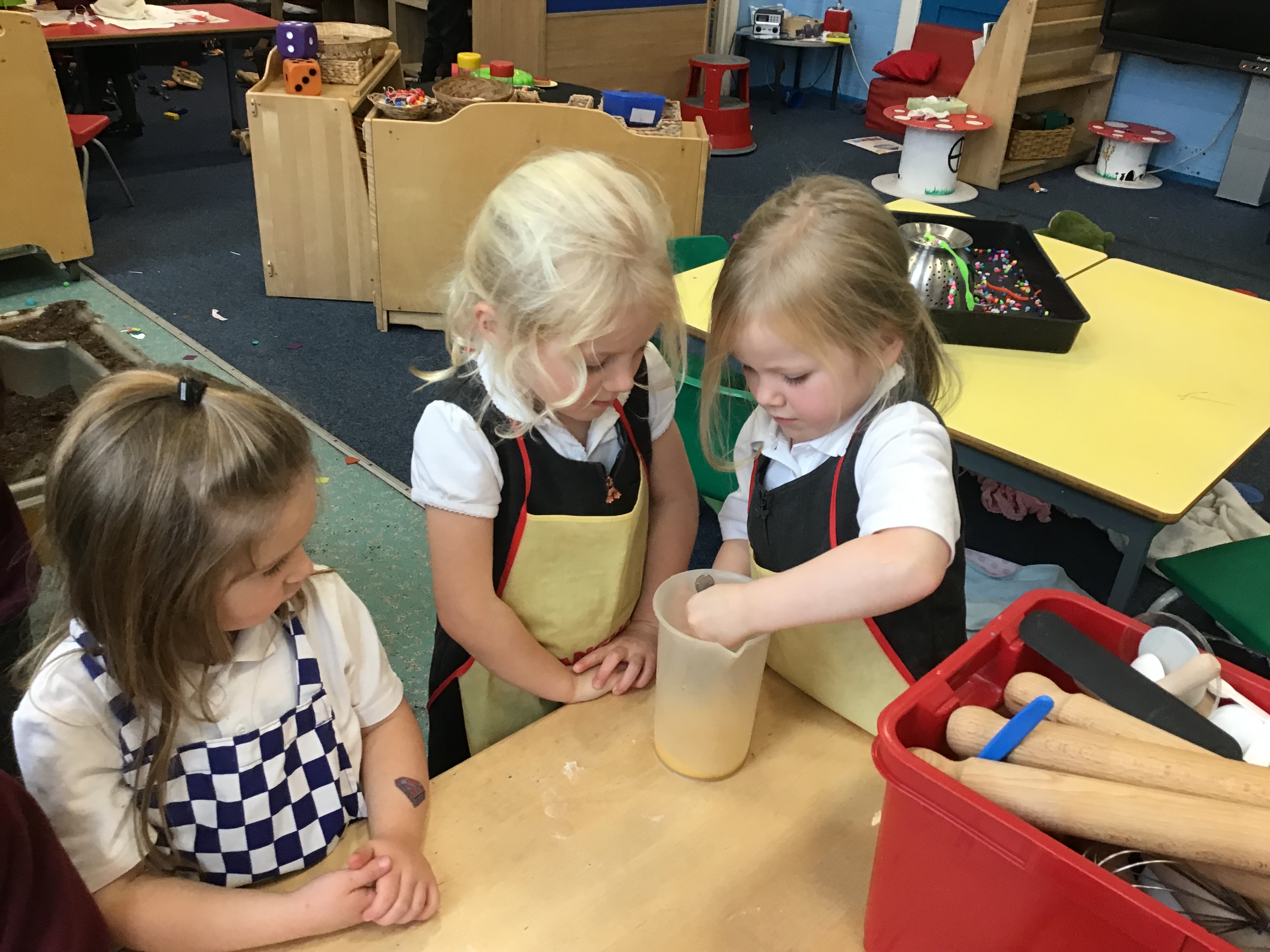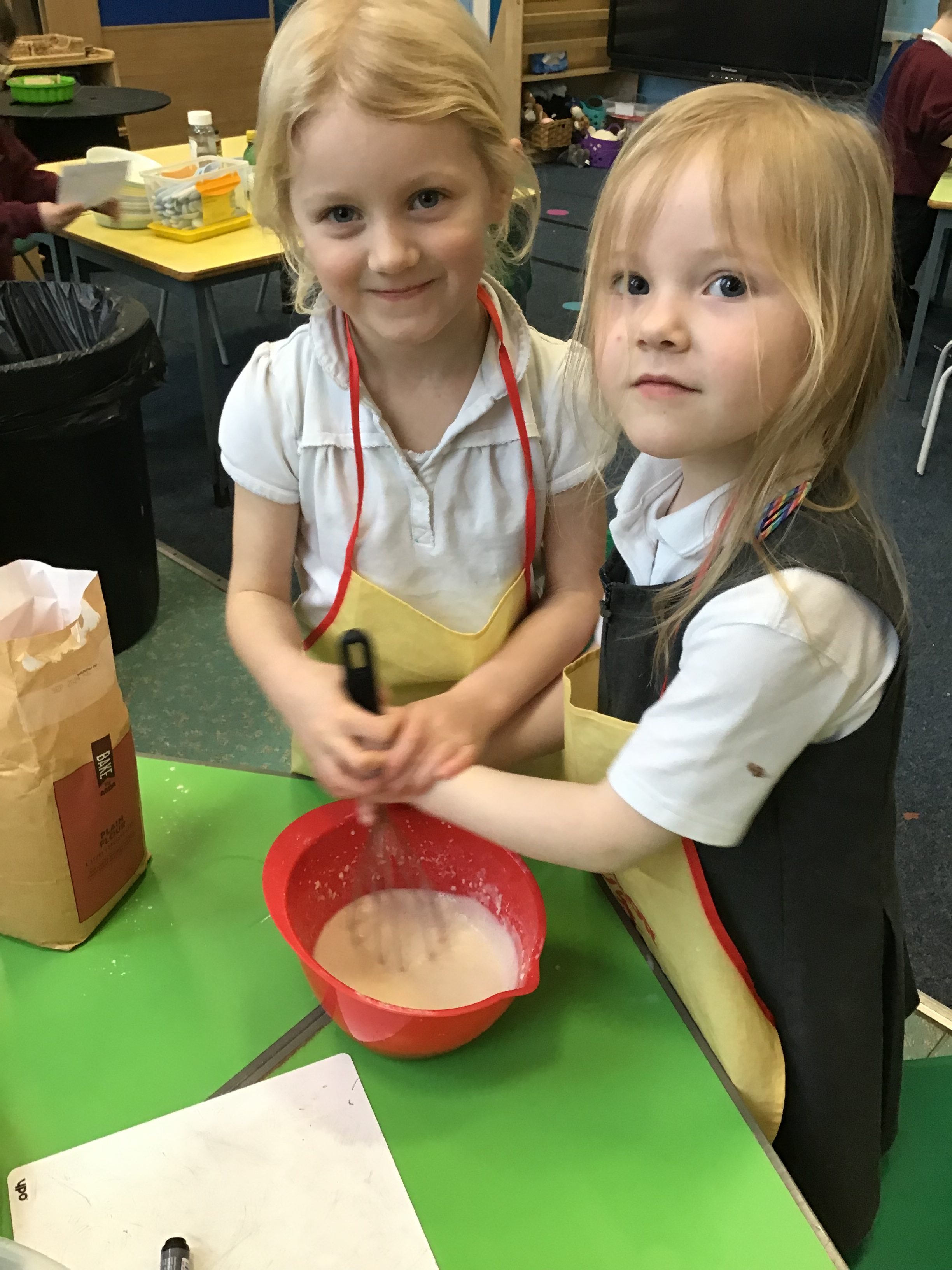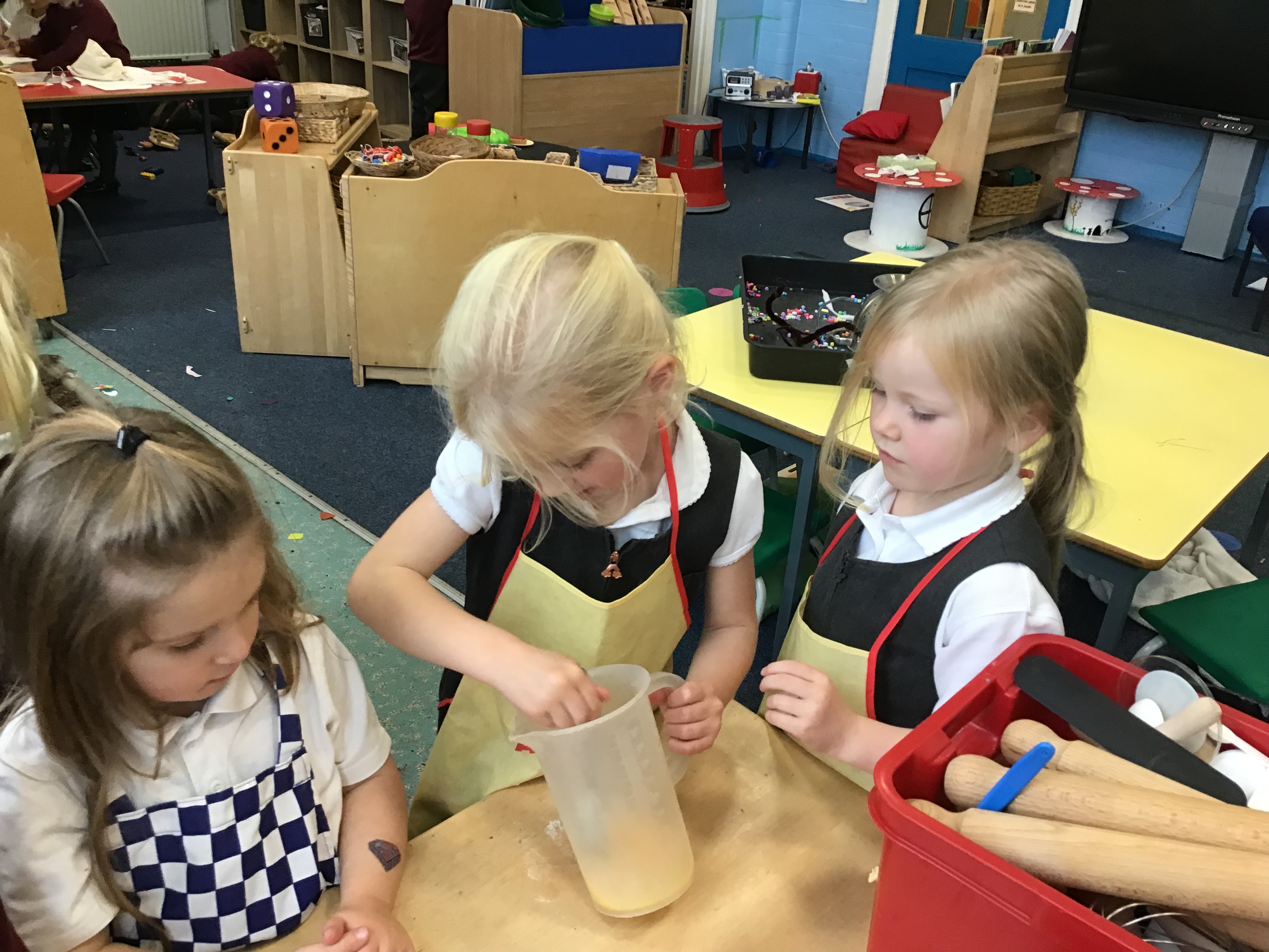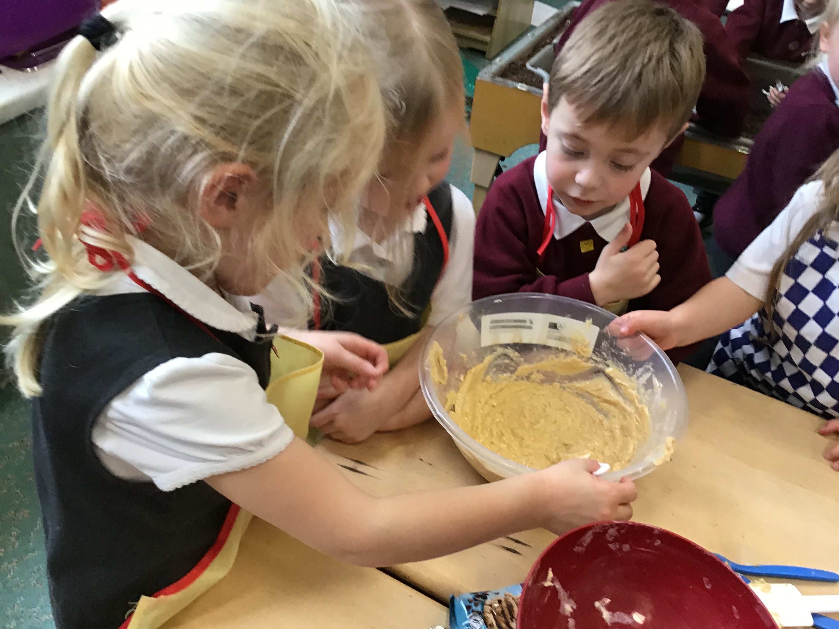 While baking, the children were using lots of maths and language skills. They had lots of fun and are looking forward to eating the cookies for snack tomorrow.