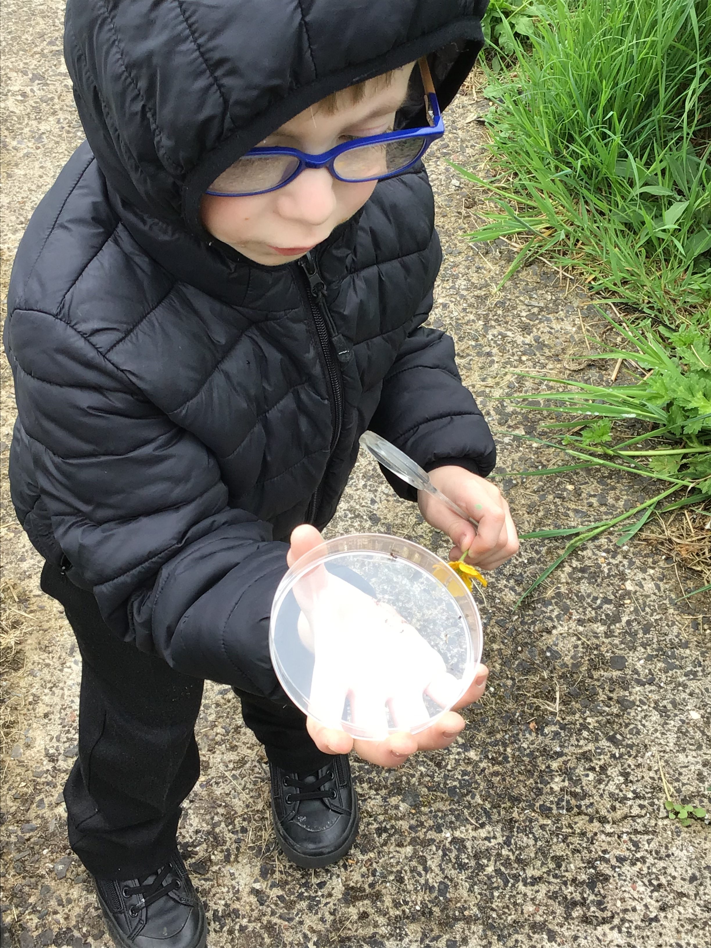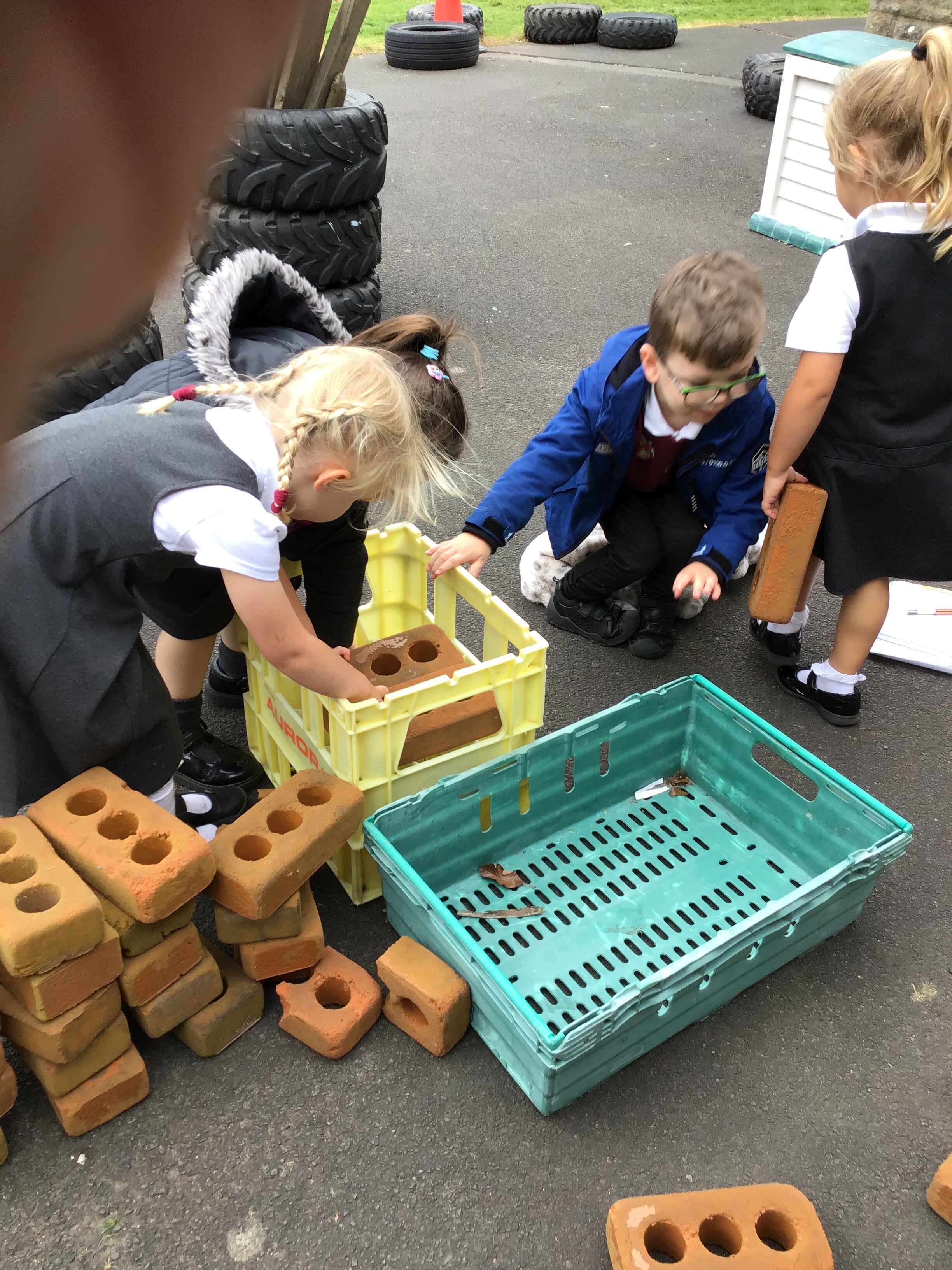 Reception Class had lots of fun out in the school wildlife garden looking for minibeasts. They found snails, slugs, woodlice, spiders and centipedes. They handled the creatures carefully and enjoyed using magnifying glasses to look at them closely.