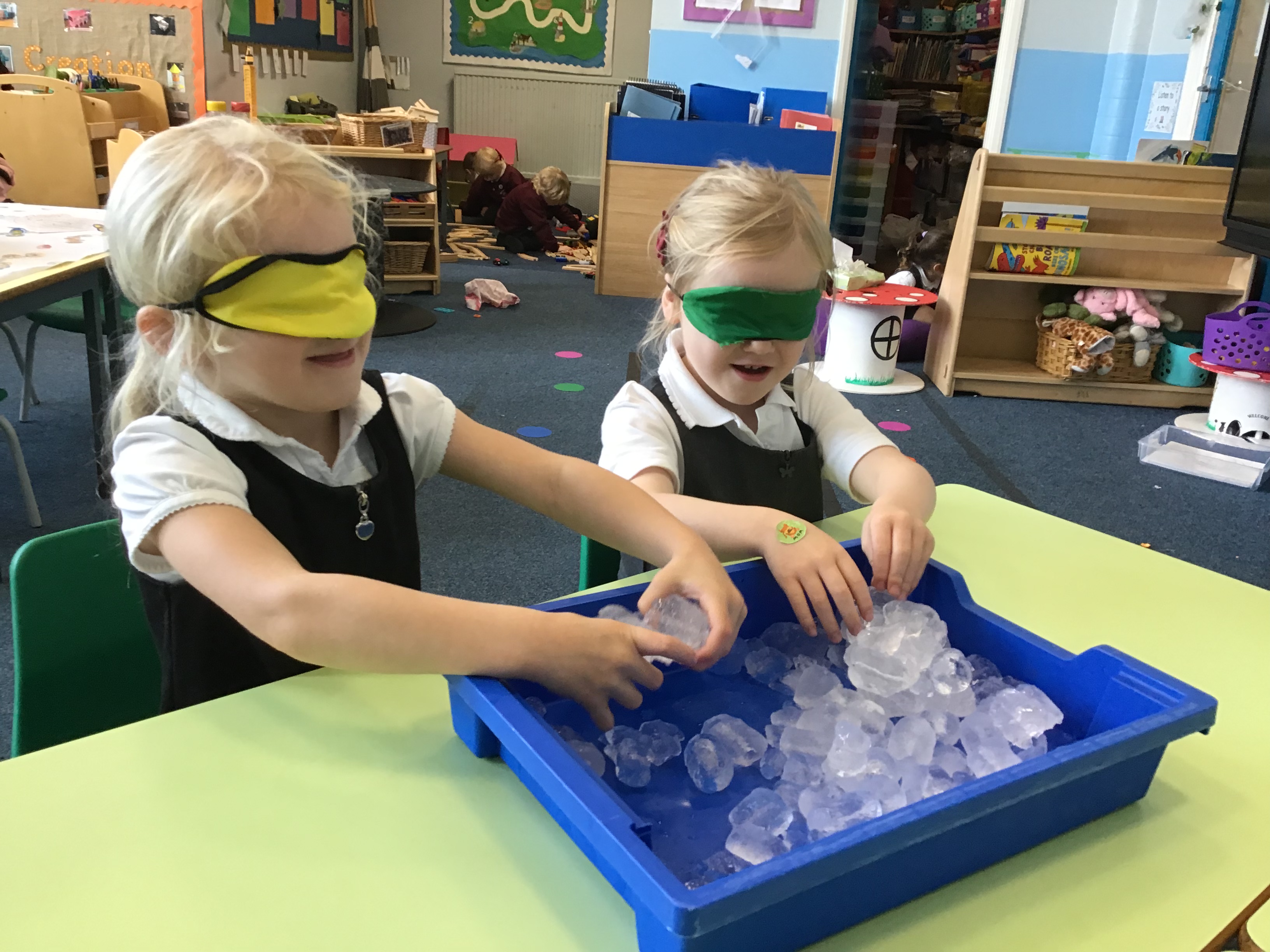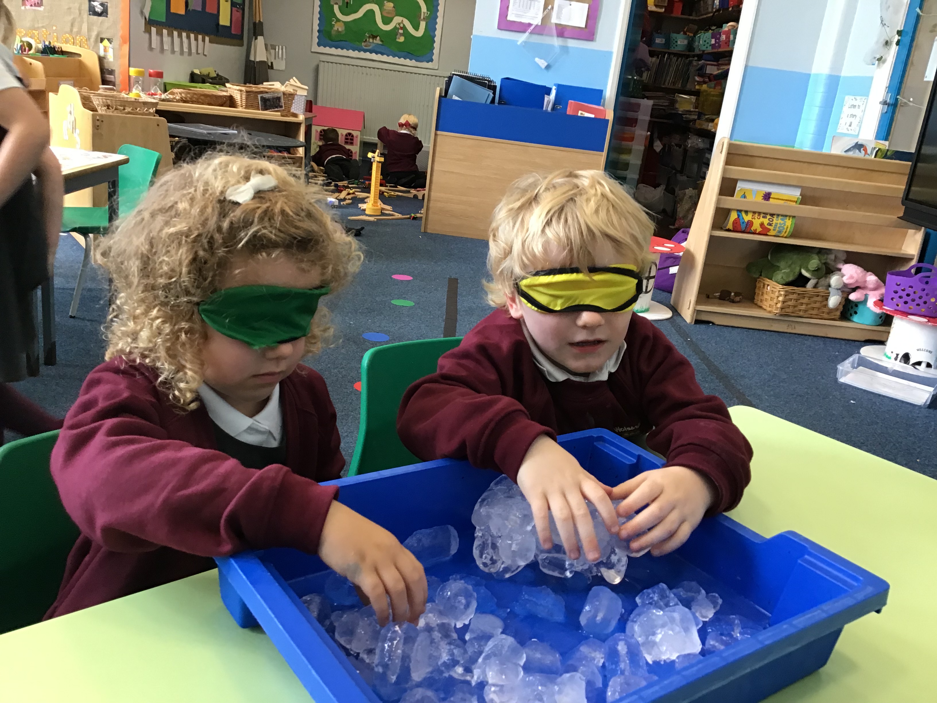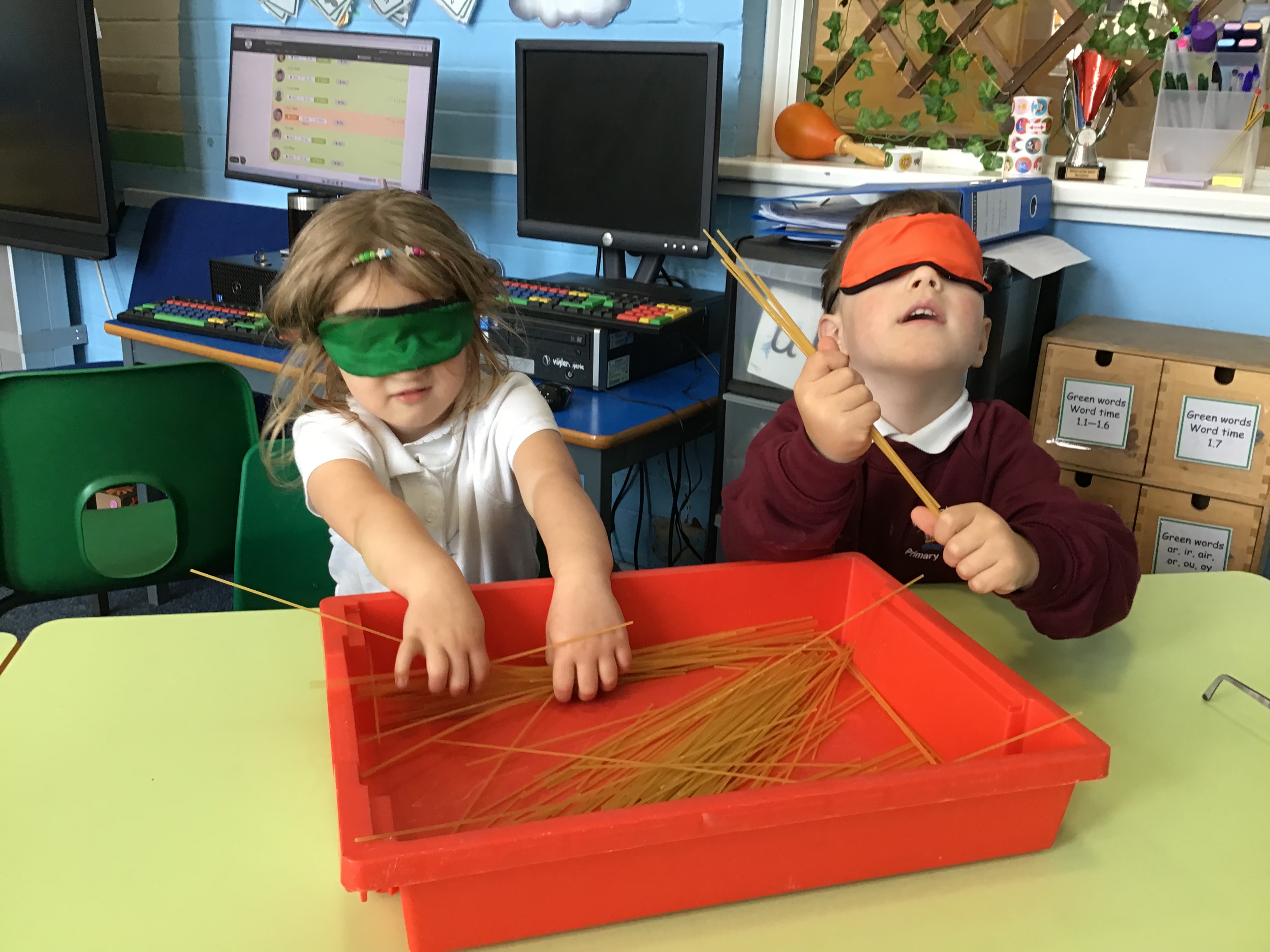 In Reception Class we have been learning to name parts of the body and about the 5 senses. The children had lots of fun using their sense of touch to work out what was in the trays. They used their language skills to describe what they could feel. Here are some examples of what the children said: