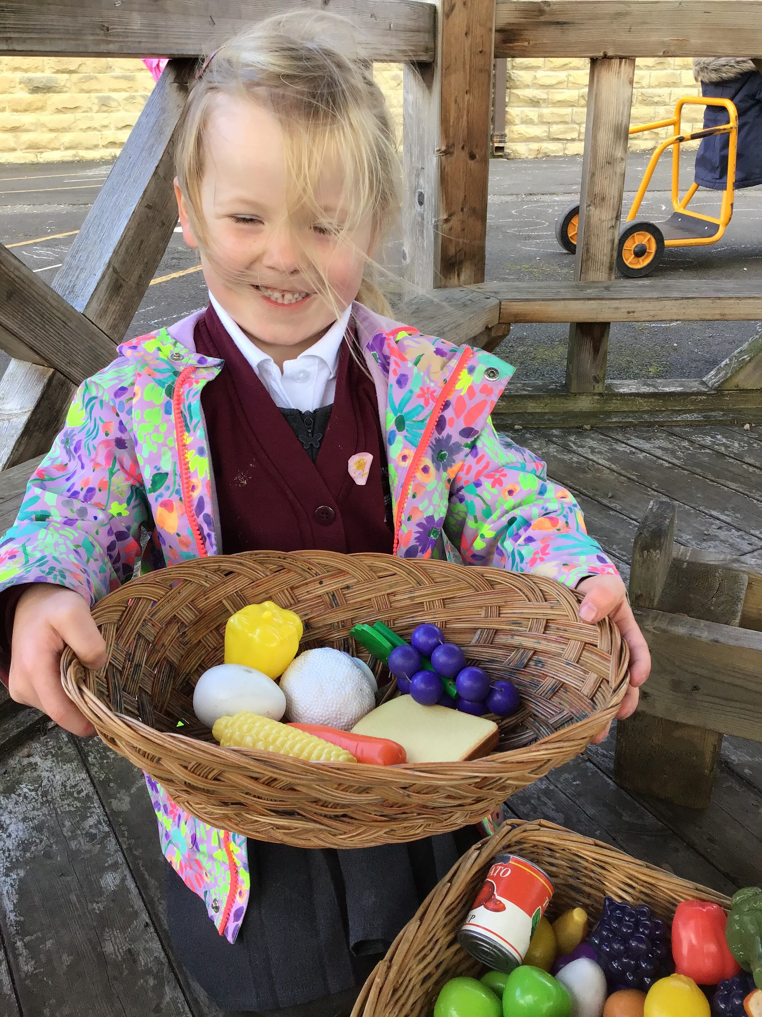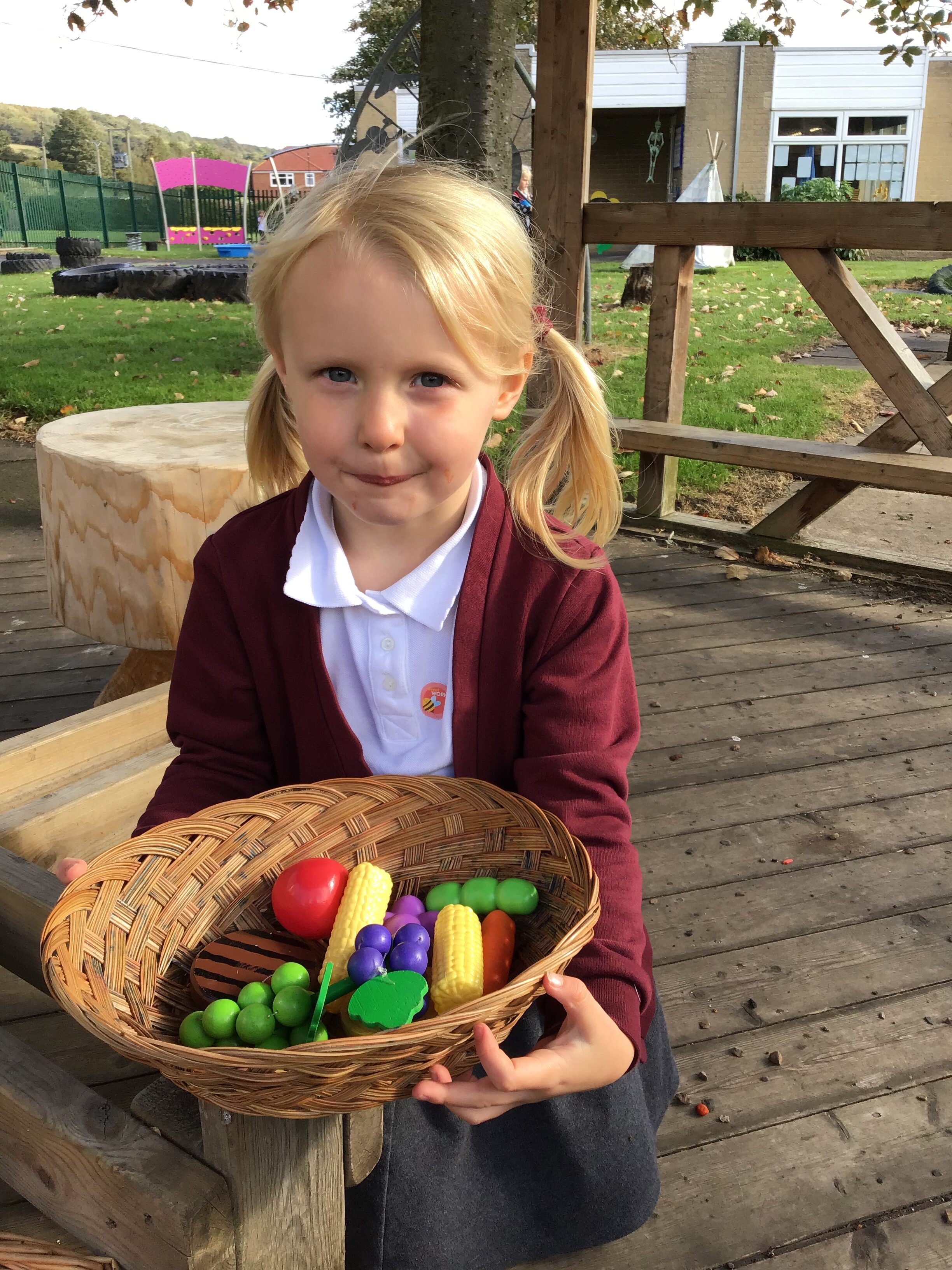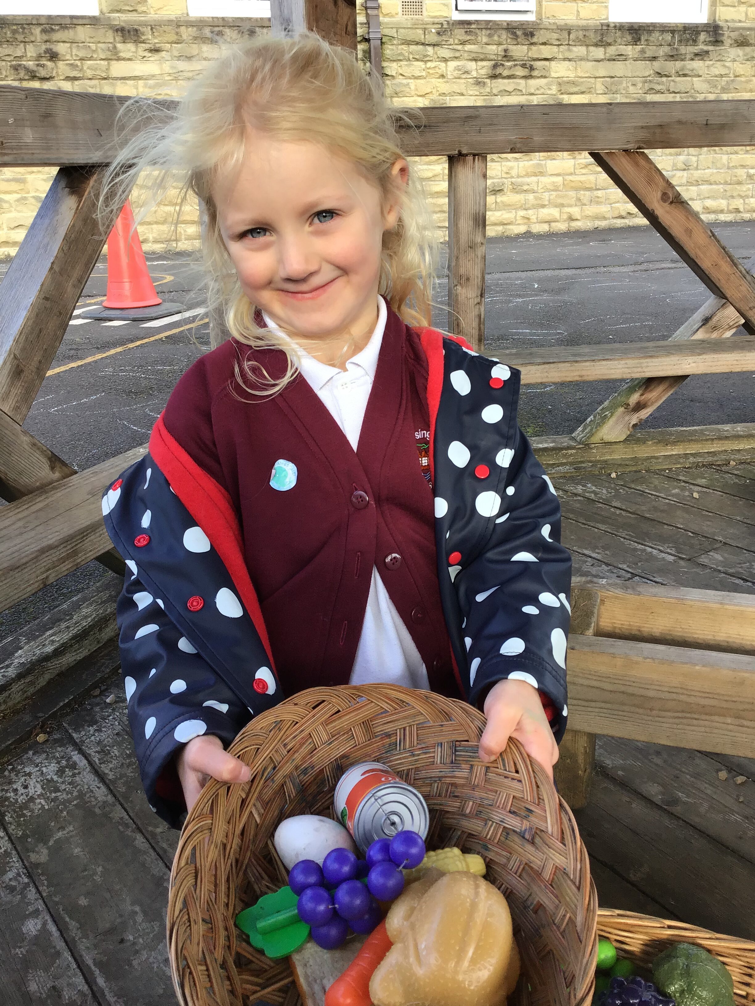 In Reception Class we read the story of ‘The Little Red Hen’ and then we talked about how farmers have been busy gathering in the crops. We talked about all the different foods we eat and how we rely on farmers to grow lots of them. The children learnt that at Harvest Festival people say thank you for all the wonderful foods they have to eat. The children filled a basket with foods they liked and talked about foods they are thankful for.