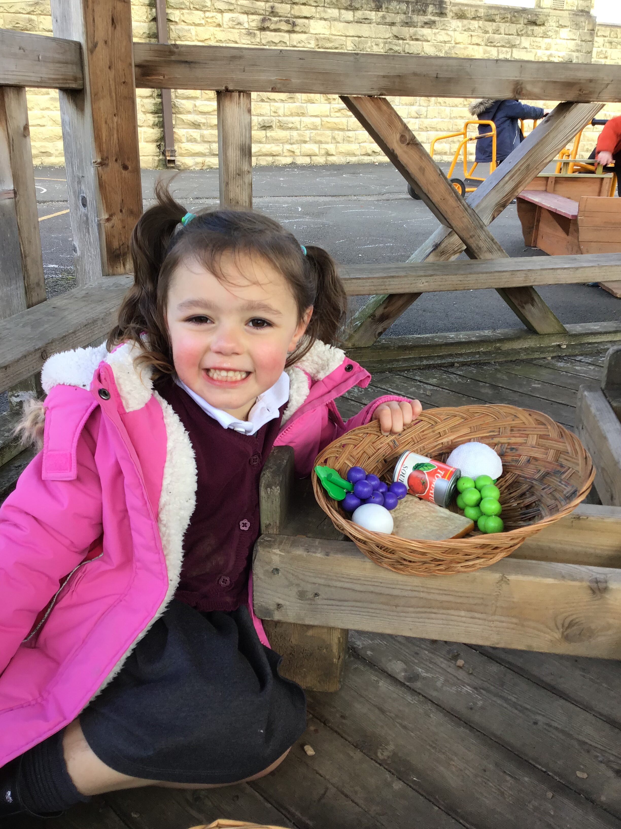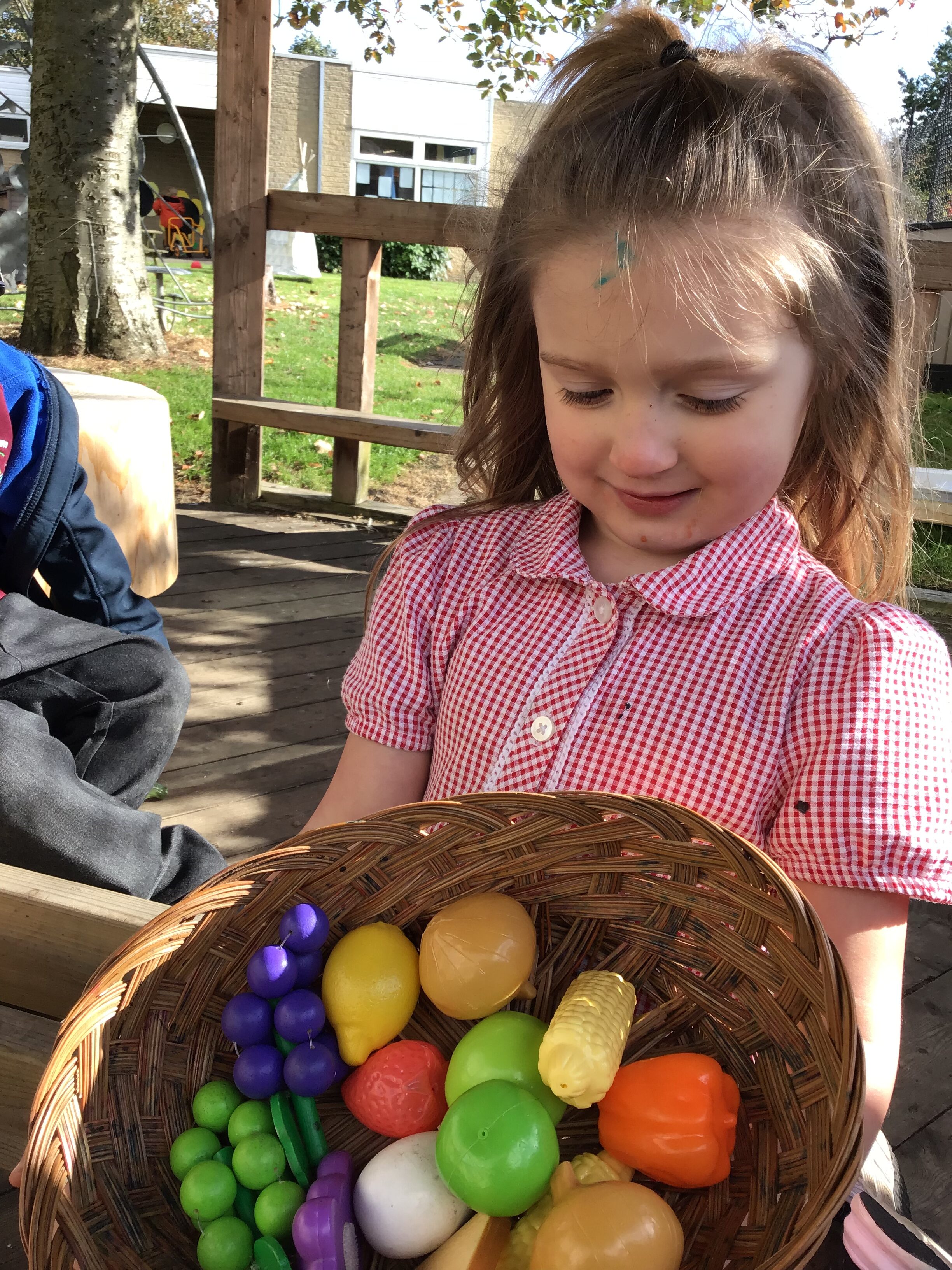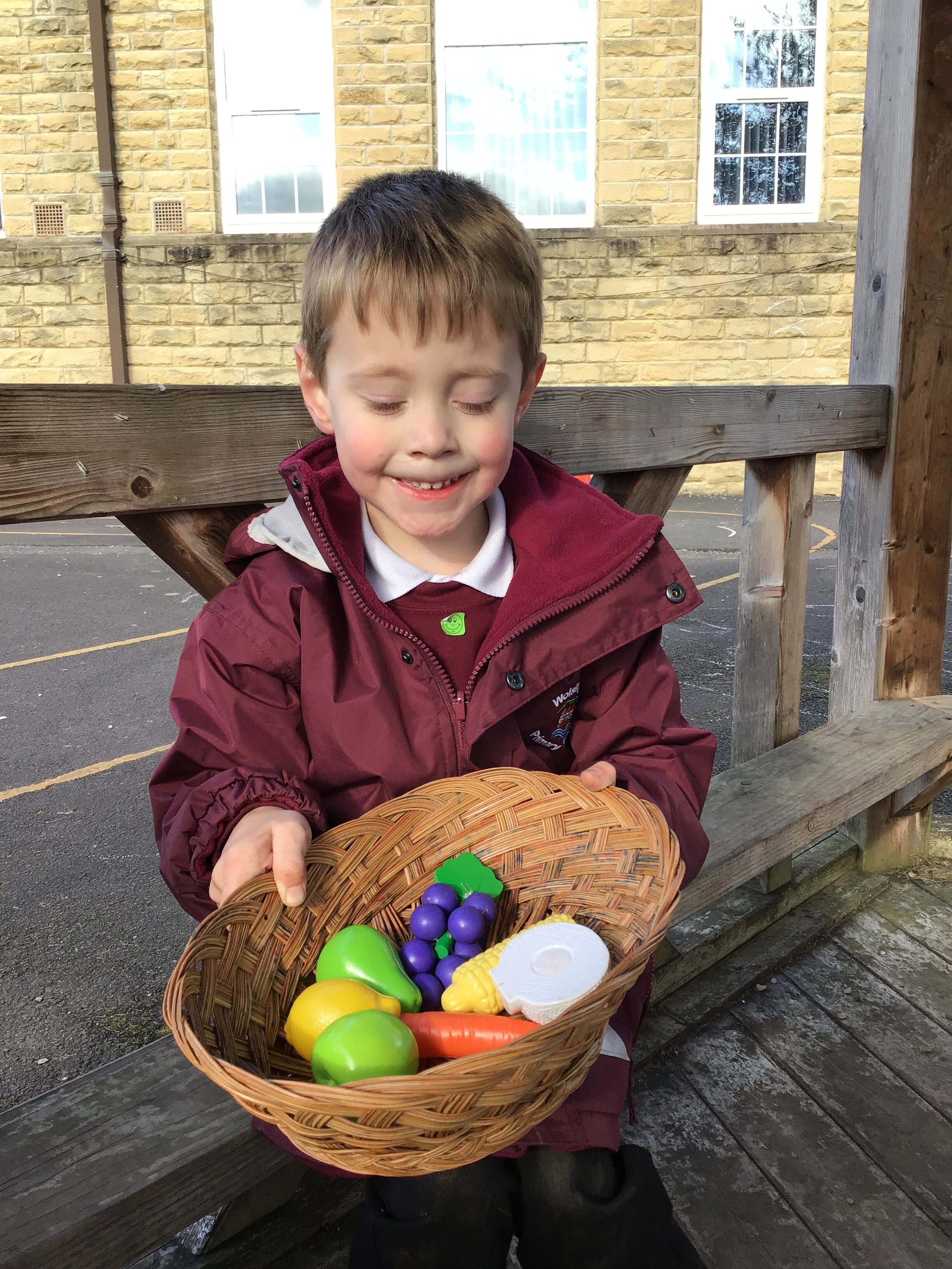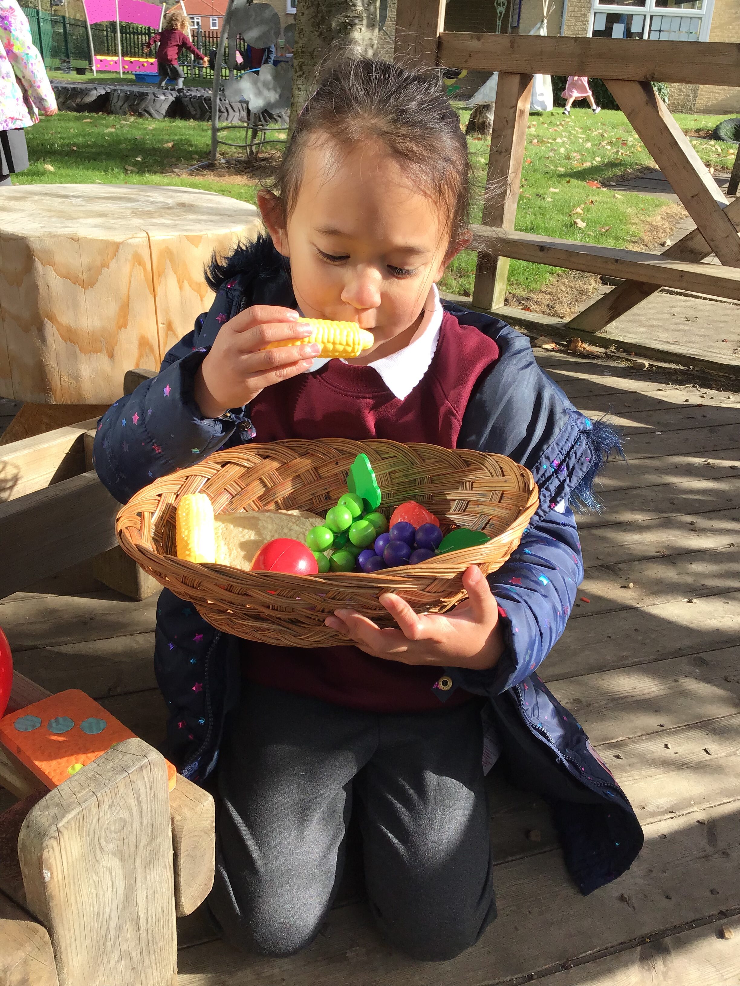 In Reception Class we read the story of ‘The Little Red Hen’ and then we talked about how farmers have been busy gathering in the crops. We talked about all the different foods we eat and how we rely on farmers to grow lots of them. The children learnt that at Harvest Festival people say thank you for all the wonderful foods they have to eat. The children filled a basket with foods they liked and talked about foods they are thankful for.