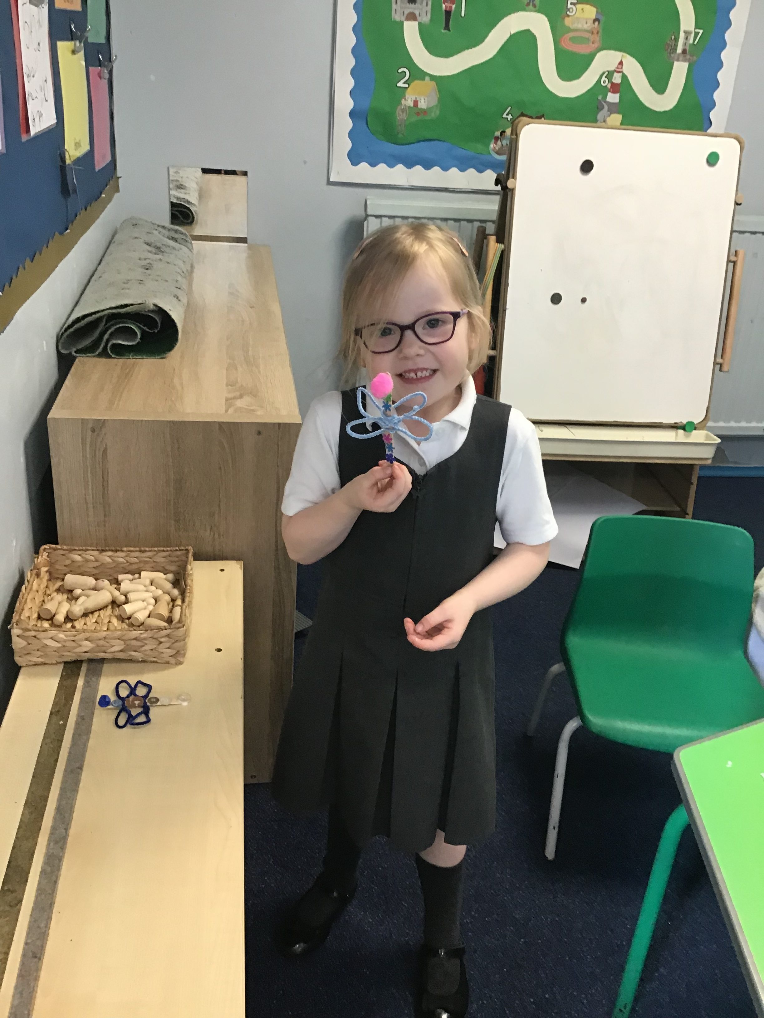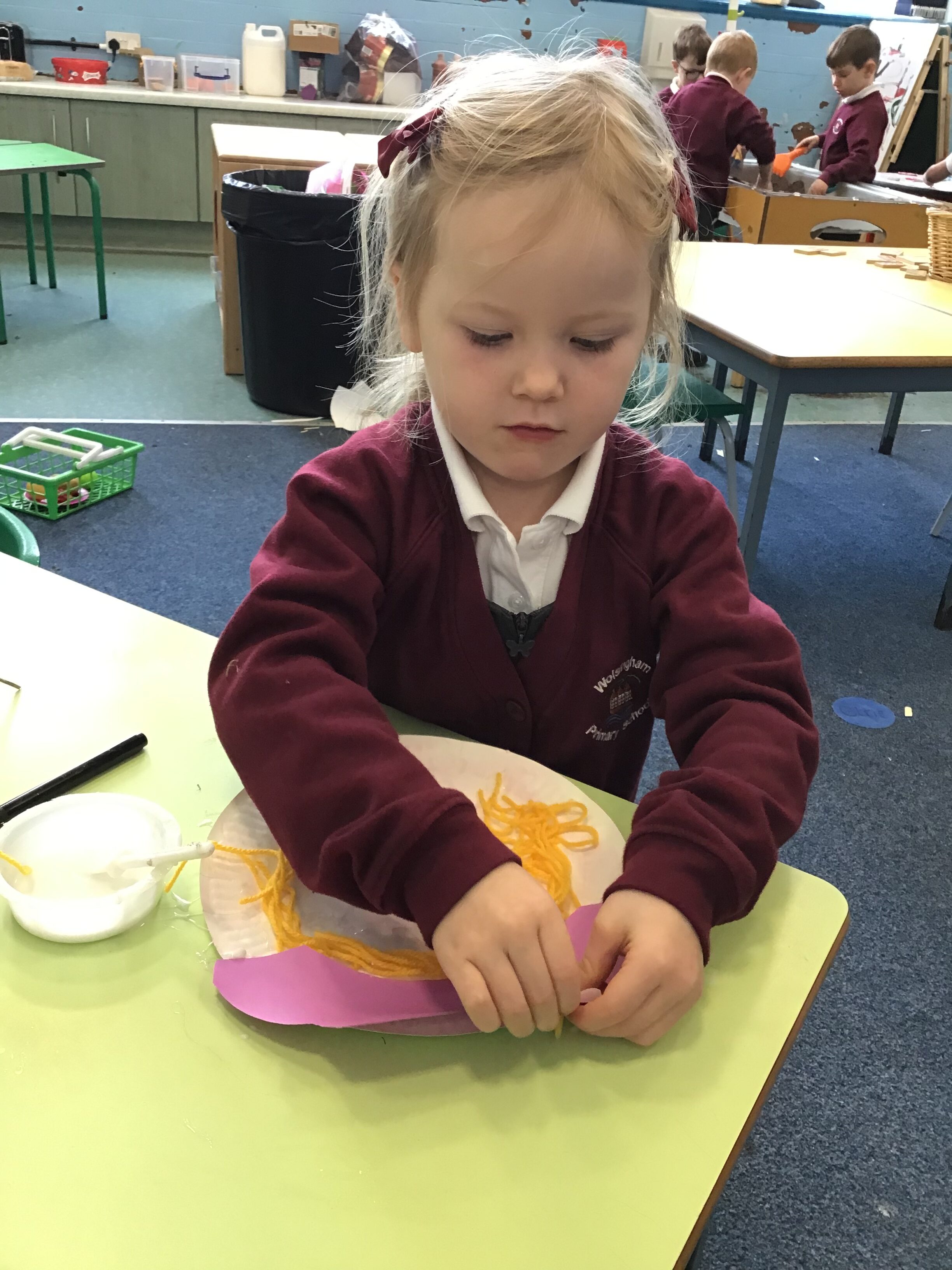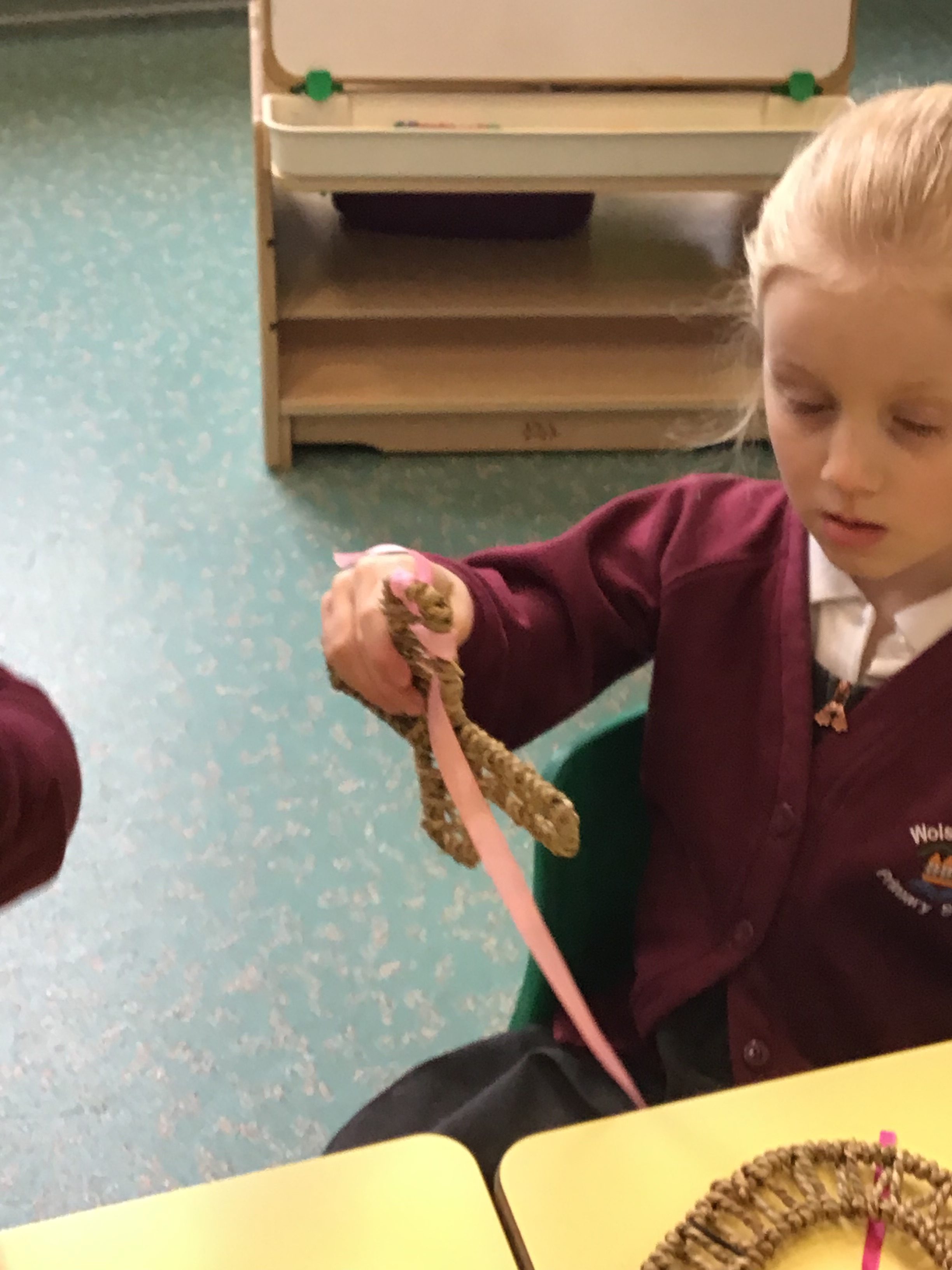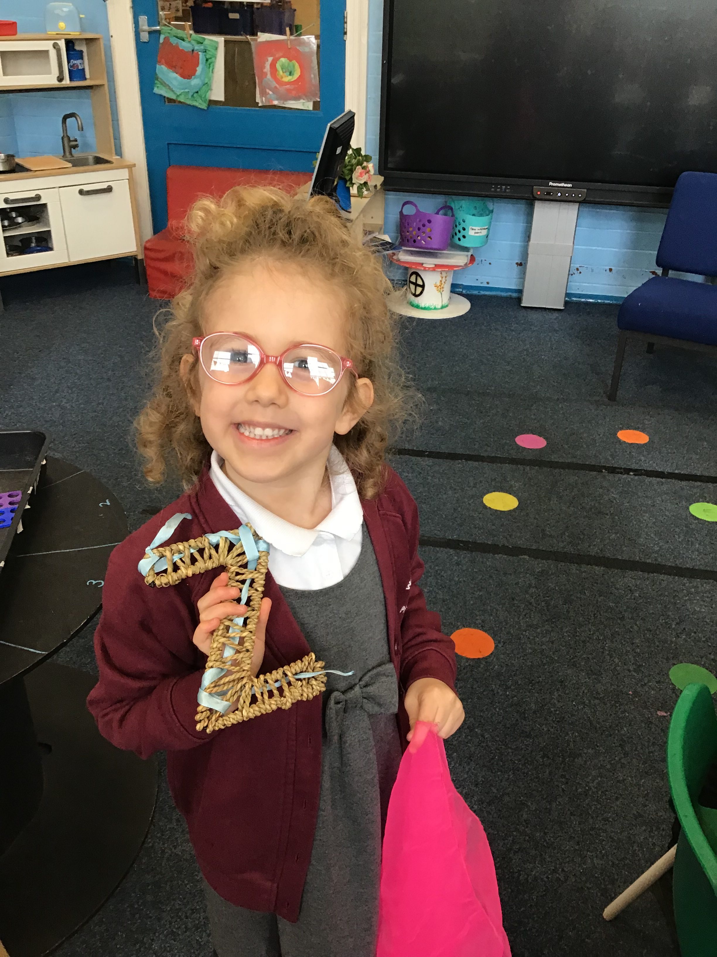 When Reception children enter the classroom each morning, they always have an activity to do that will help develop their fine motor skills. One of the activities is weaving ribbons in and out of wicker letters. It takes a lot of concentration and good hand-eye co-ordination to weave the ribbons up and down.