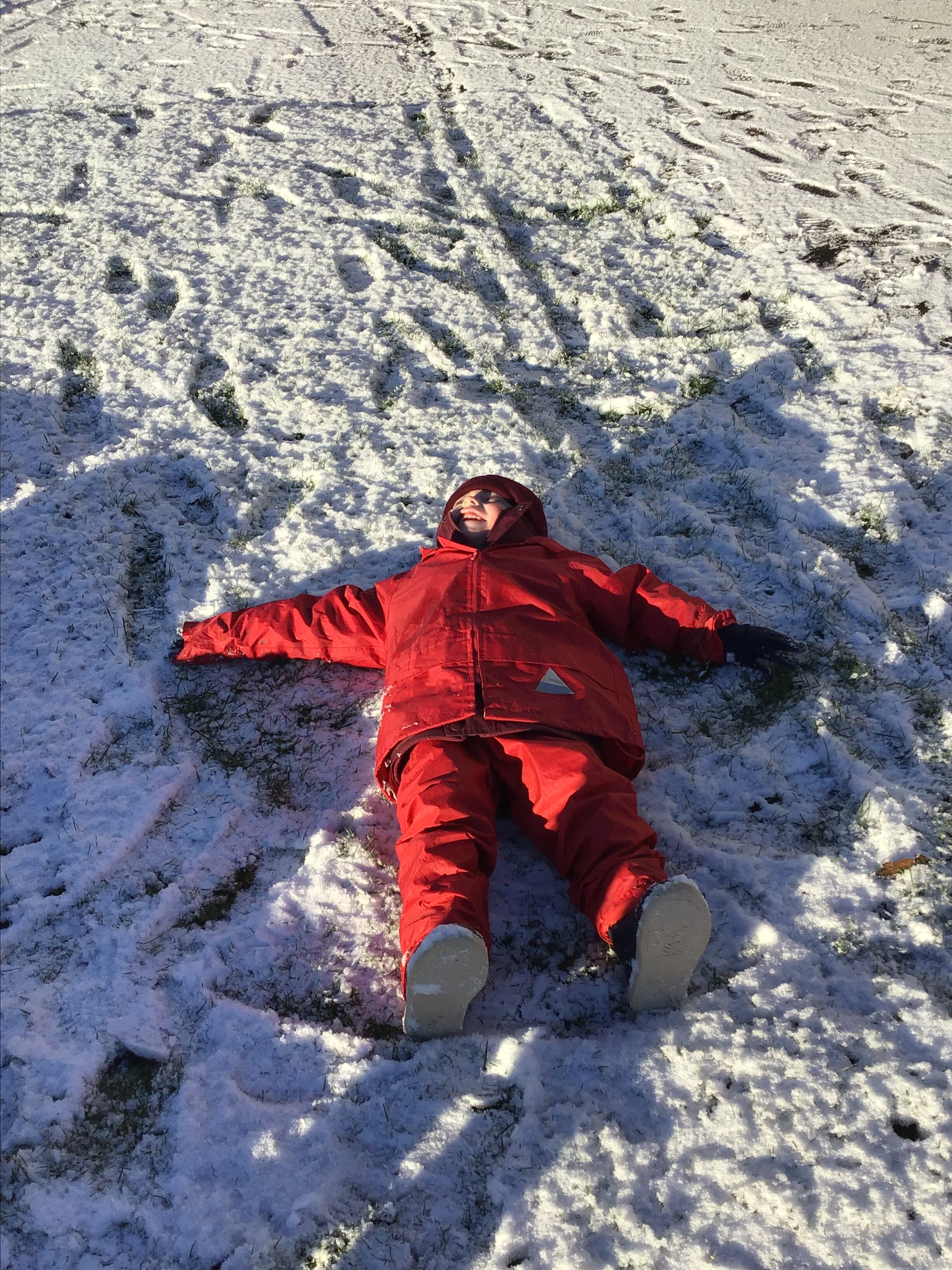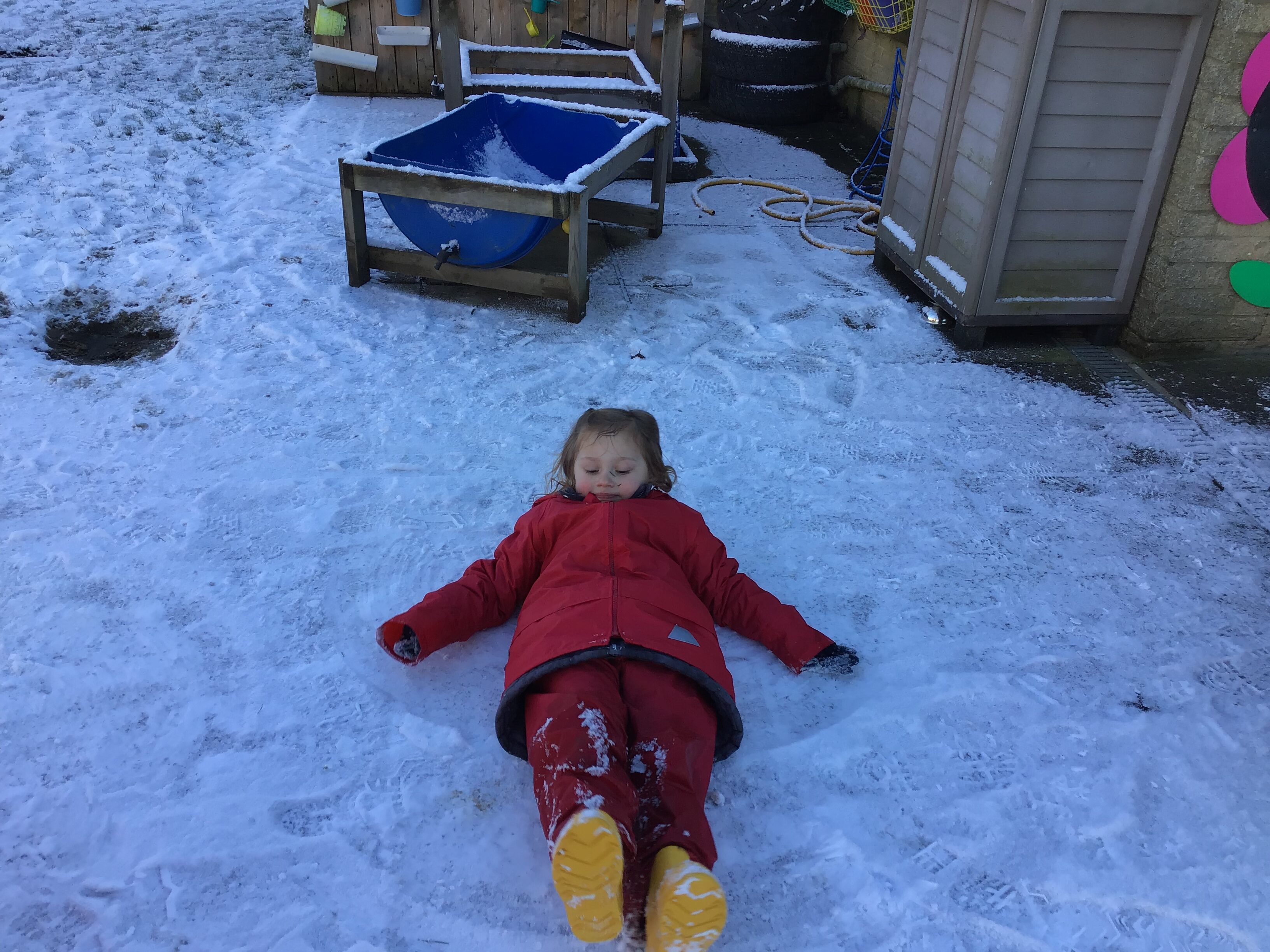 Reception Class have lots of fun outdoors whatever the weather but this week they were super excited to go out and play in the snow. They wrapped up warm and put on their wellies and waterproofs so they could make the most of the snowy weather. There wasn’t quite enough snow to make a snowman but they did make a little snow dinosaur! They also enjoyed making snow angels on the ground.