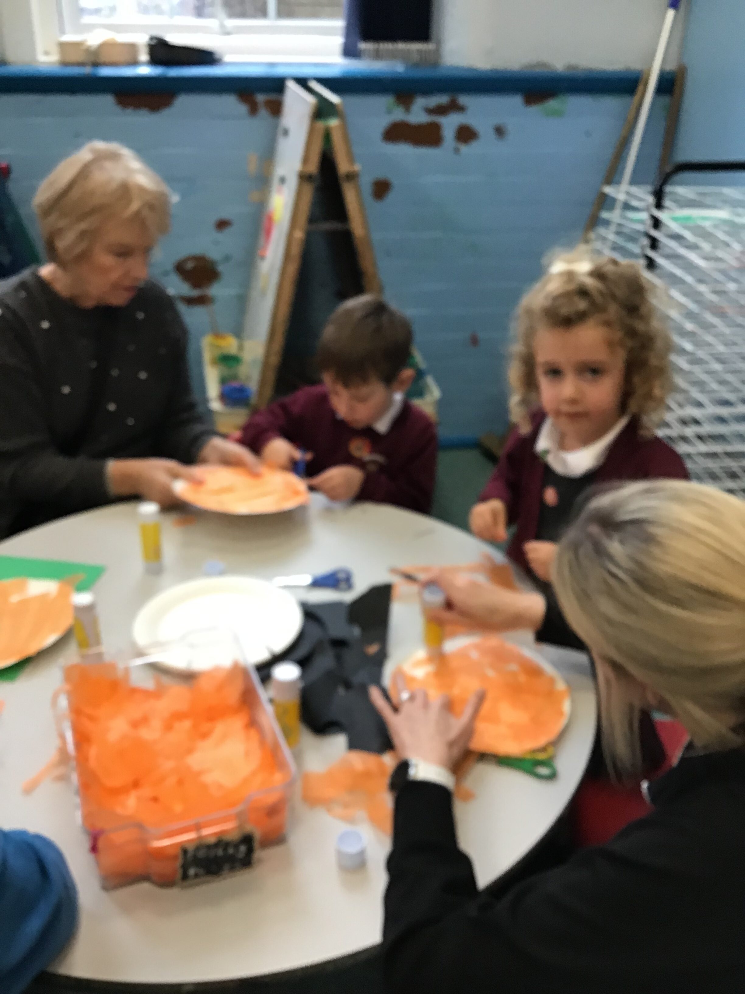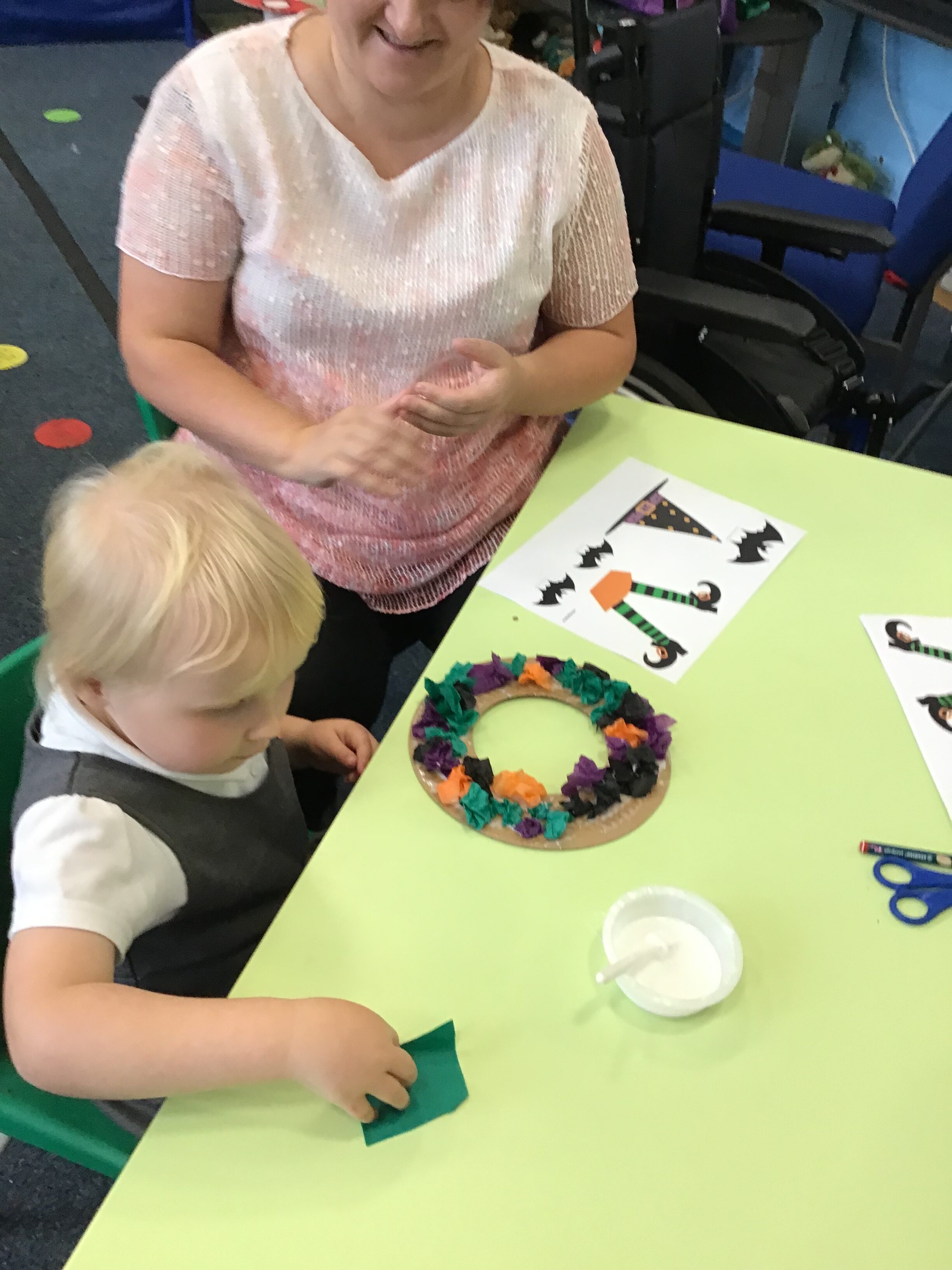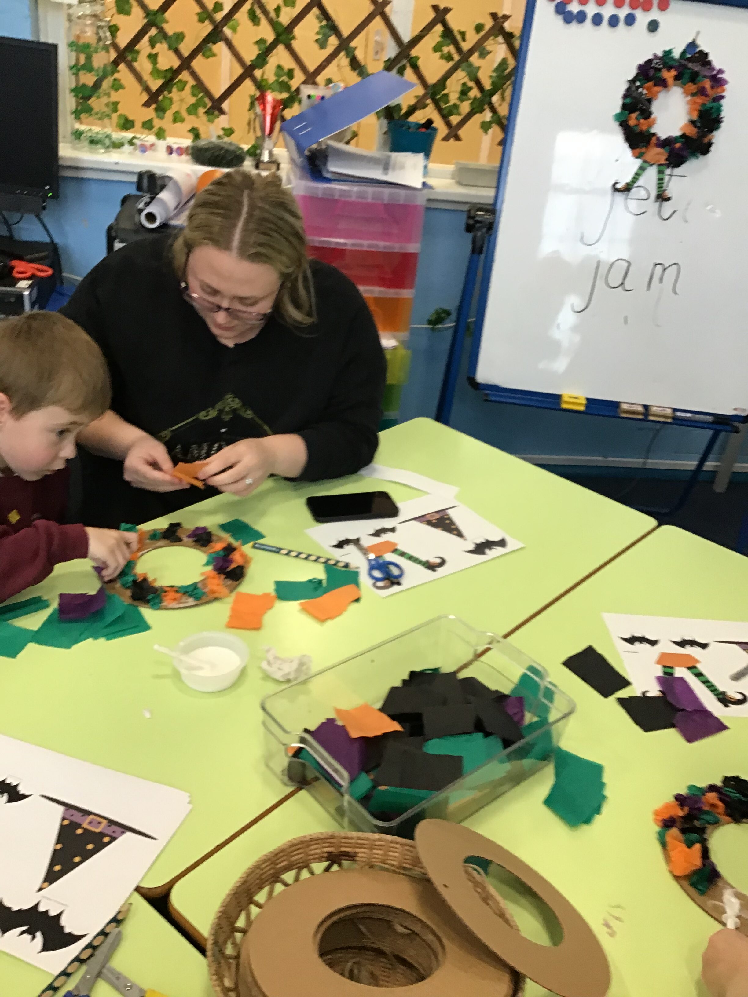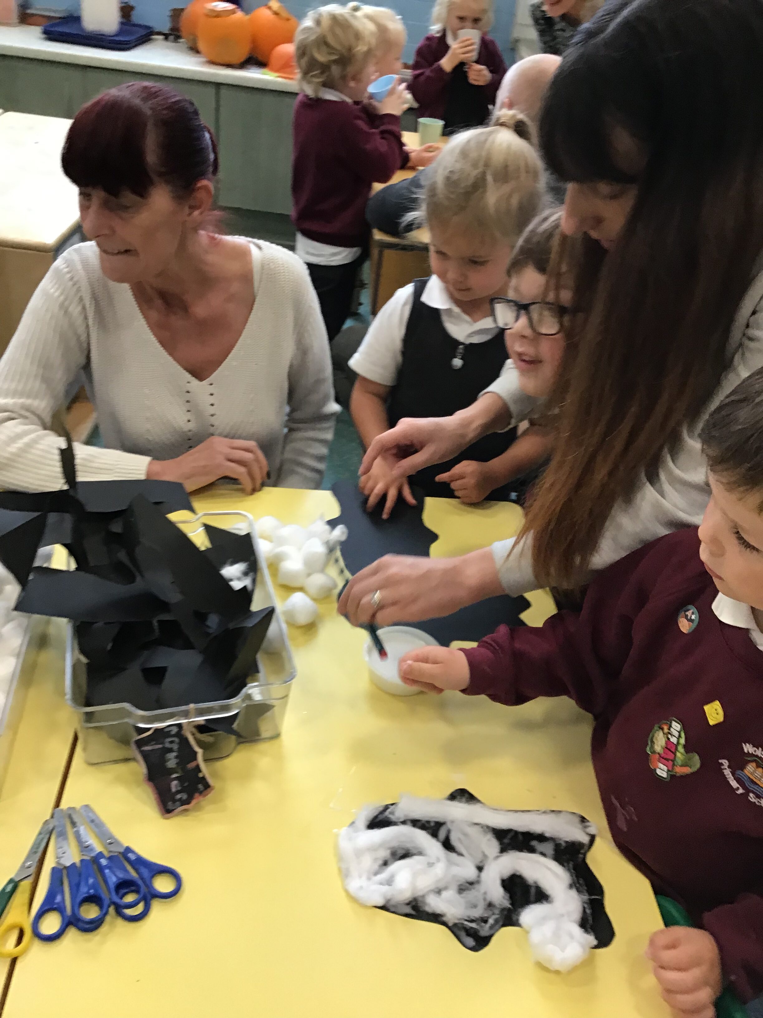 Thank you to all the parents and grandparents who came in to join us for our Halloween crafts session. The children had a fantastic time decorating cakes, making pumpkins from paper plates, cotton wool ghosts and Halloween wreaths to hang on the door.
