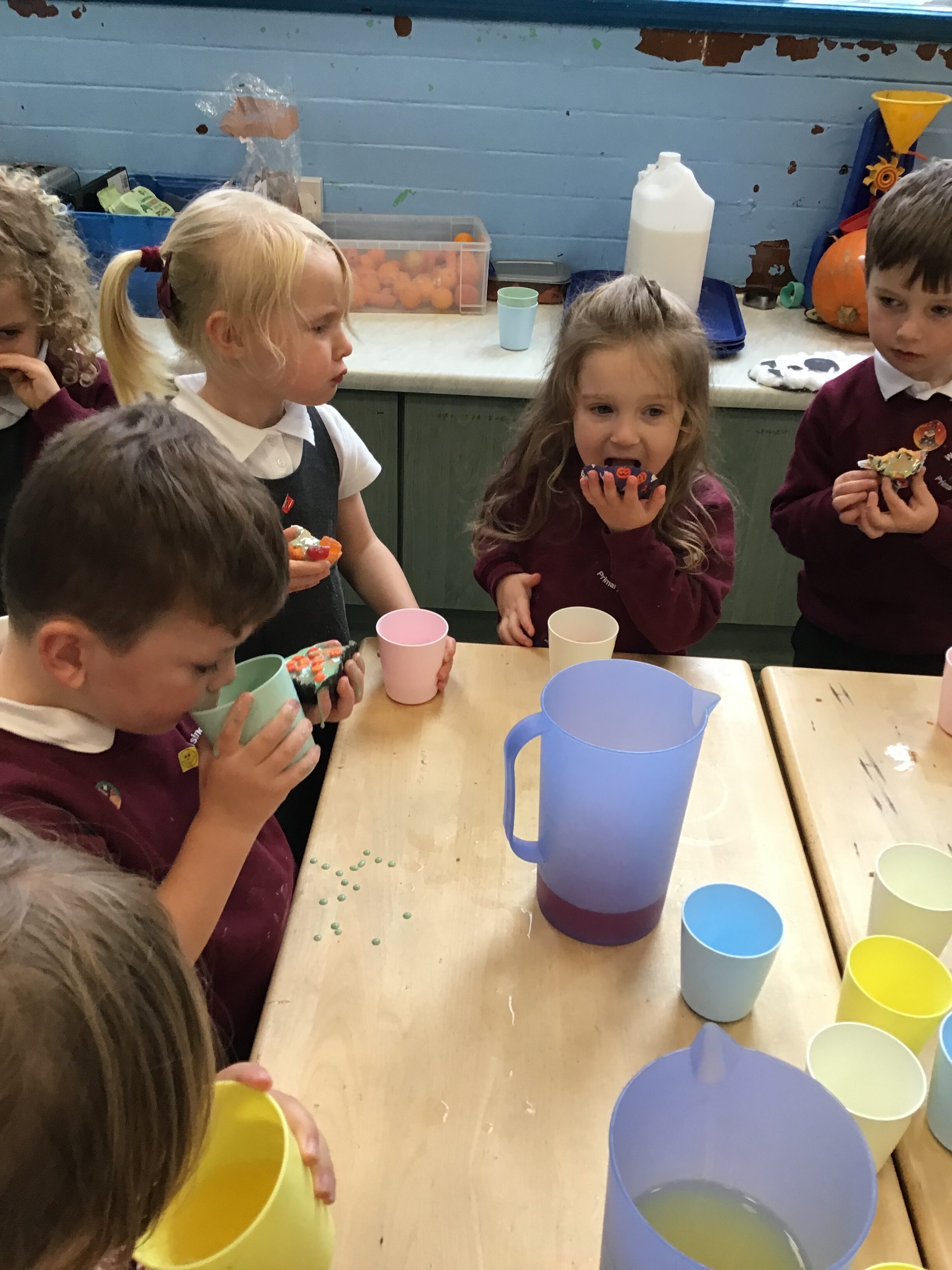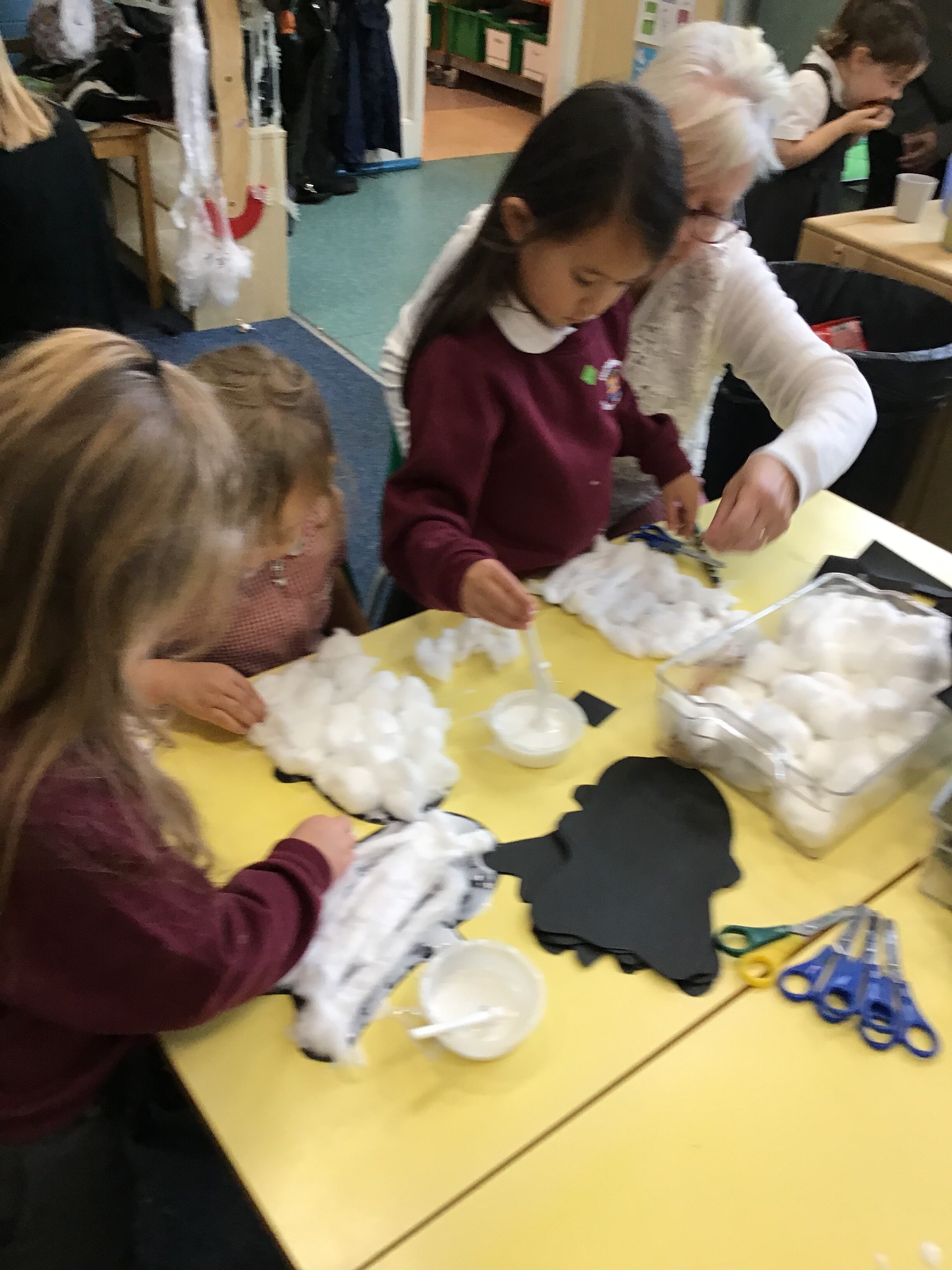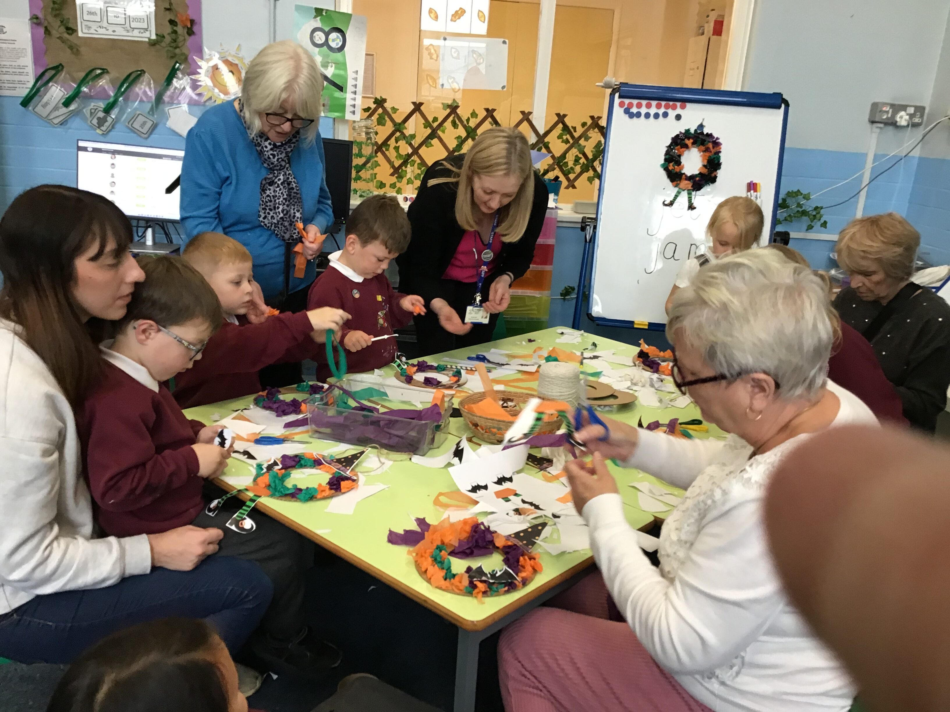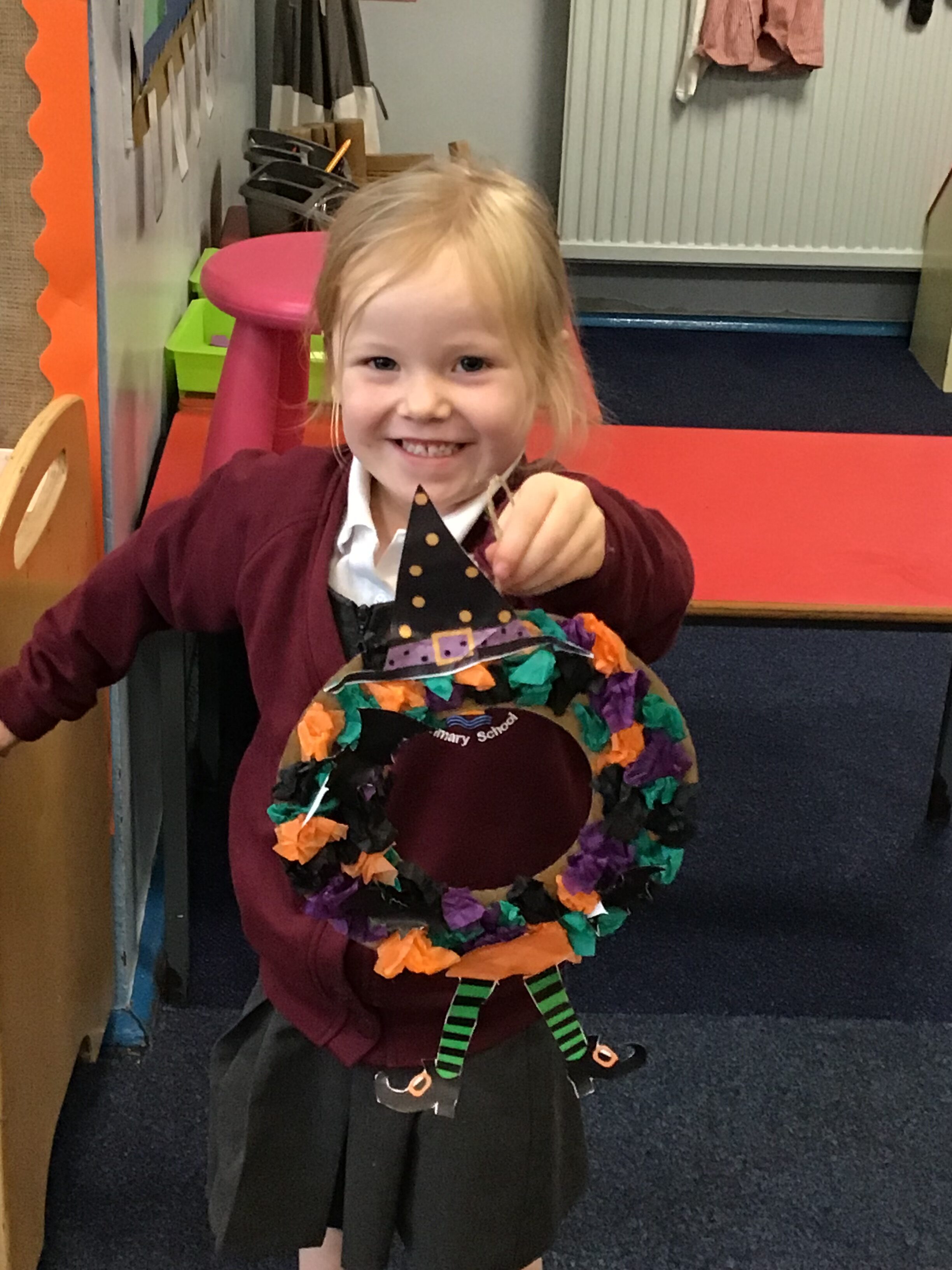 Thank you to all the parents and grandparents who came in to join us for our Halloween crafts session. The children had a fantastic time decorating cakes, making pumpkins from paper plates, cotton wool ghosts and Halloween wreaths to hang on the door.