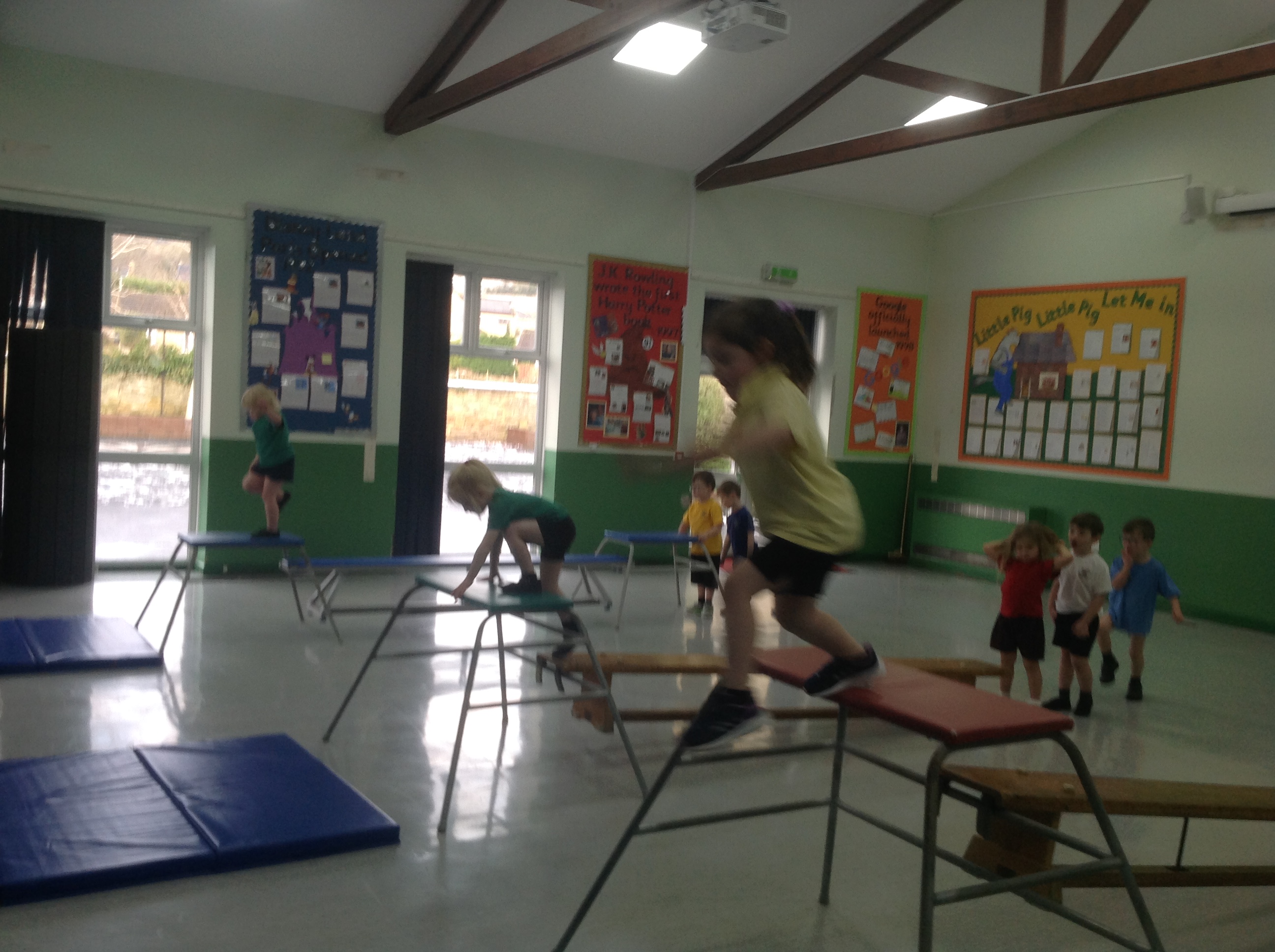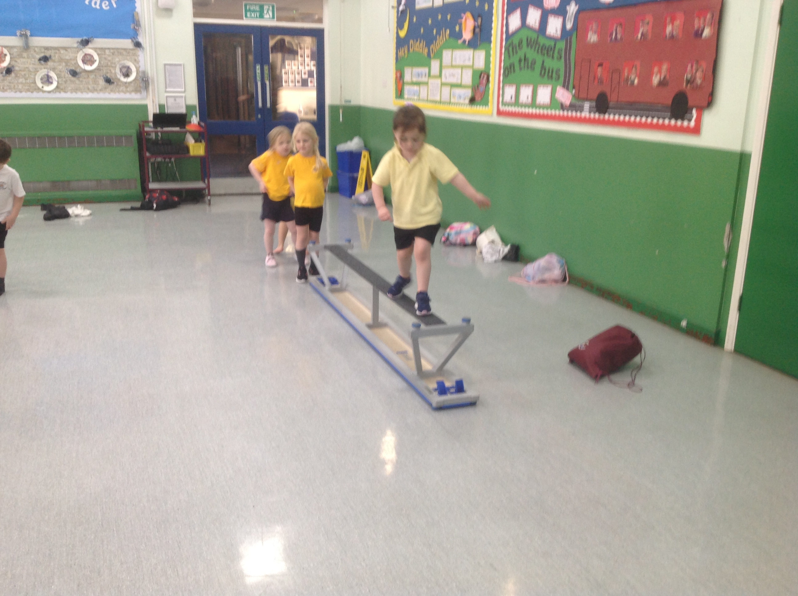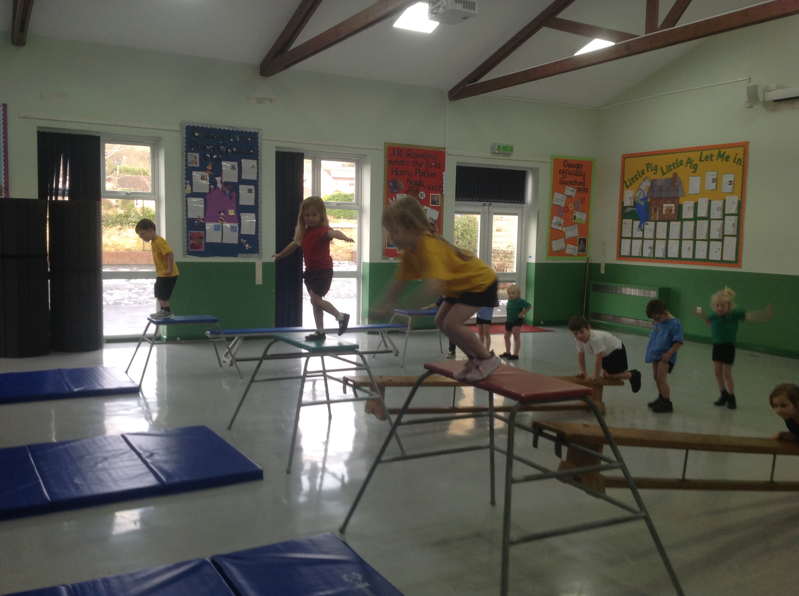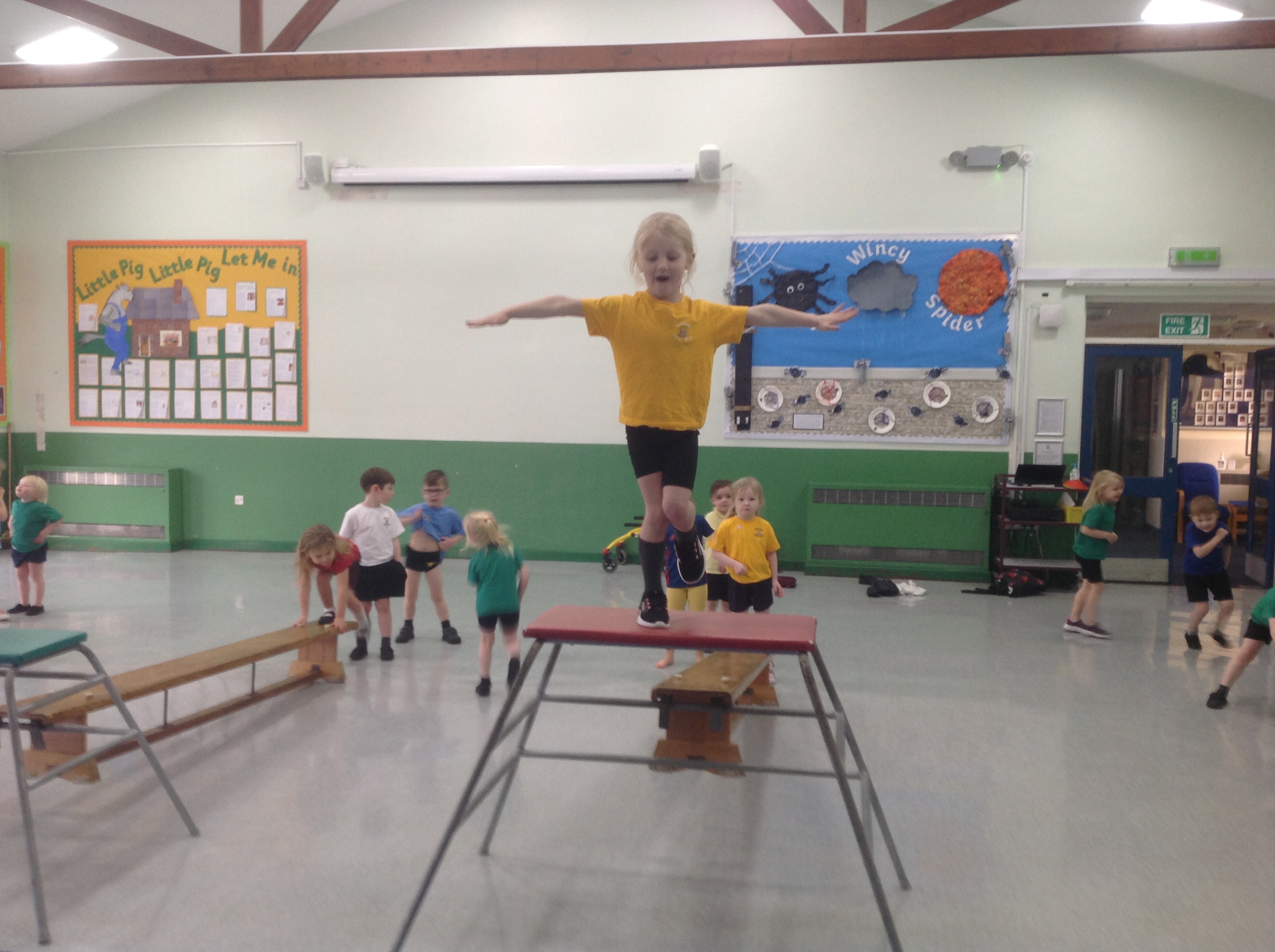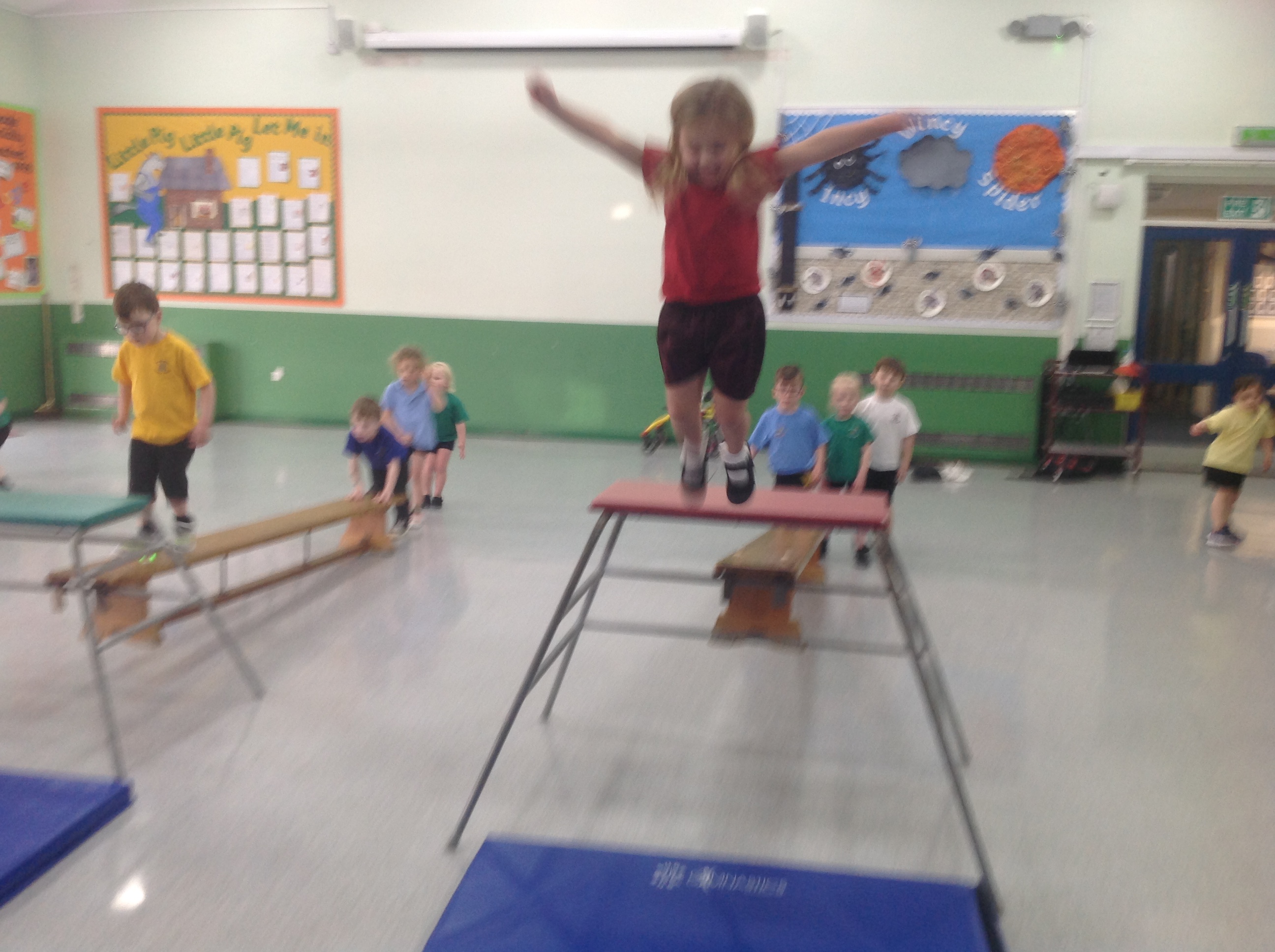 Reception Class are enjoying using the apparatus in PE. They are exploring ways of travelling along the benches and different ways to balance. They are learning to jump and land safely. The children were confident and they all managed to jump off the high red table.