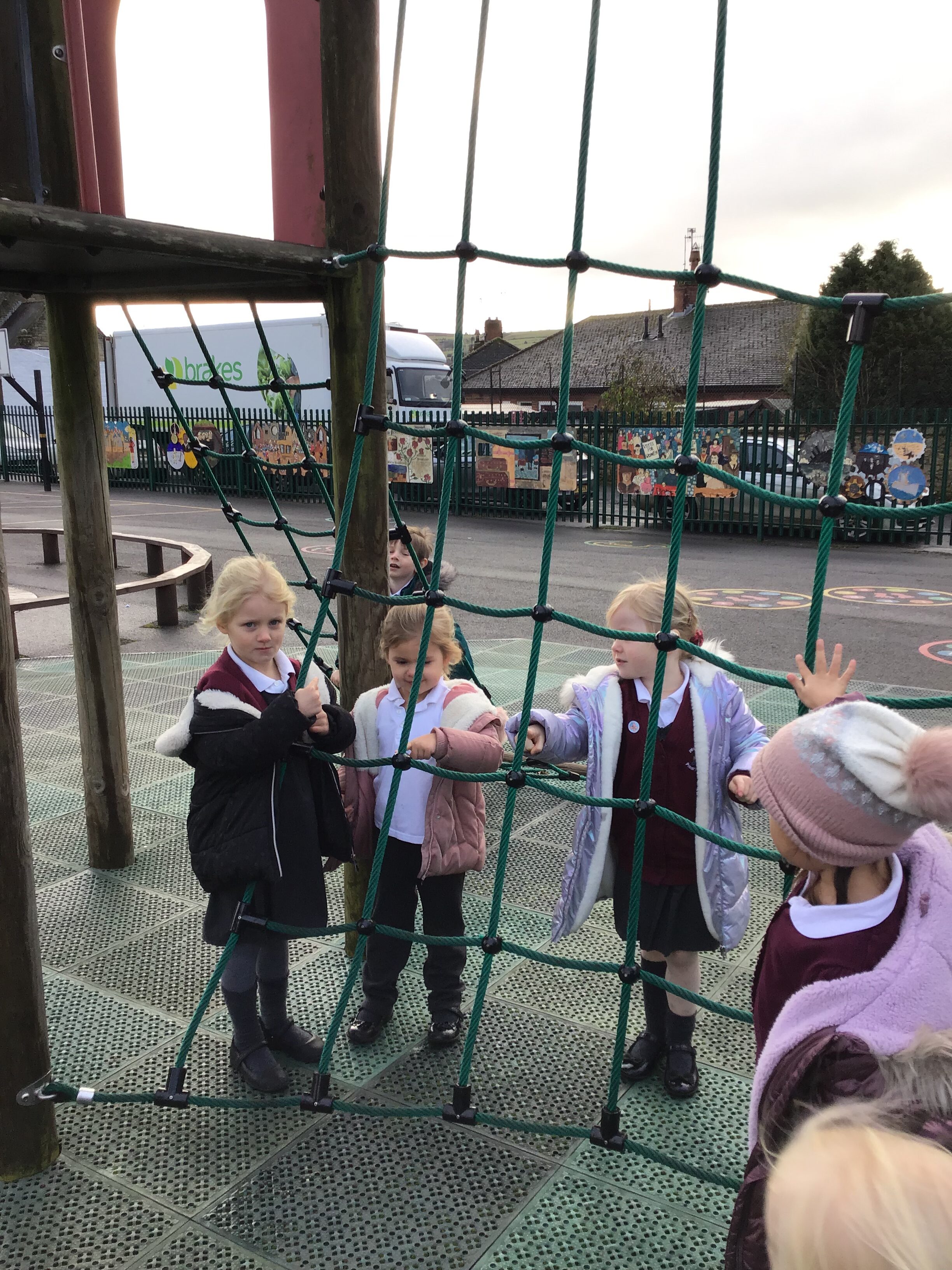 Reception Class had a lot of fun playing on the big climbing frame. They showed confidence and perseverance when climbing, sliding and swinging on the play equipment. It was lovely to see the children encourage and support each other during their play.