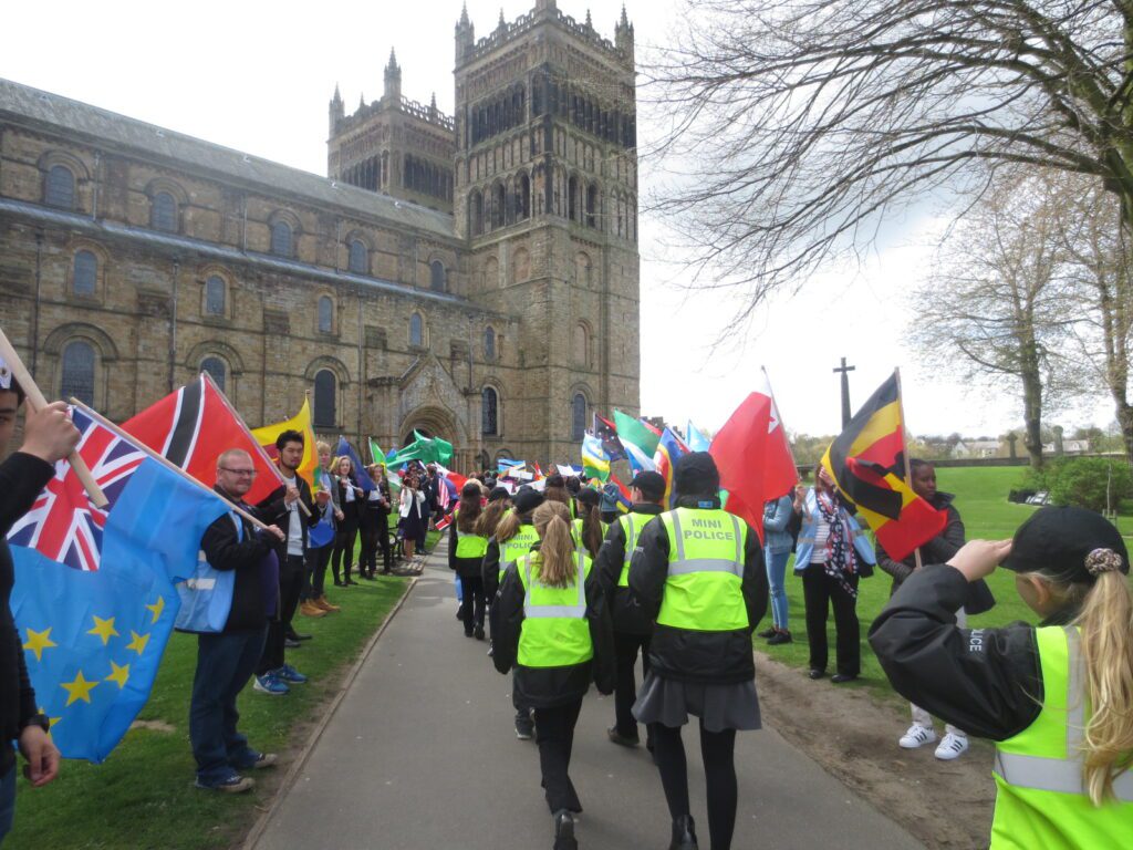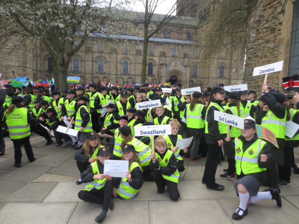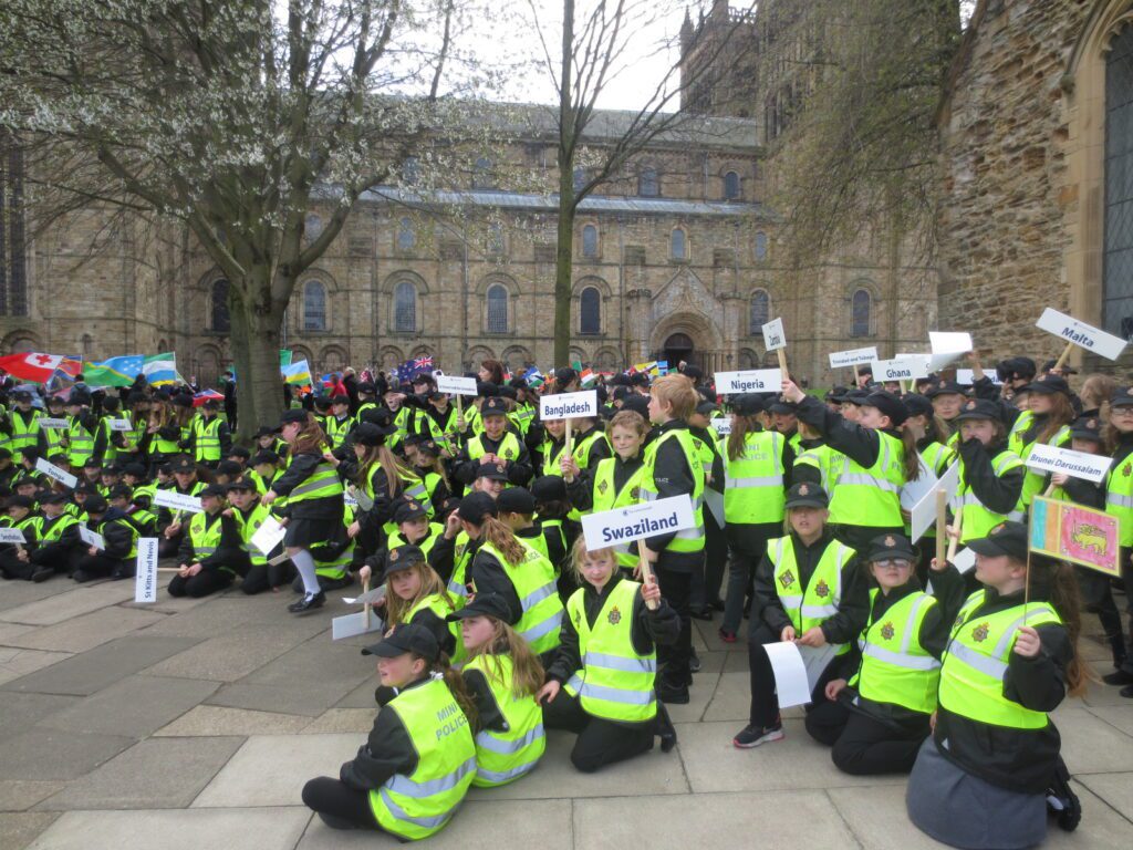 Some of our mini police attended the Commonwealth event in Durham on Wednesday 25th April. Their job was to escort three other primary schools through the city centre and up to Durham Cathedral. There were 1500 children in the cathedral and all they welcomed The Dean and Mrs Sue Snowdon (HM Lord-Lieutenant of County Durham) to the event. The 53 commonwealth flags were paraded and they listened to readings from post and undergraduate students from Durham University as well as joined in on the singing of songs such as ‘One Voice’ by Barry Manilow and ‘The World in Union’.