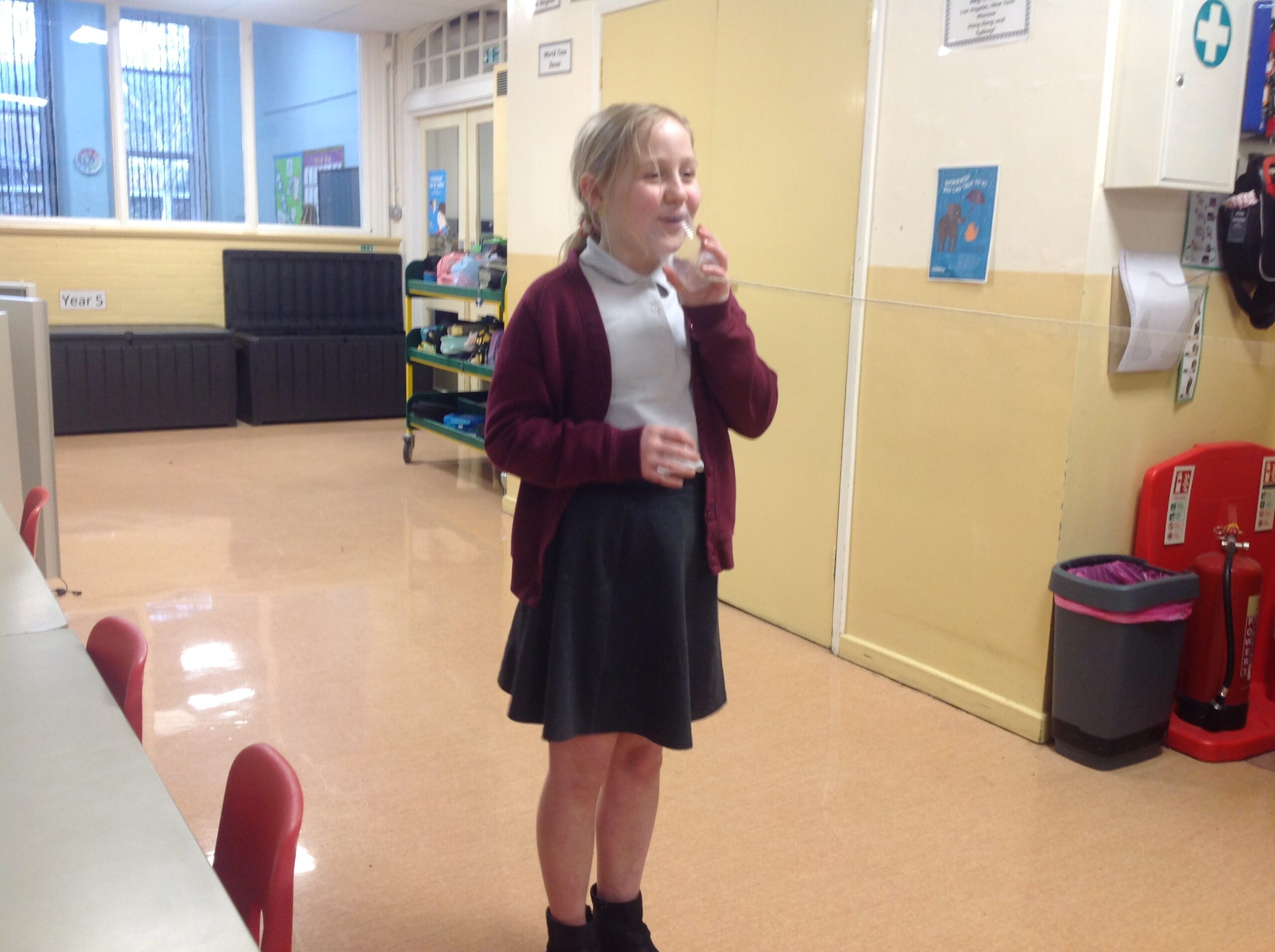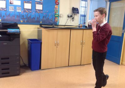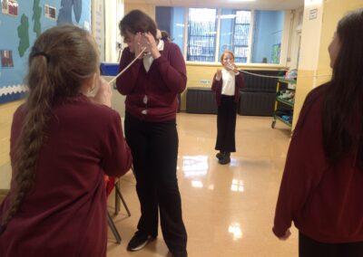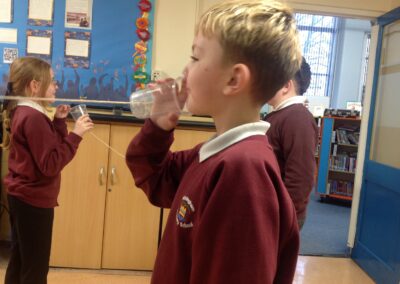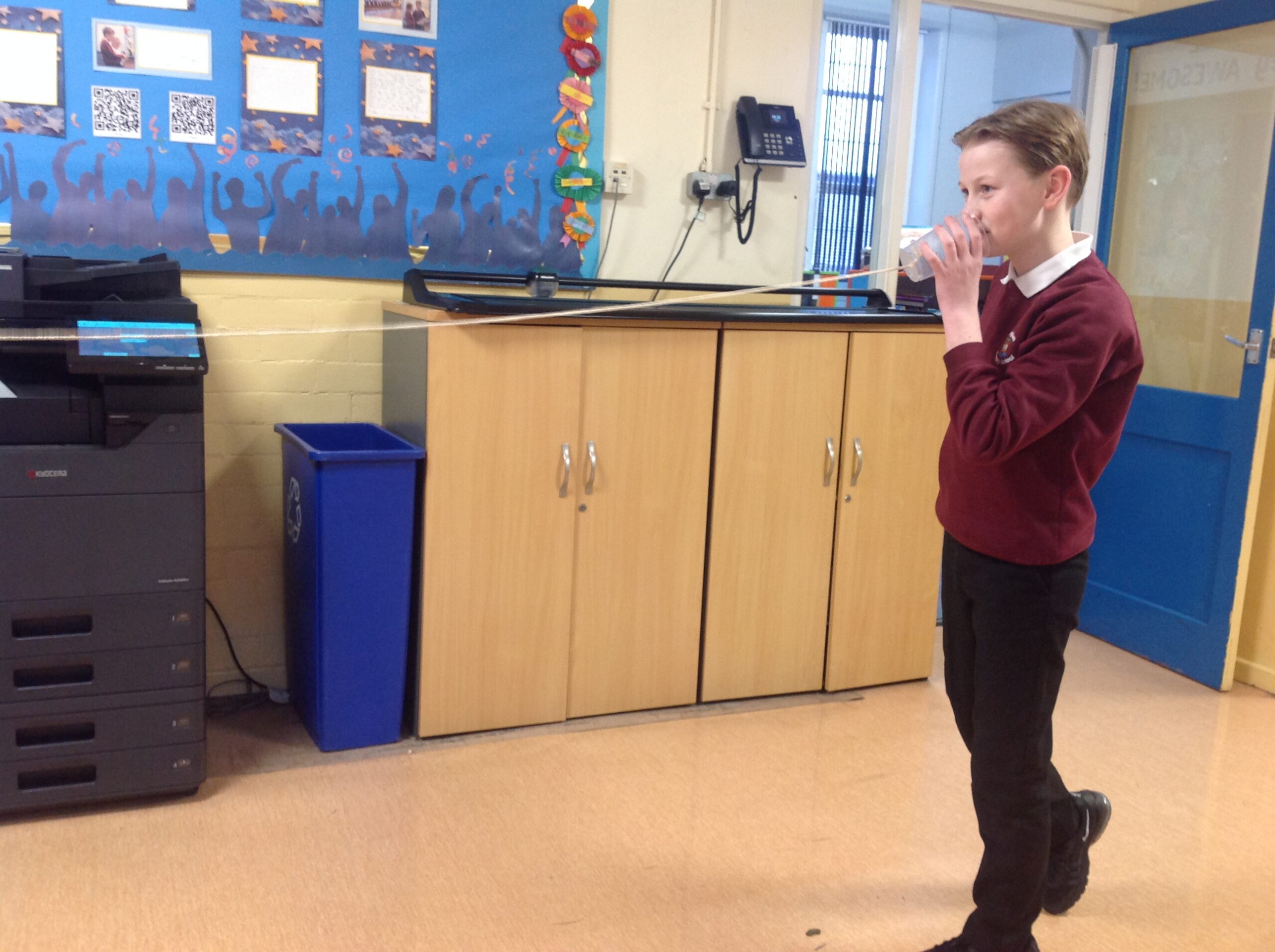 This term, Class 5 are studying ‘Sound’. This week we led an investigation into how the length of string affects how far sound can travel. We found it remarkable that we could hear each other so clearly through the string because the sound waves are travelling alone a solid. We also found that it was much clearer when the string was shorter because it has a shorter distance to travel! Thank you, Willow for taking some photos of us experimenting with them!