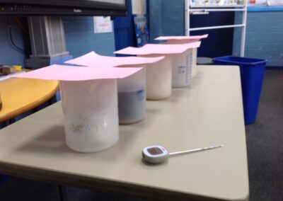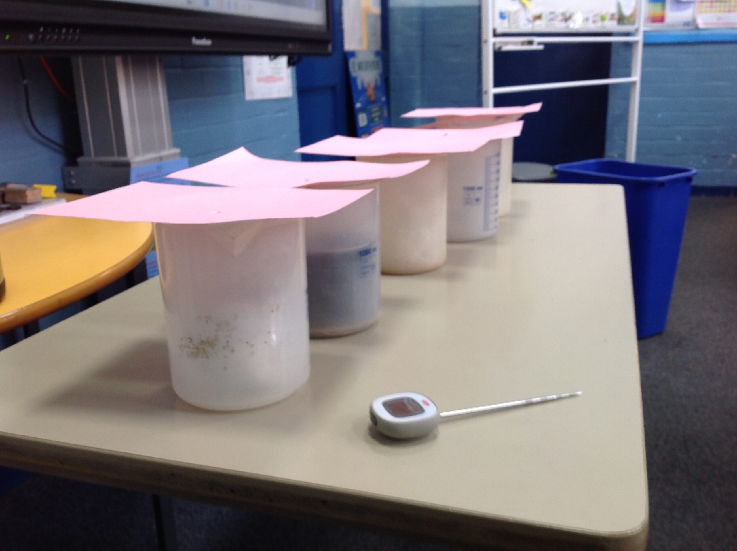 This week, we did another experiment to understand what thermal insulators are. We used hot water in a beaker and surrounded it with different materials such as bubble wrap, foil and a scarf. We discussed why each one would make a good insulator. We measured them throughout the lesson as we wrote up our investigation and found that the scarf was the best insulator. The class concluded that this may be because it was thicker than the other materials and is designed to trap heat to keep us warm and it did the same to the water.