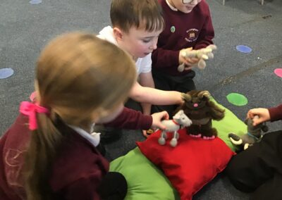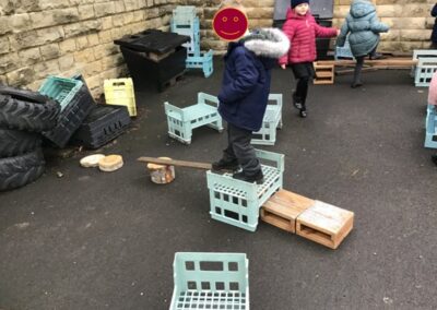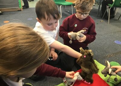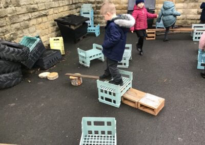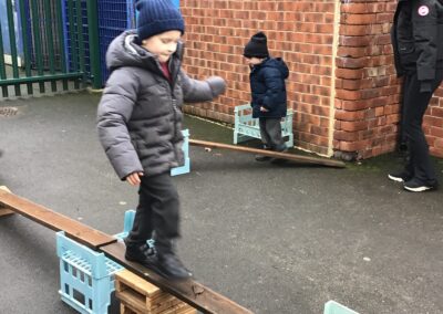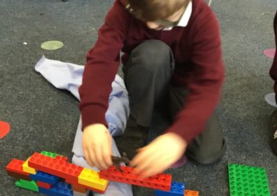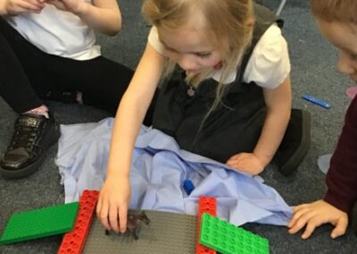 The children had lots of fun reading the story of The Three Billy Goats Gruff and then used the story in their play. The acted out the story with puppets, using key phrases such as, “Who’s that trip trapping over my bridge?” as they retold the story with their friends. They were set the challenge of building a bridge from Lego that would be strong enough for the goats to cross. Then when they went outside they used the large scale construction materials to explore making bridges.