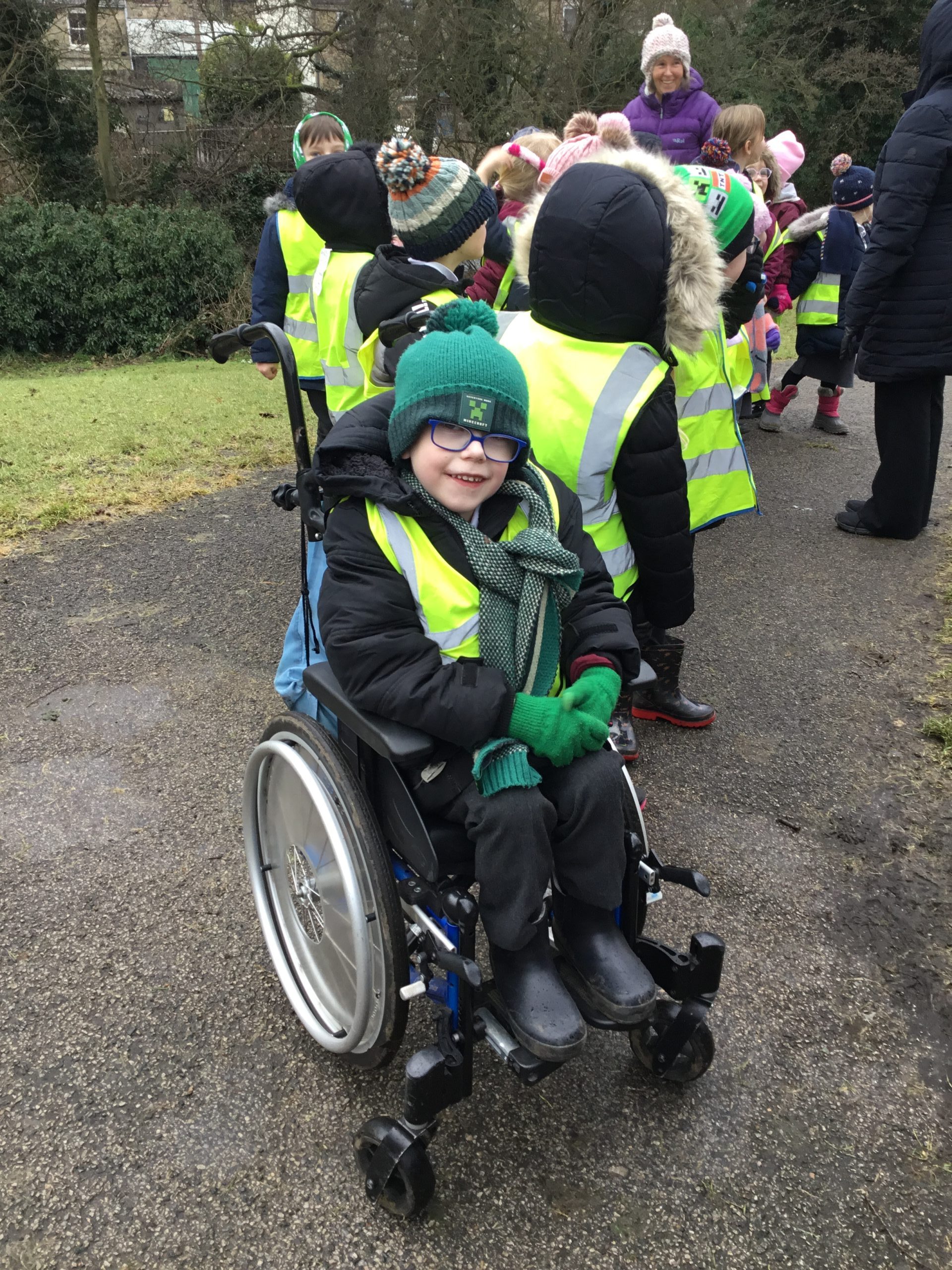 In Class 2 we have been learning all about the seasons. On Thursday we went for a walk around the village to look for the signs of winter. We noticed bare trees, brown grass and lots of mud. We even spotted some snow up on the hilltops.